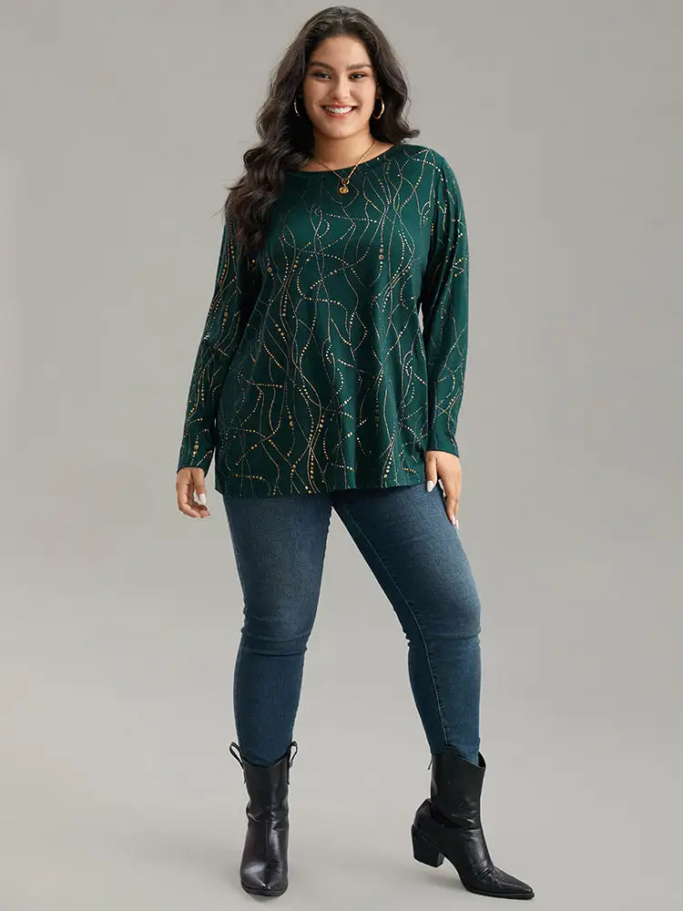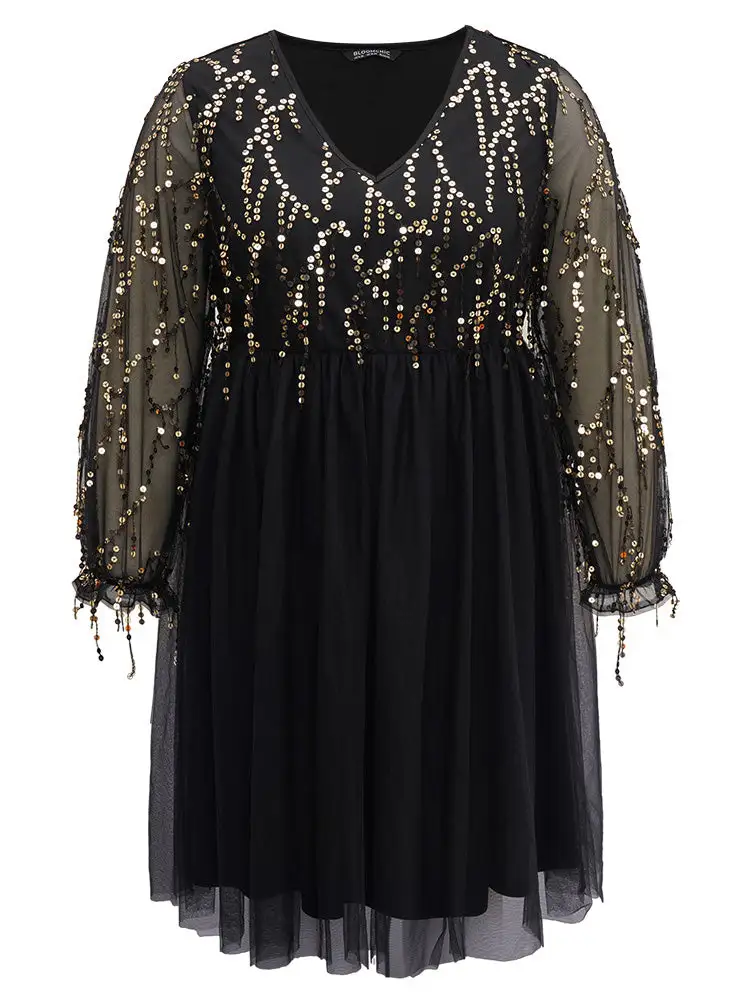 Cowl Neck 2-In-1 Sequin Patchwork Blouse