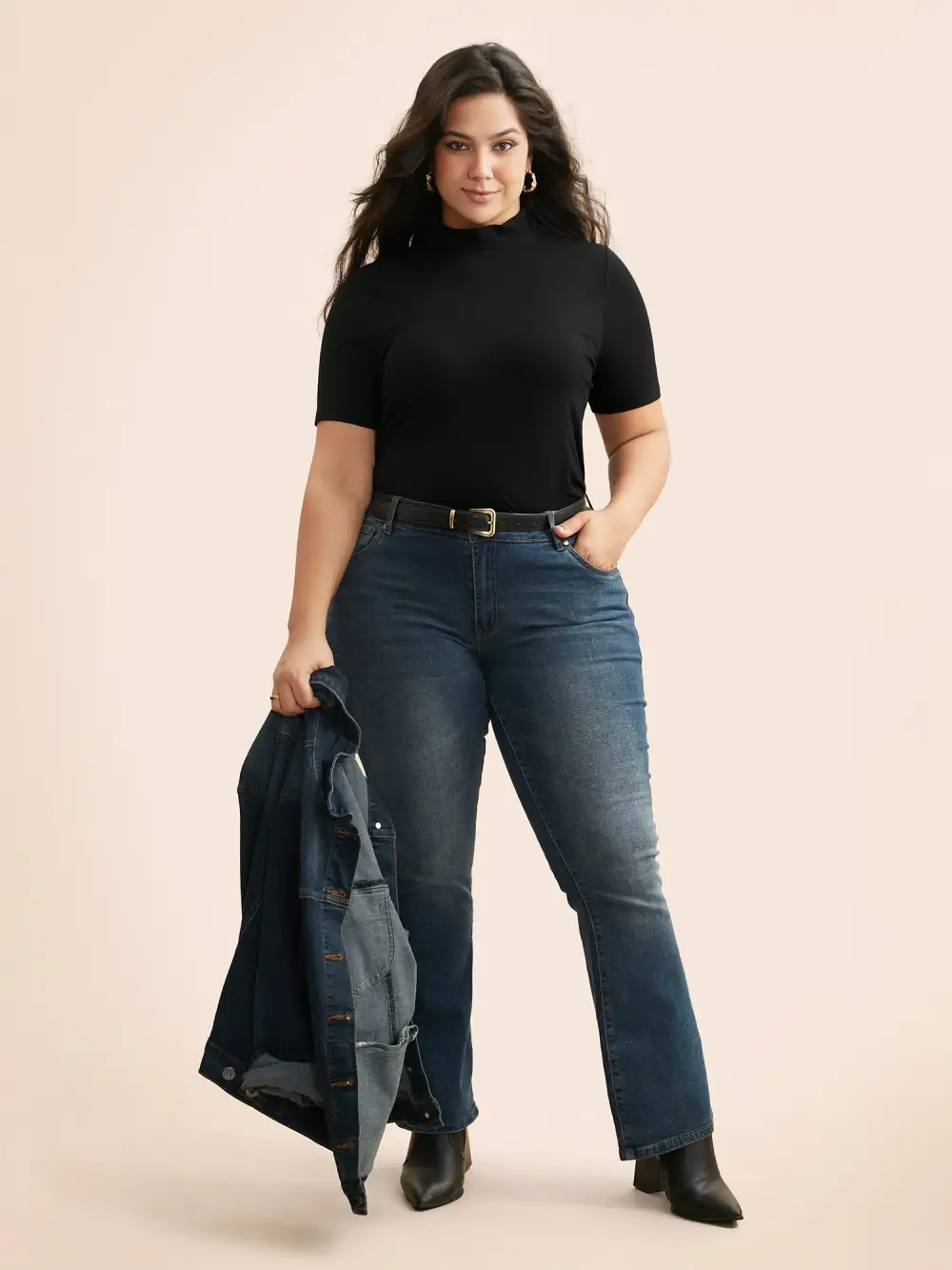 Solid Very Stretchy High Rise Bootcut Thick Pants