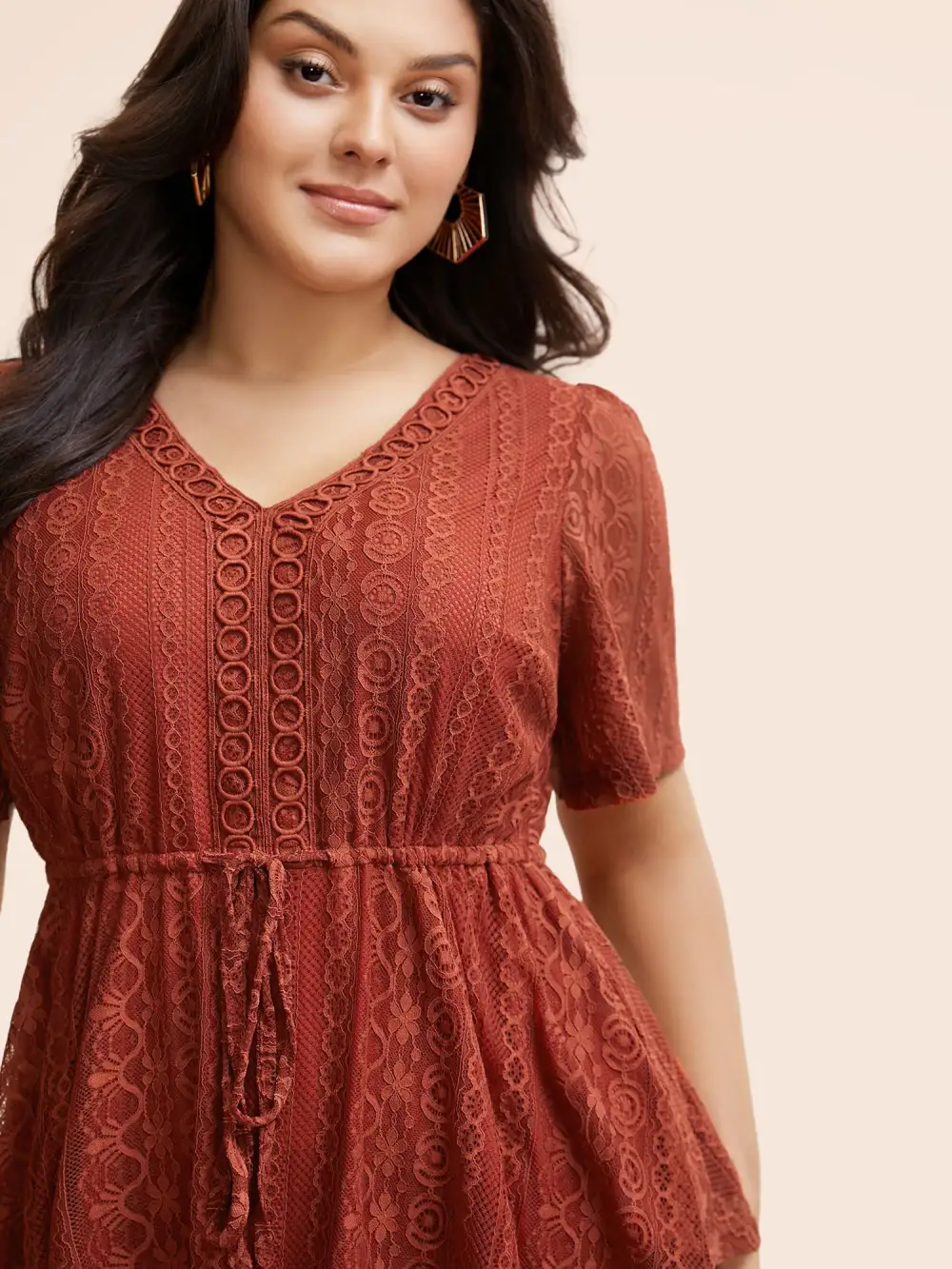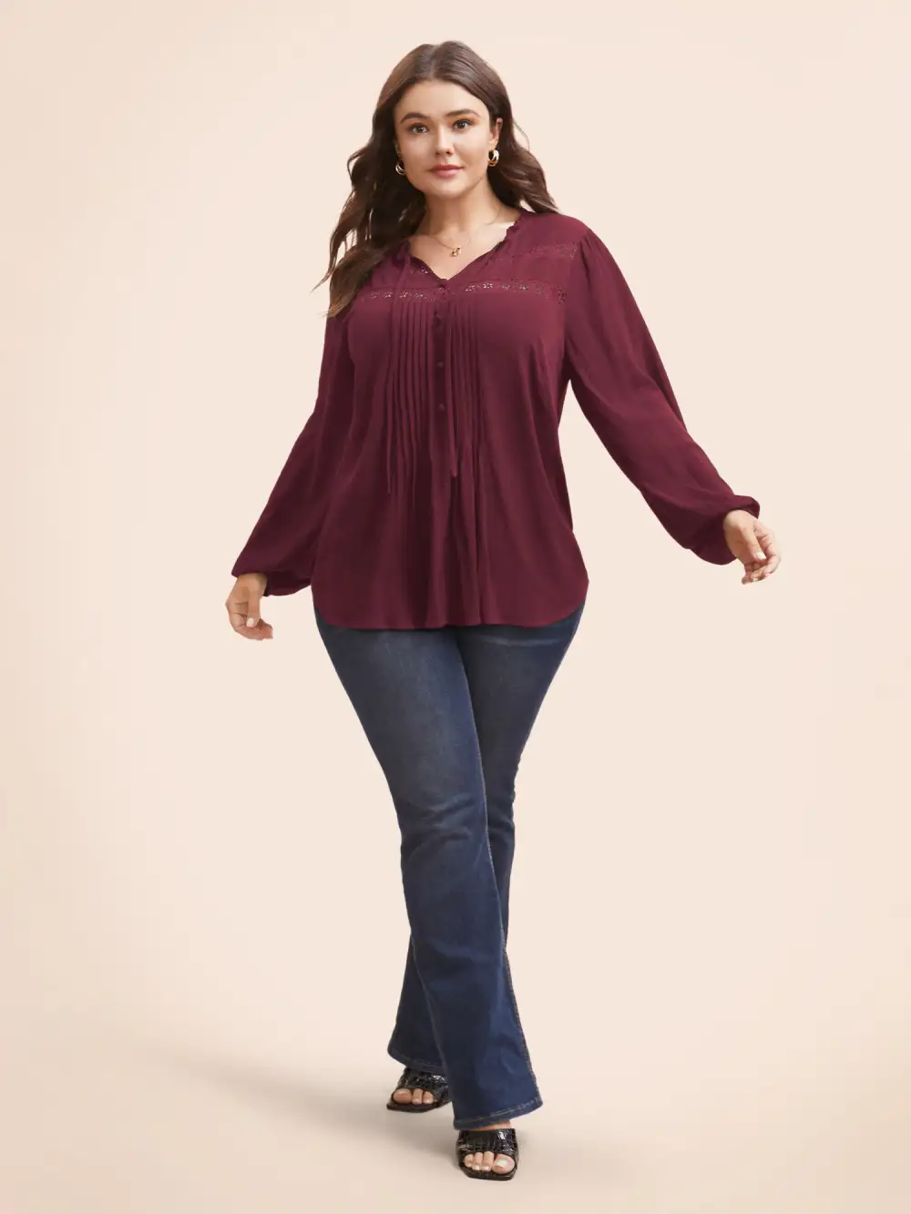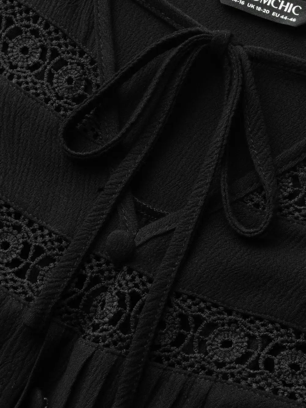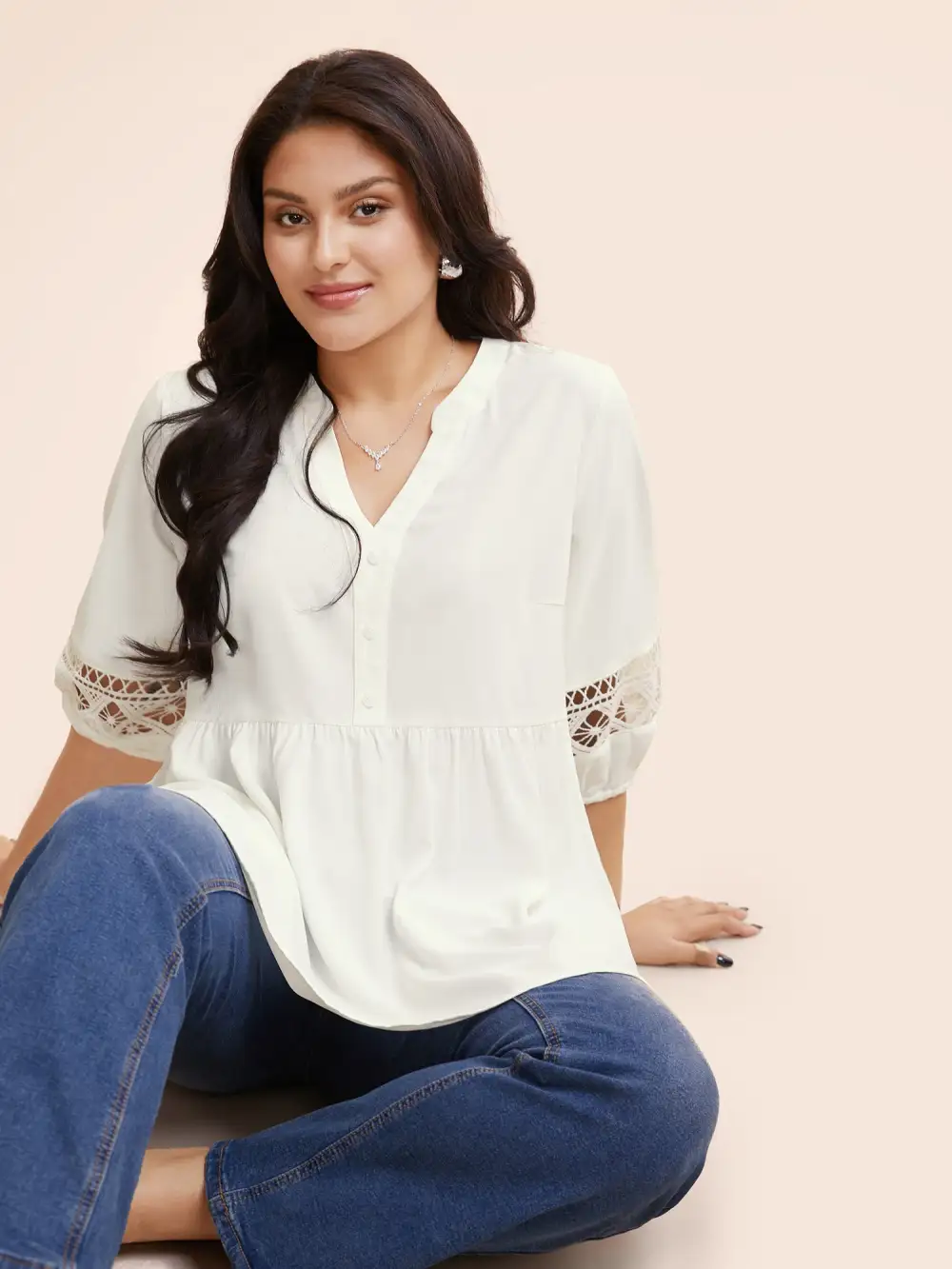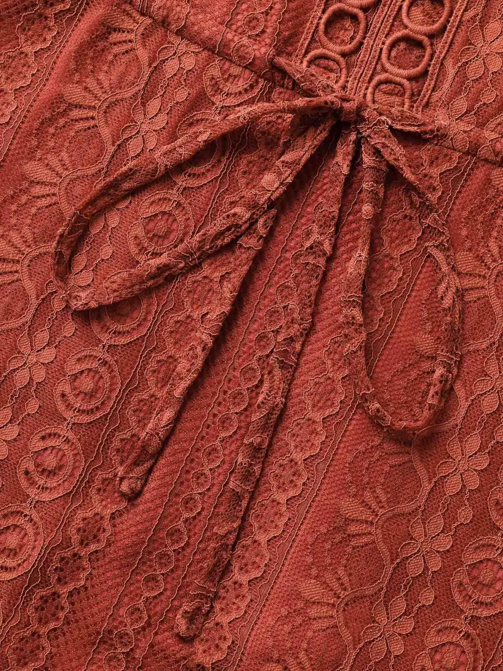 Solid Crochet Lace Mesh Crew Neck Blouse