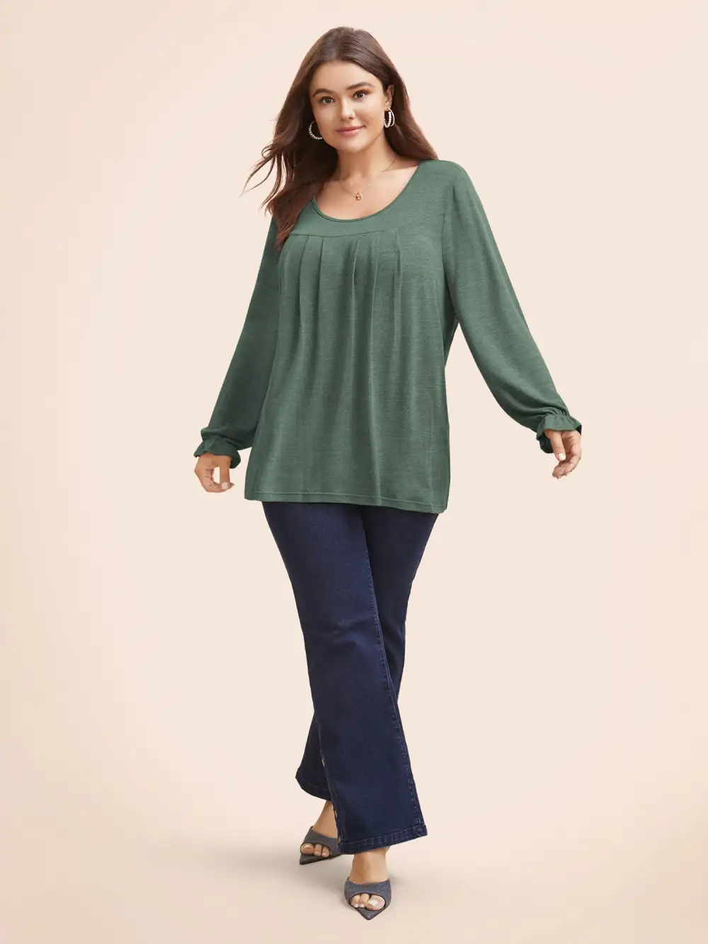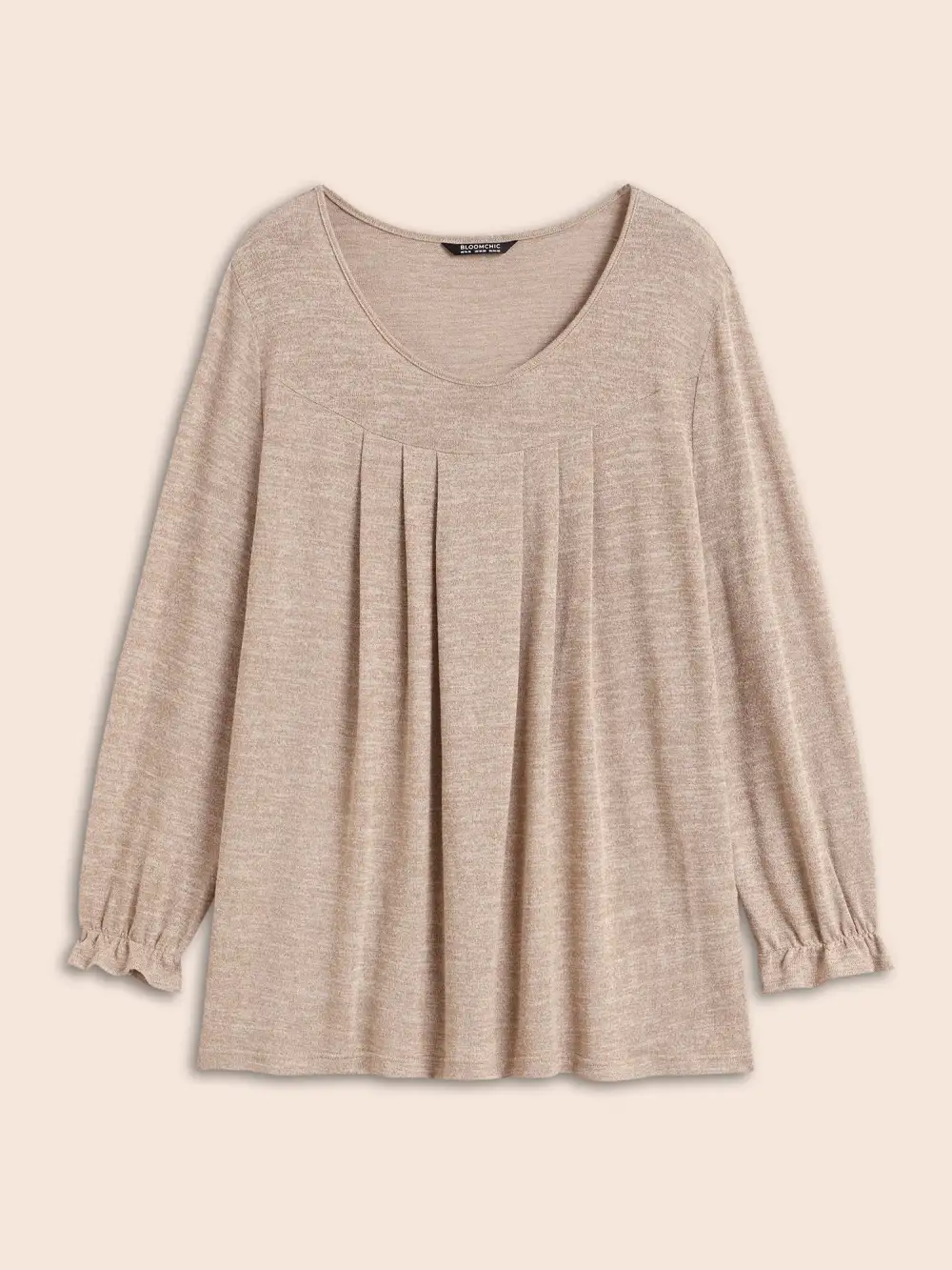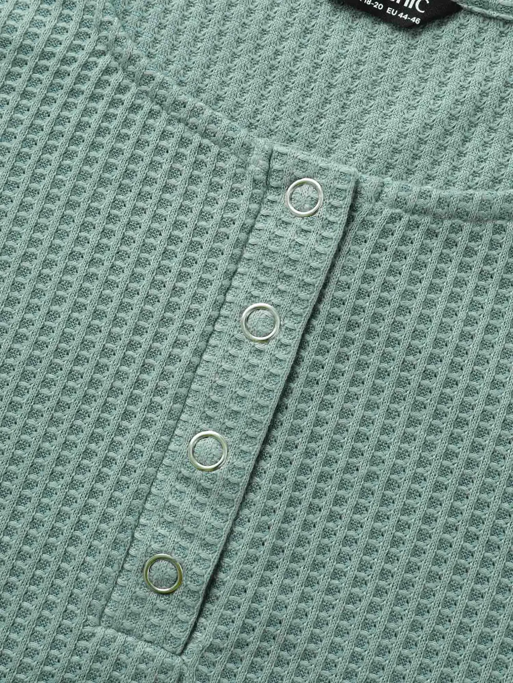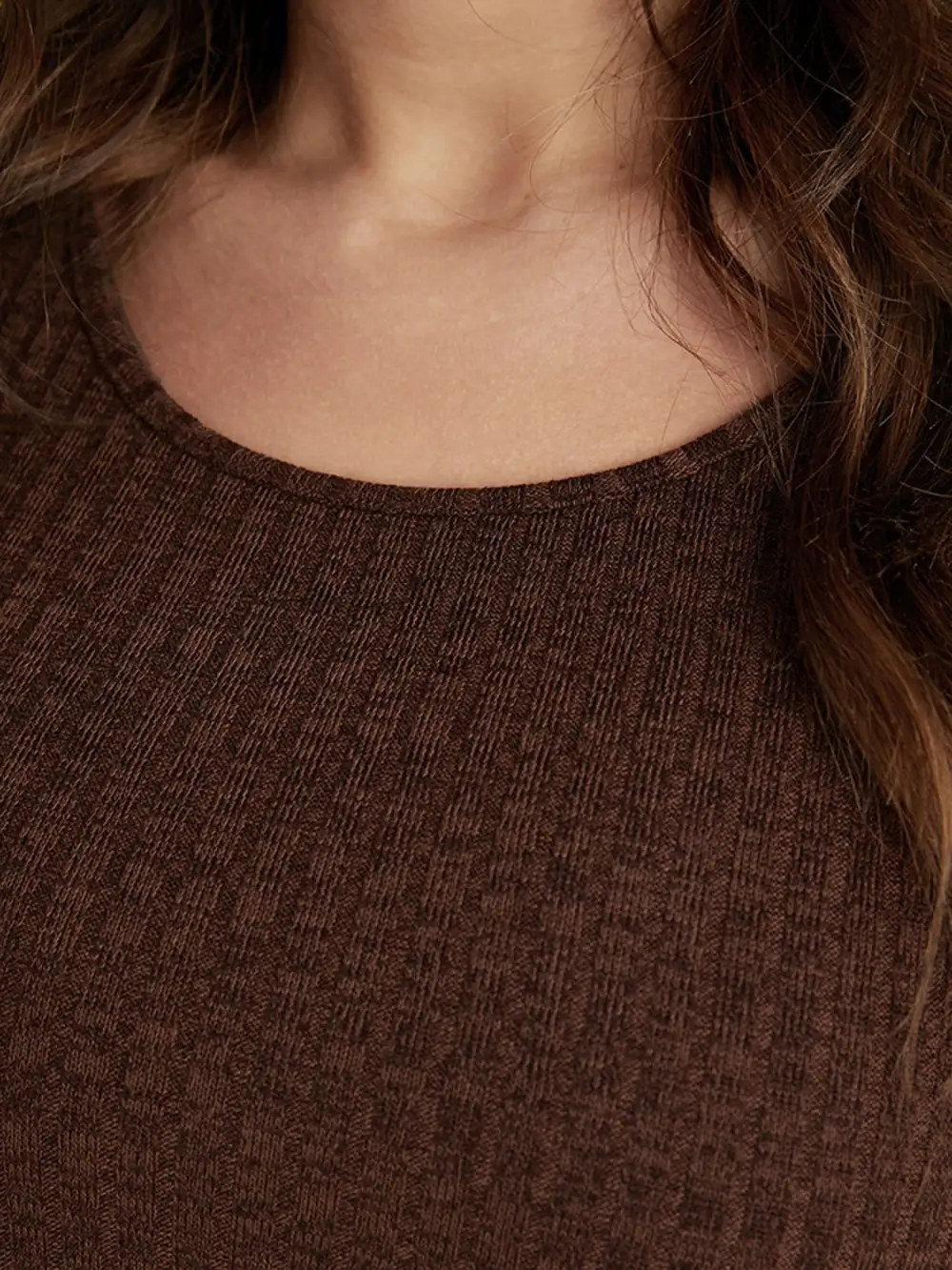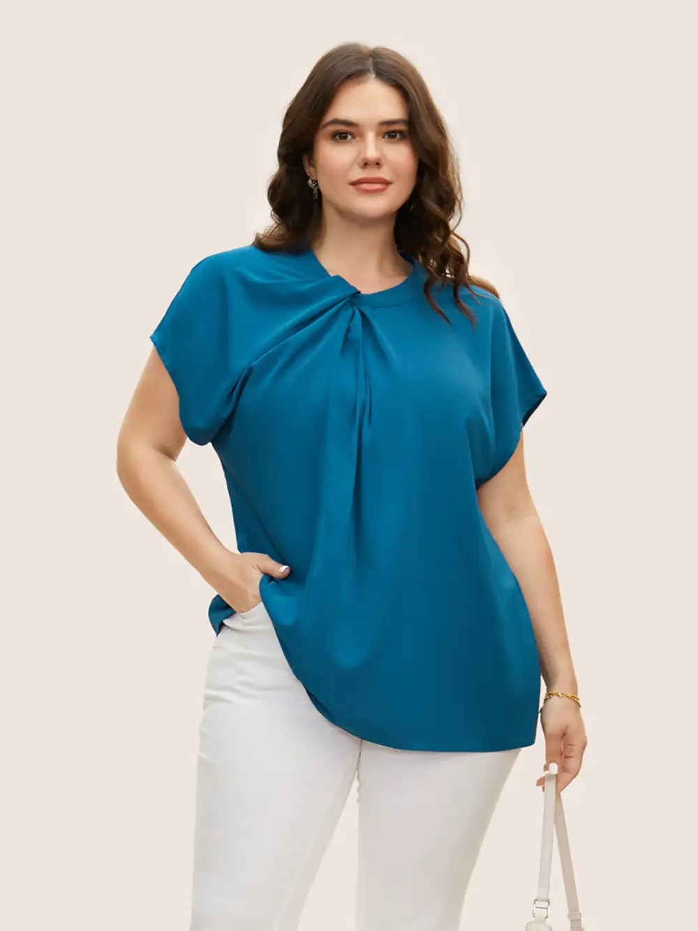 Plain Waffle Knit Scoop Neck Plicated Detail T-Shirt