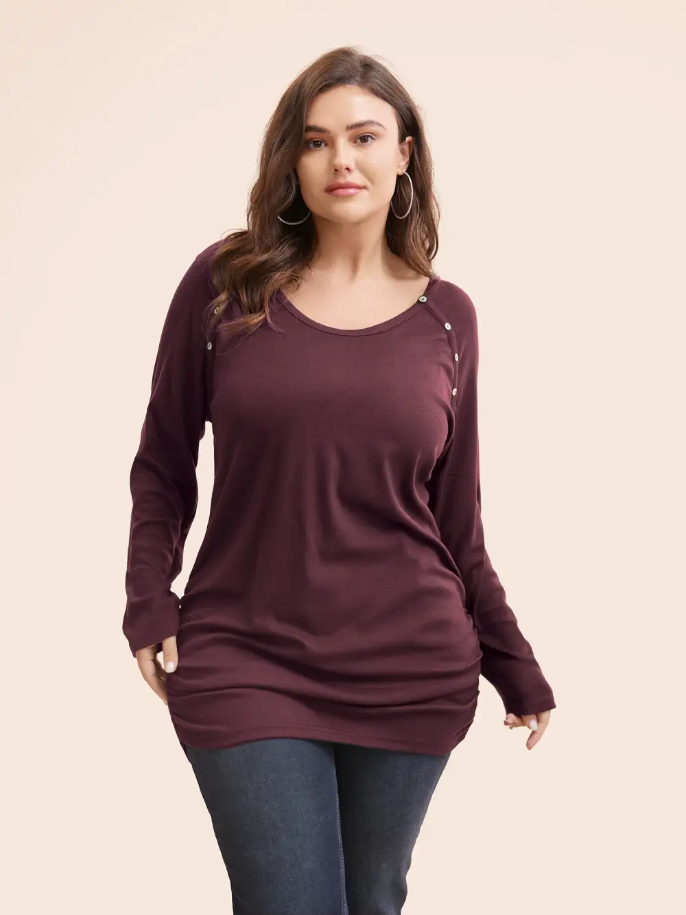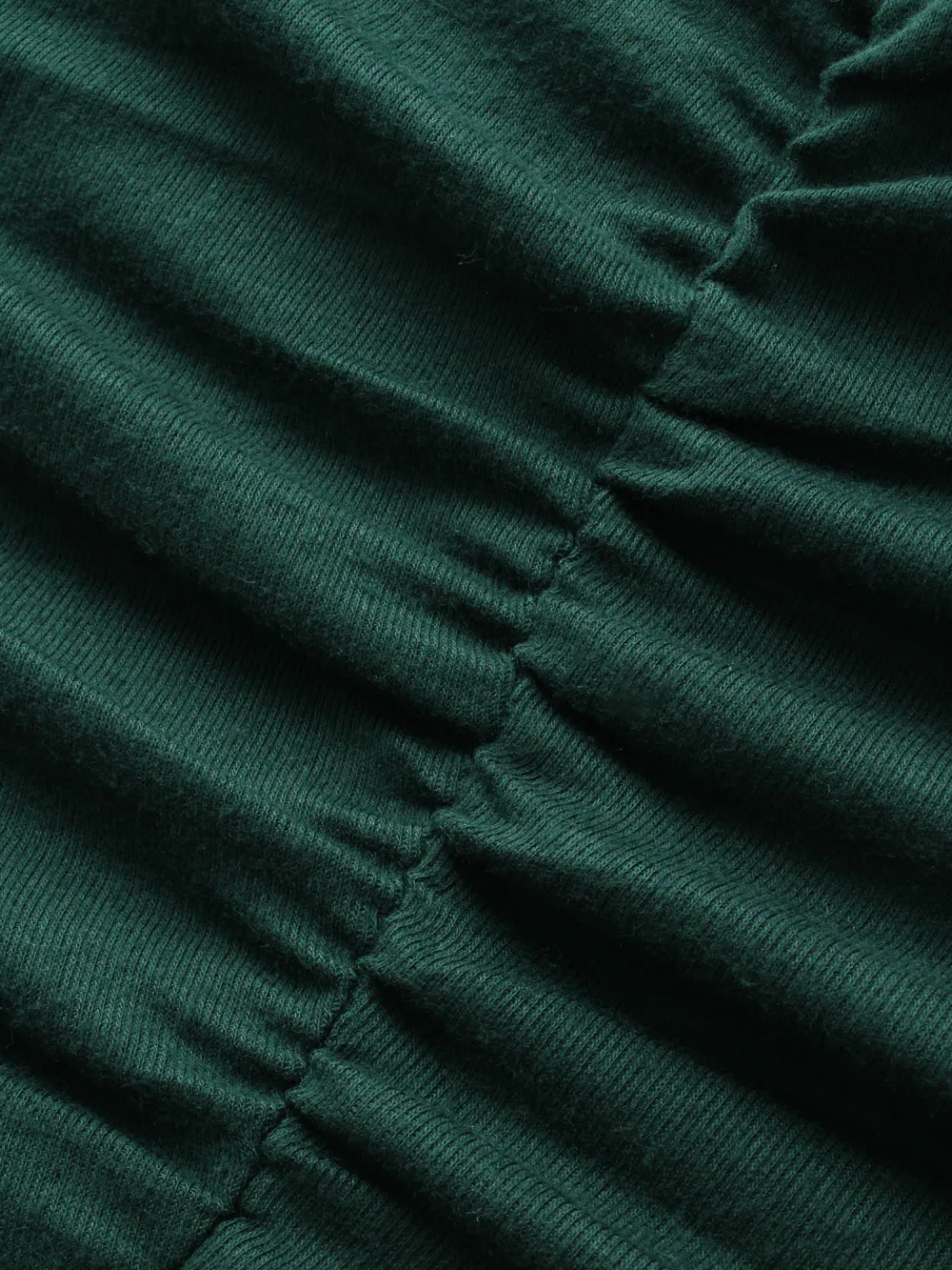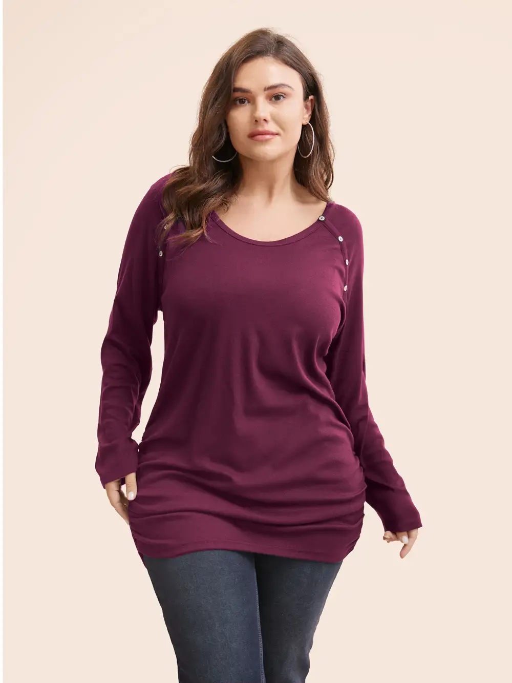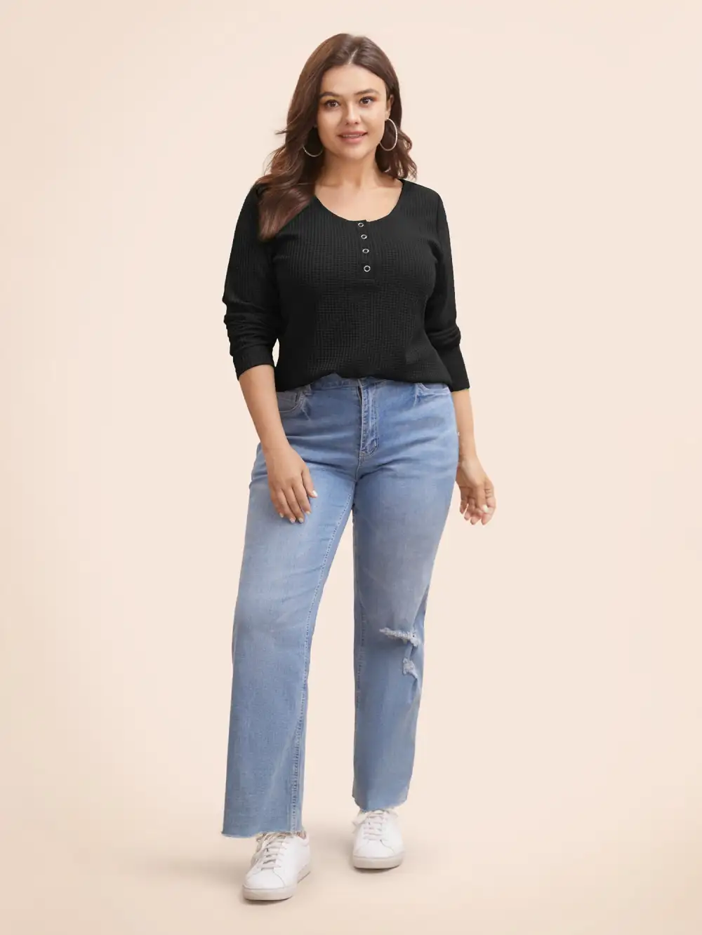 Plain Waffle Knit Scoop Neck Plicated Detail T-Shirt
