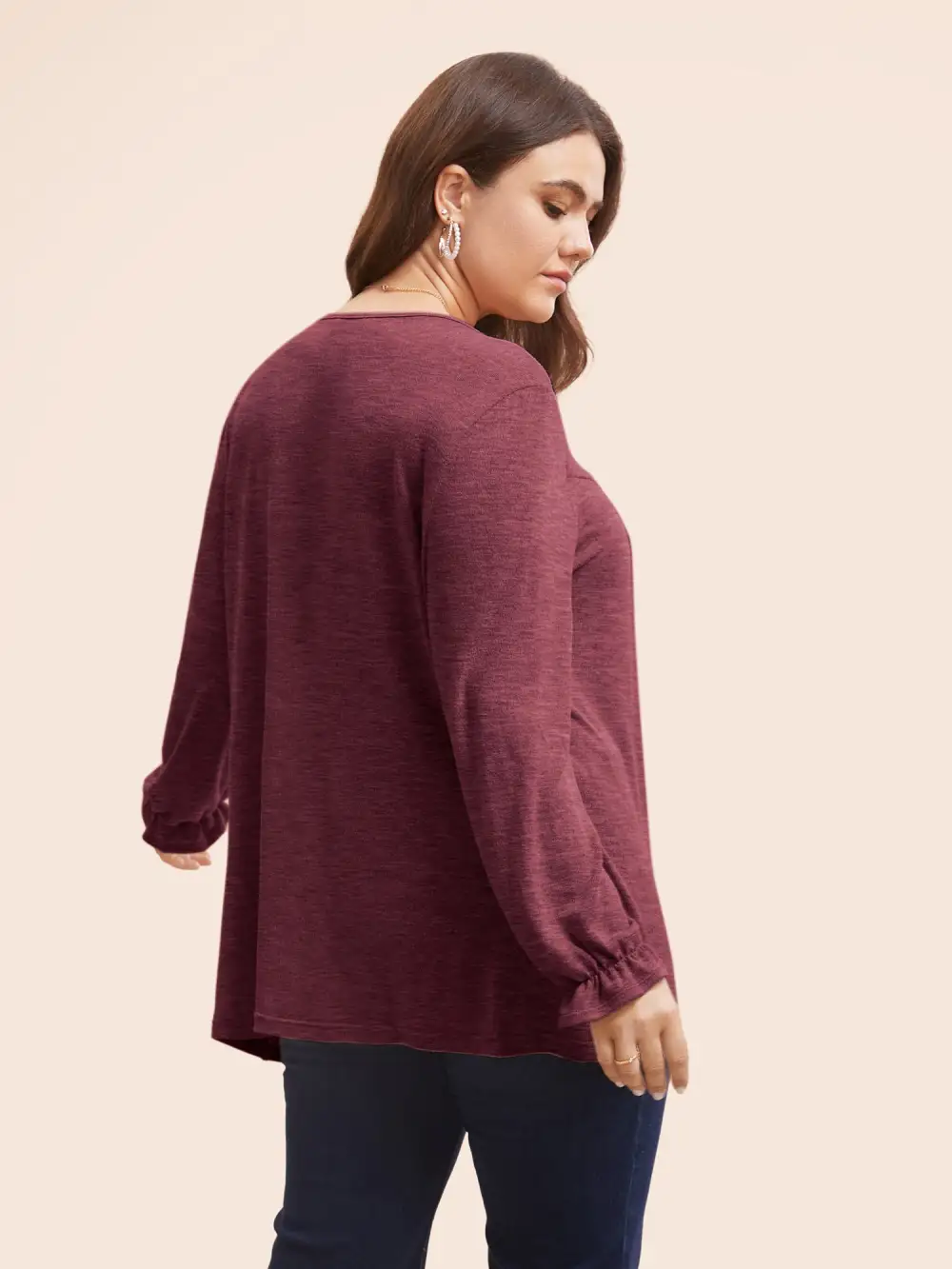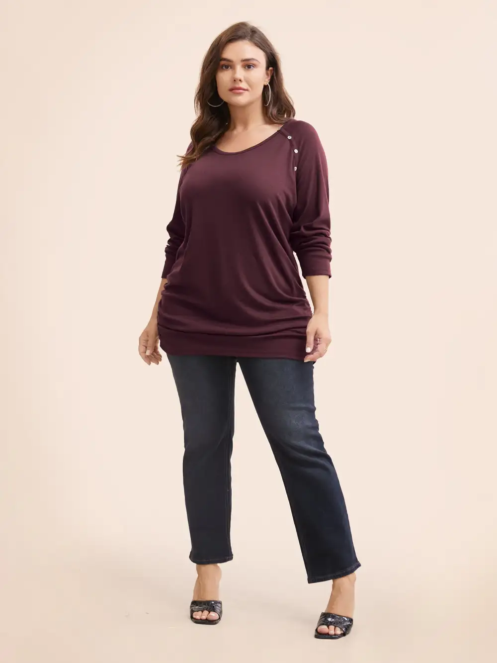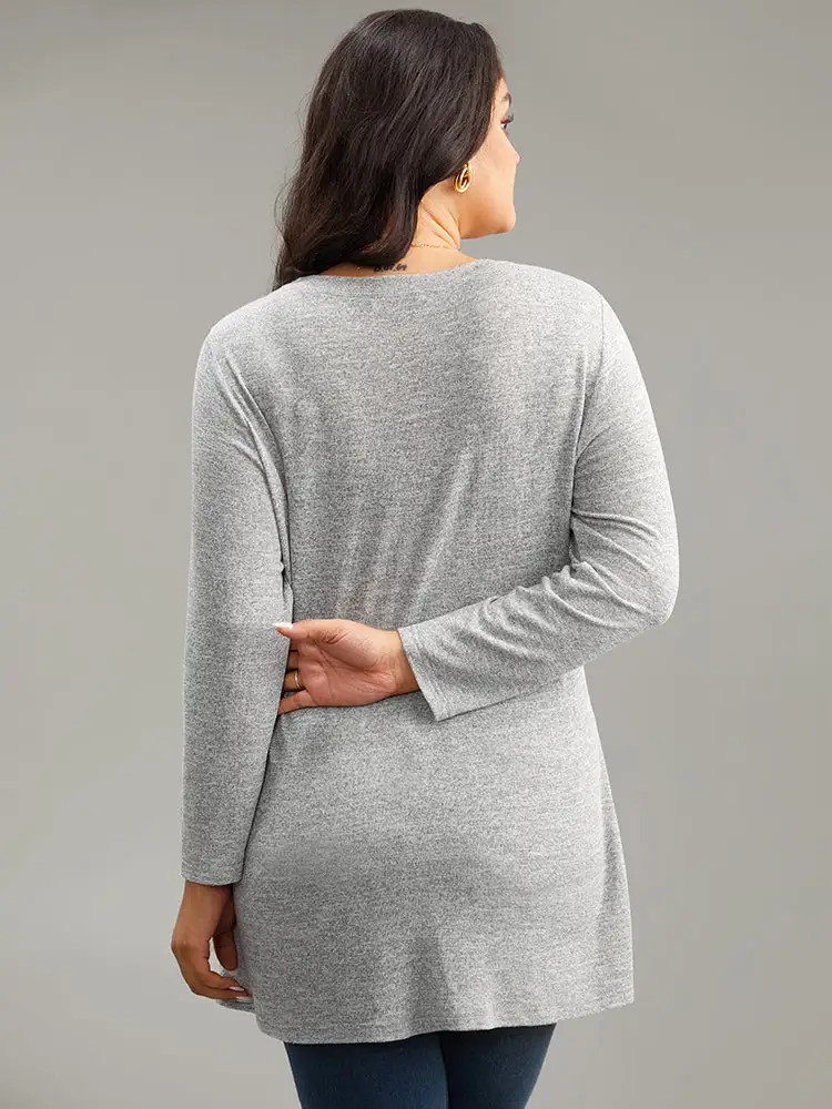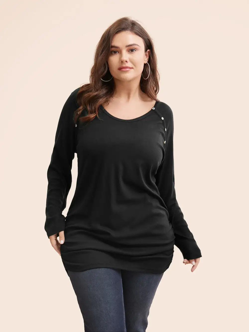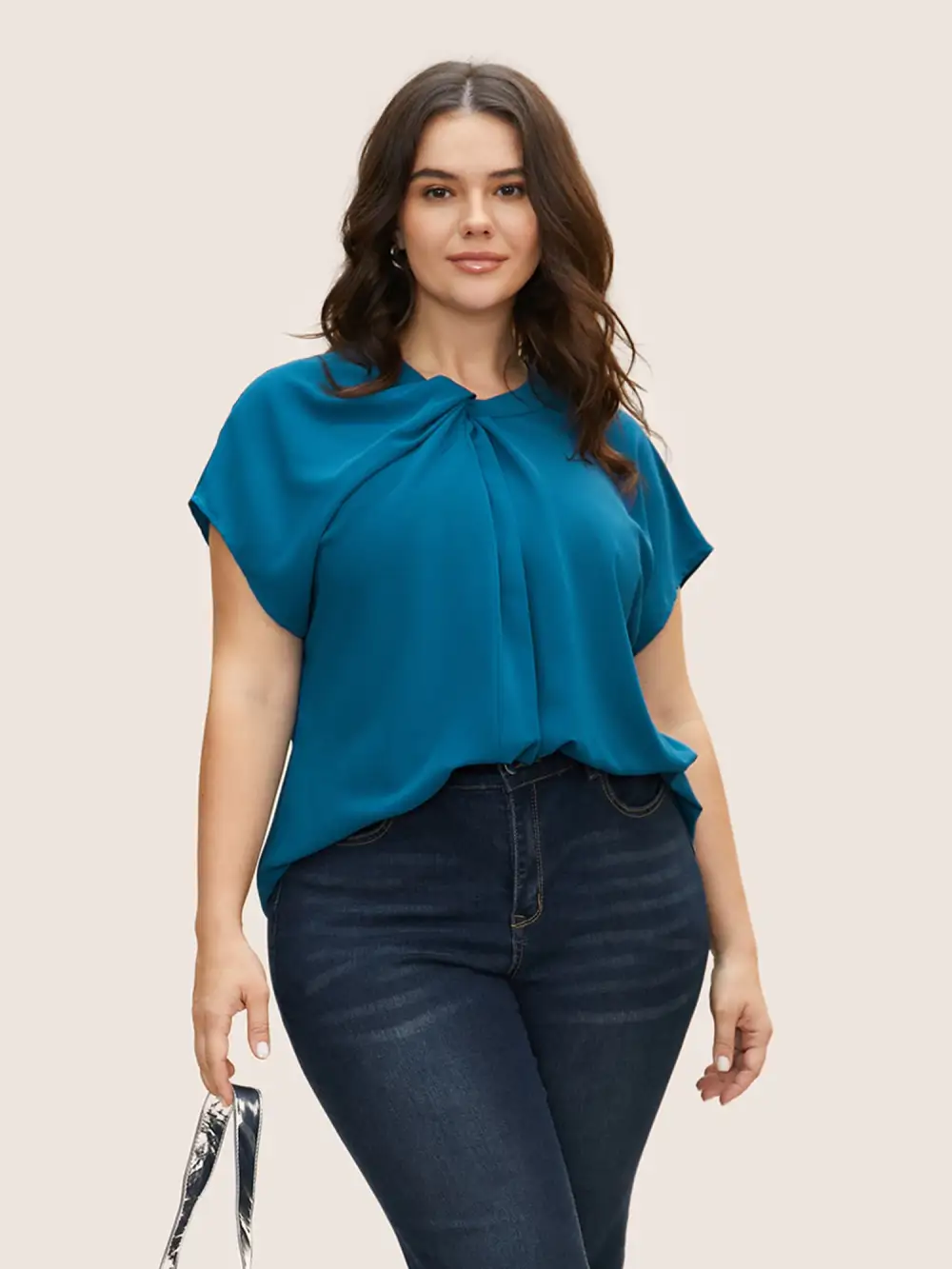 Plain Waffle Knit Scoop Neck Plicated Detail T-Shirt