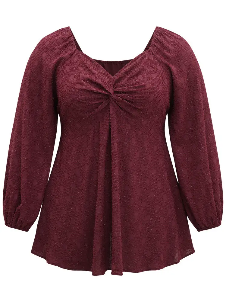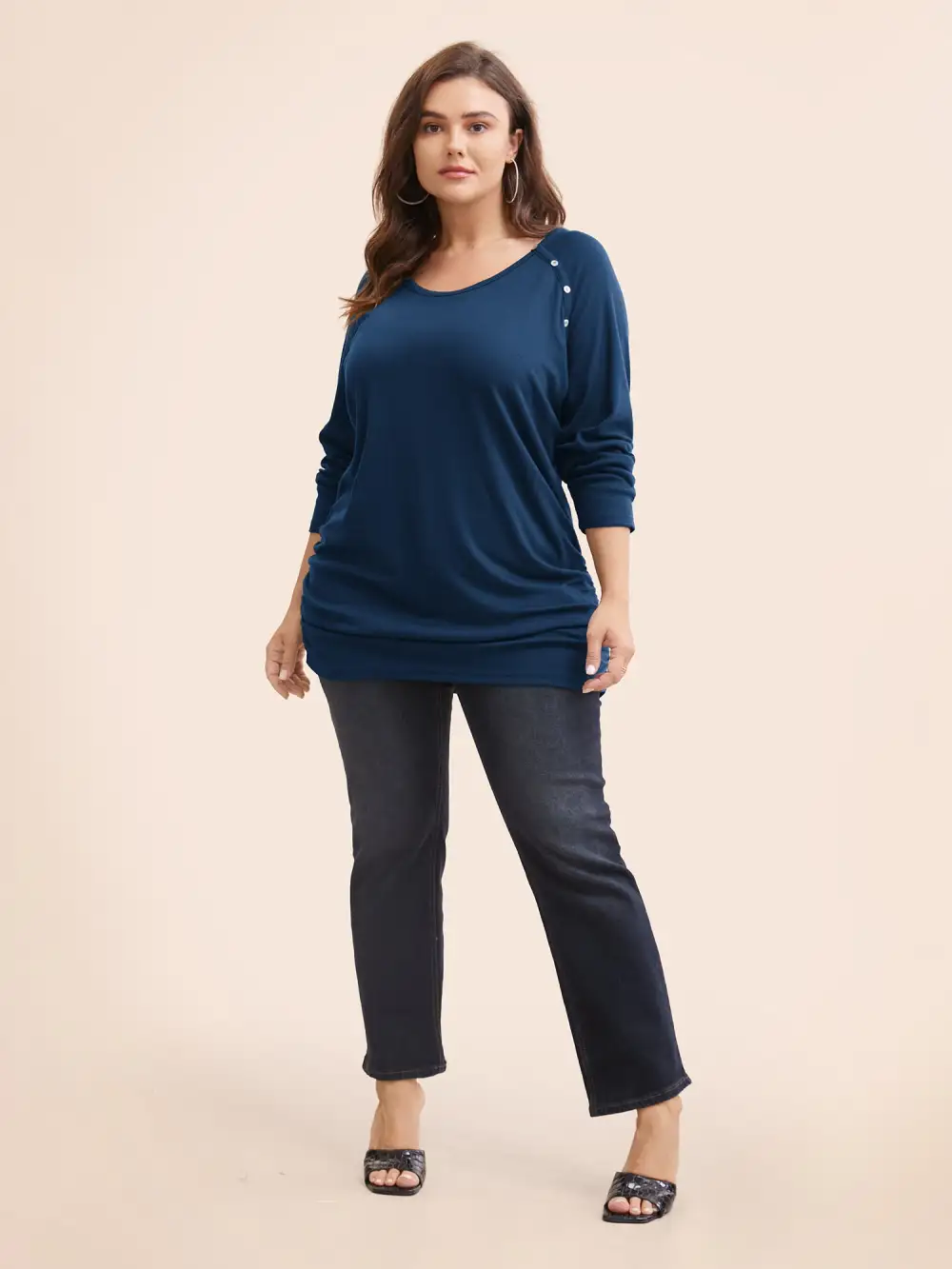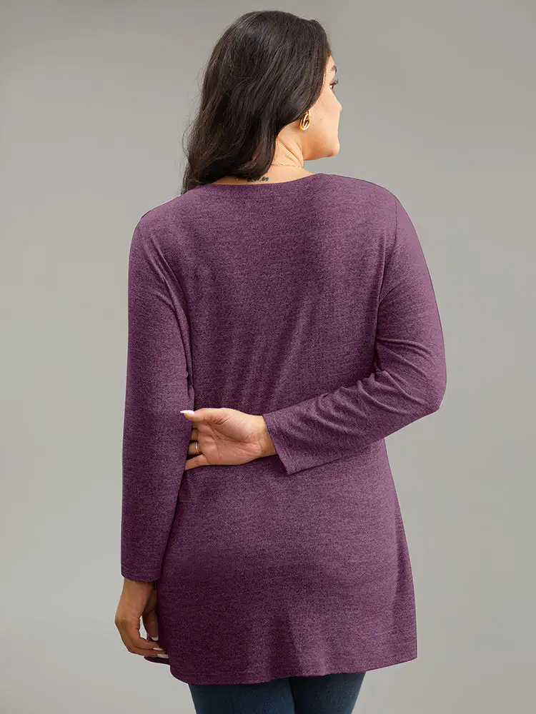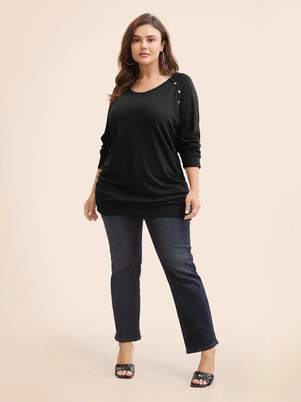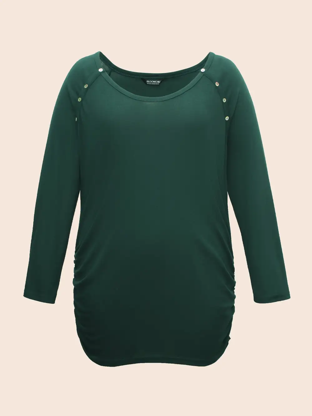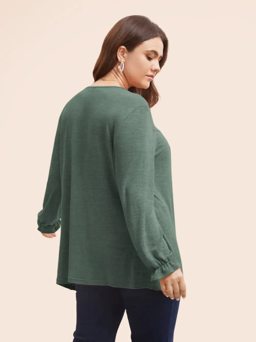 Plain Waffle Knit Scoop Neck Plicated Detail T-Shirt