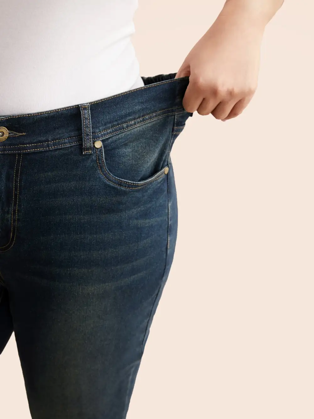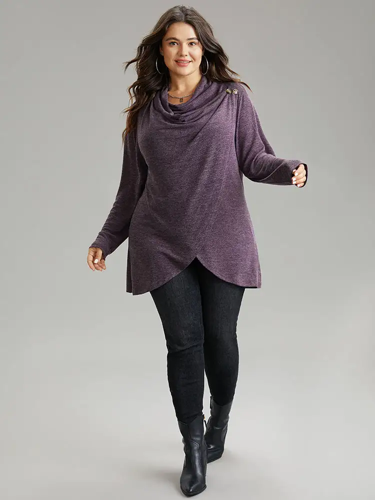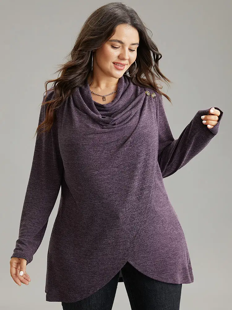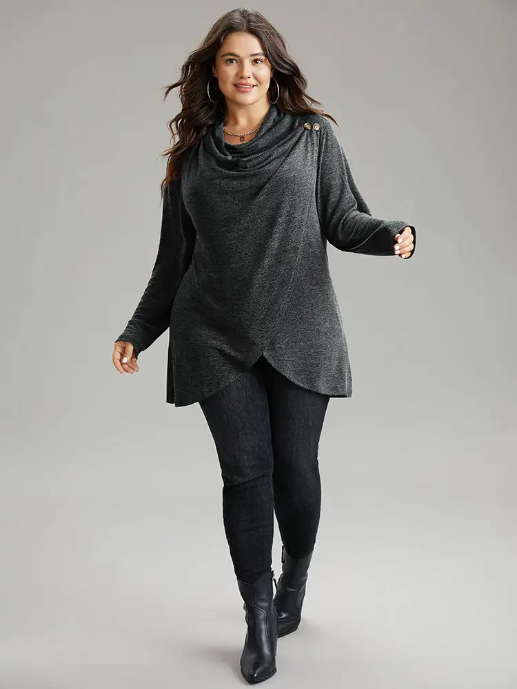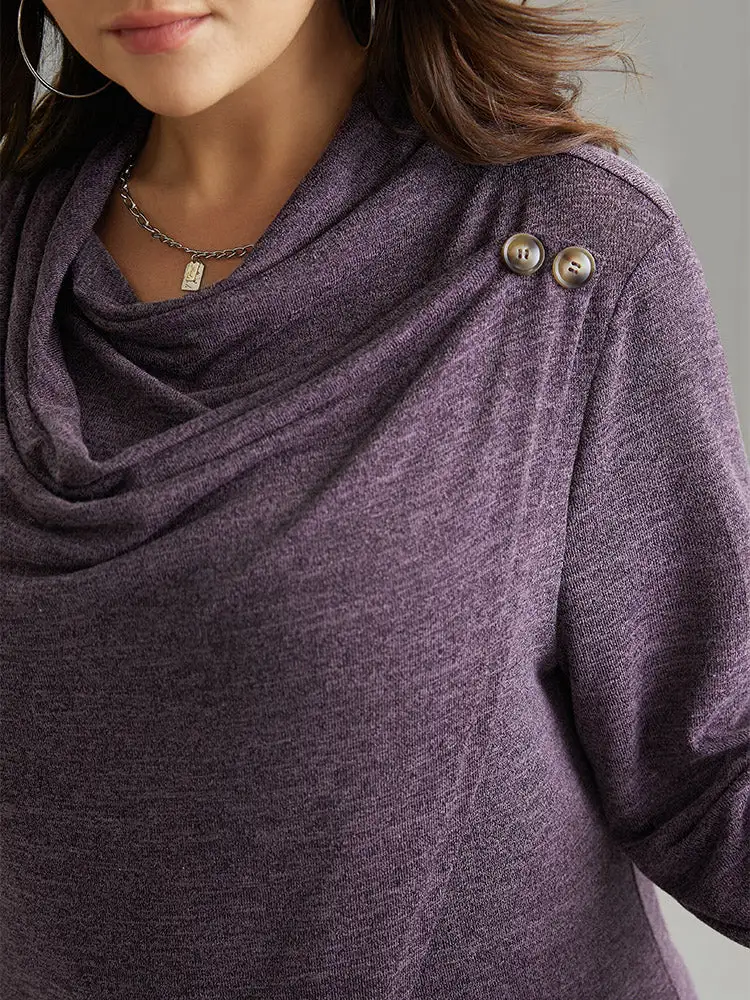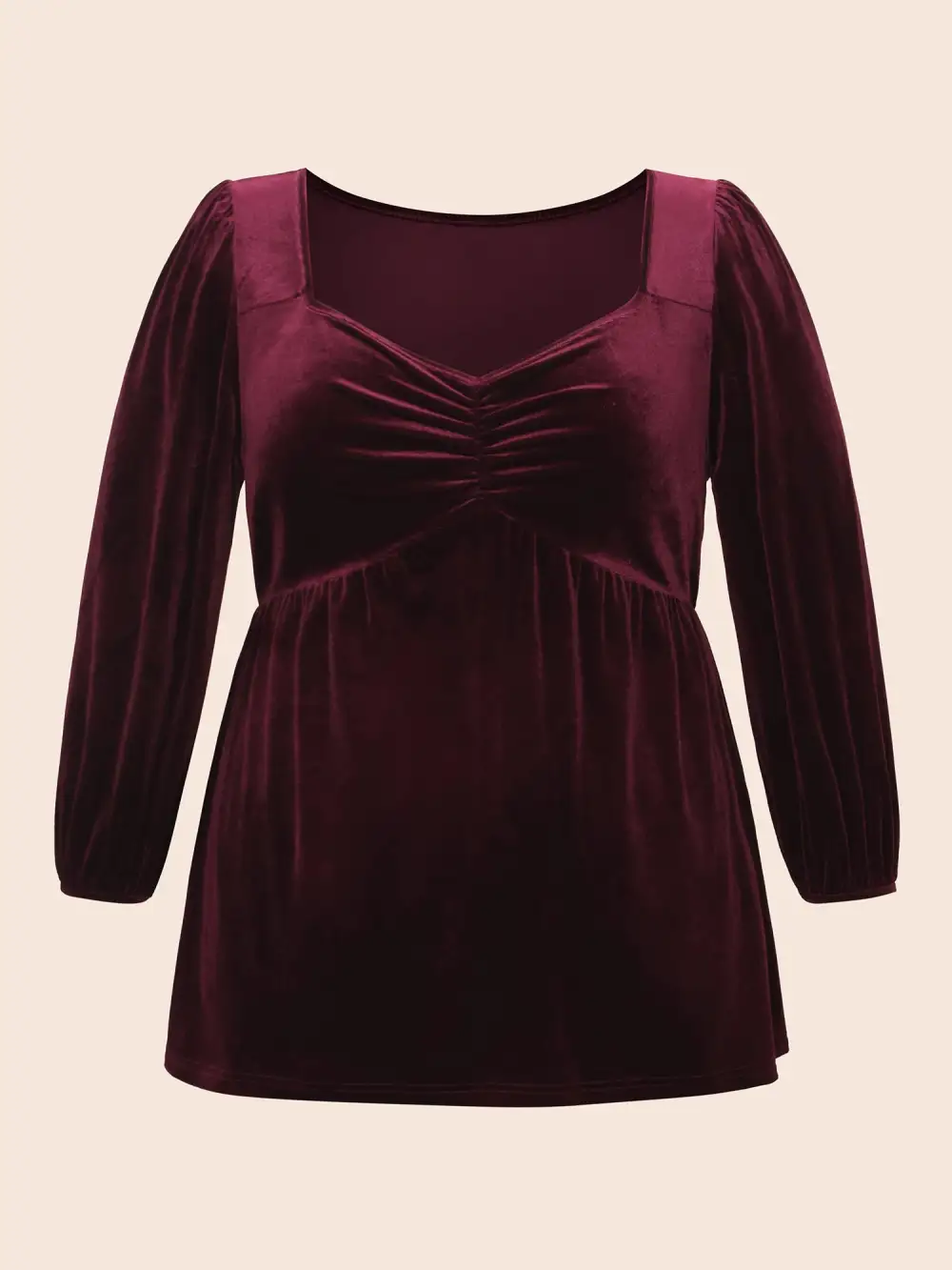 Plain Waffle Knit Scoop Neck Plicated Detail T-Shirt