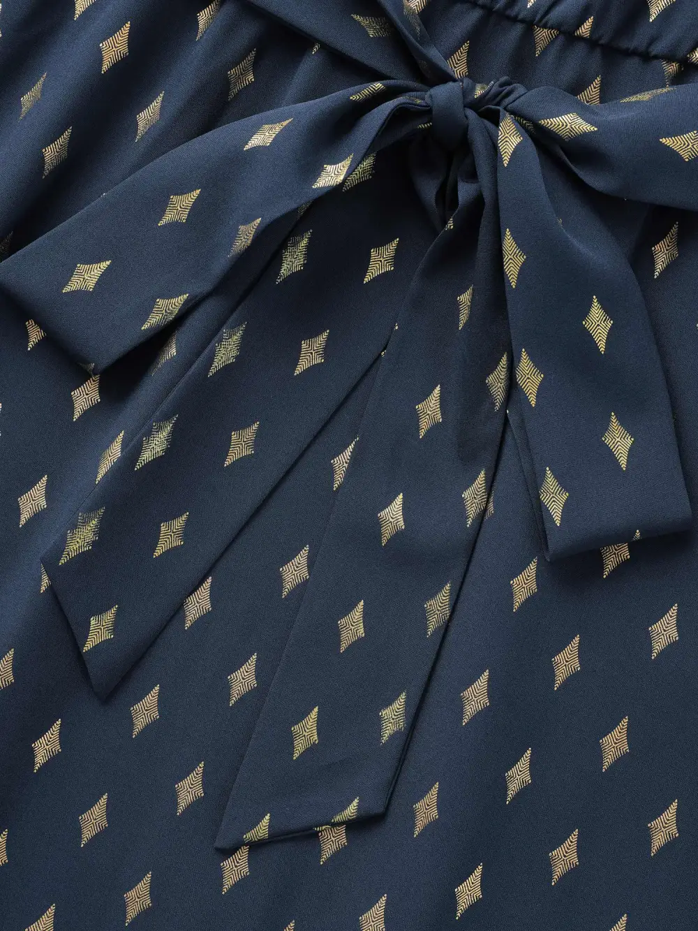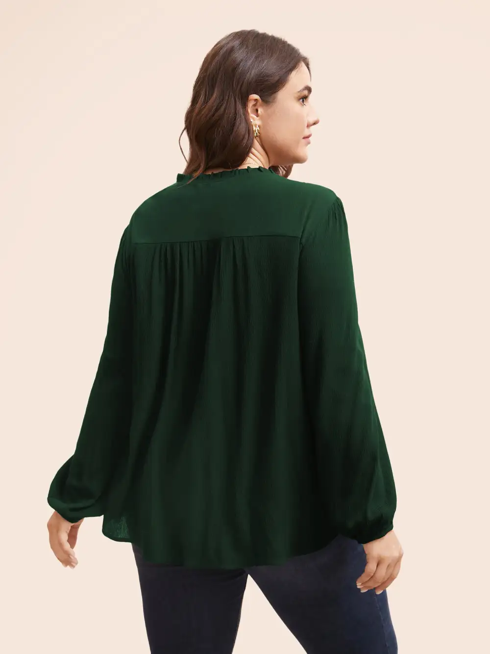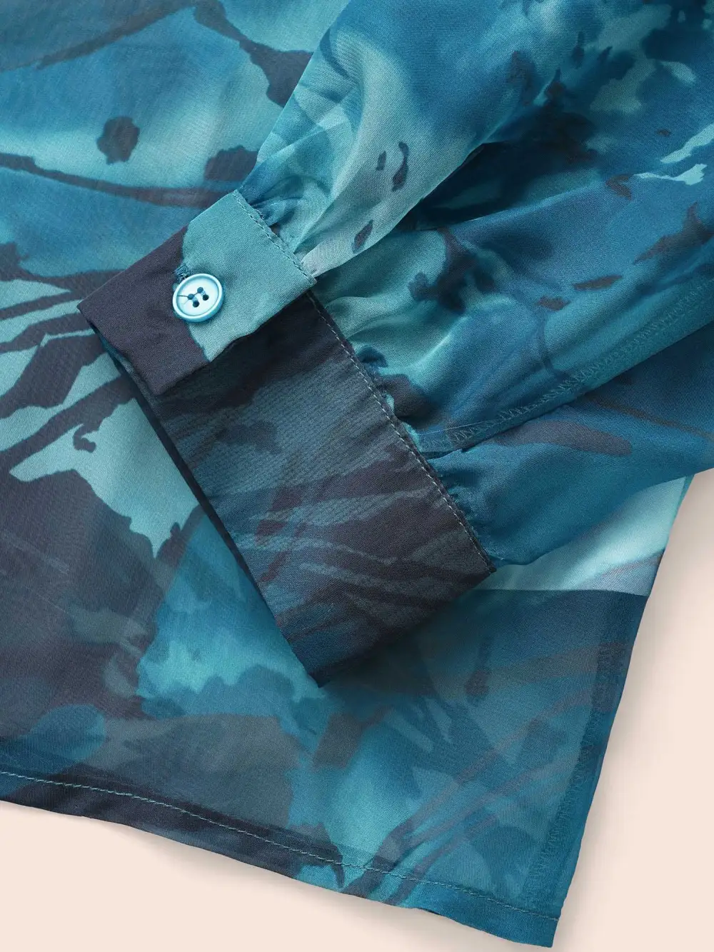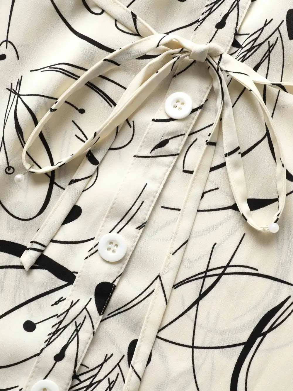 Bandana Geometric Pleated Lantern Sleeve Blouse