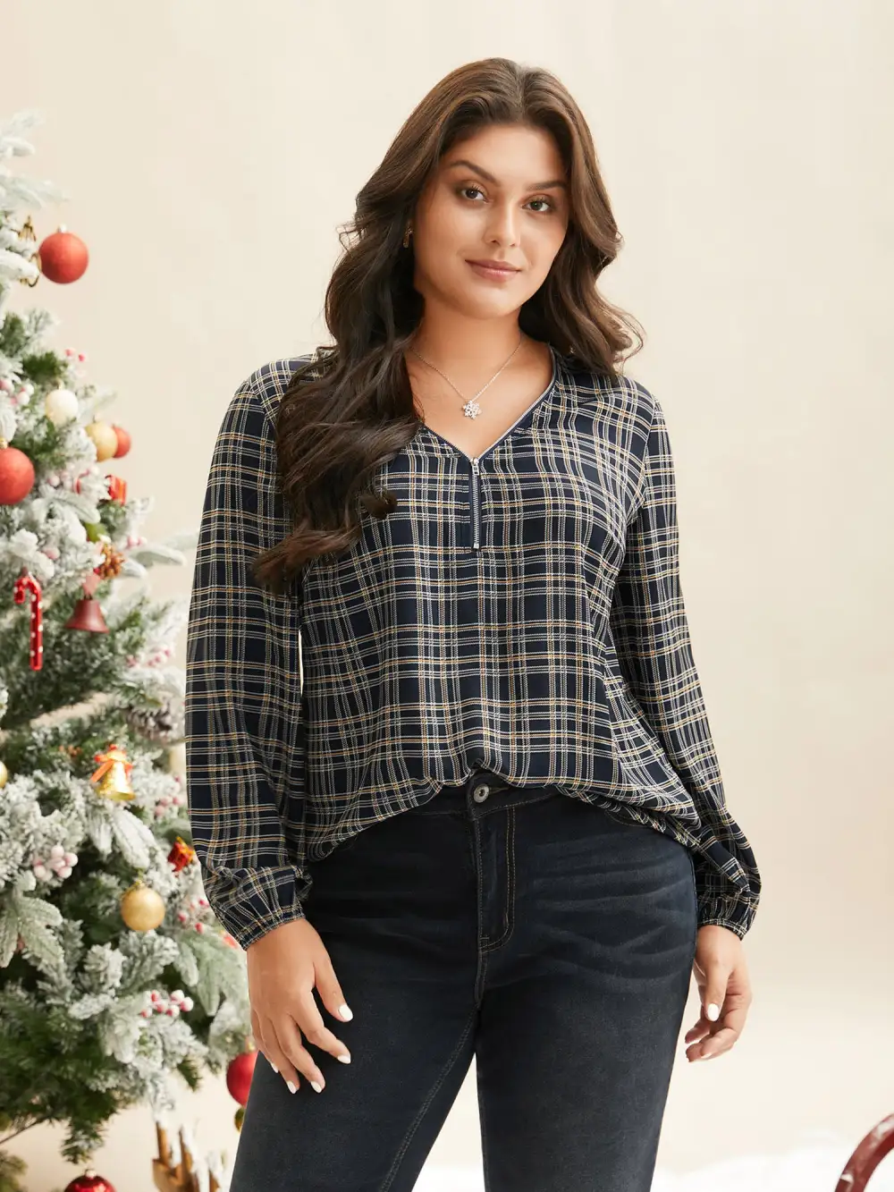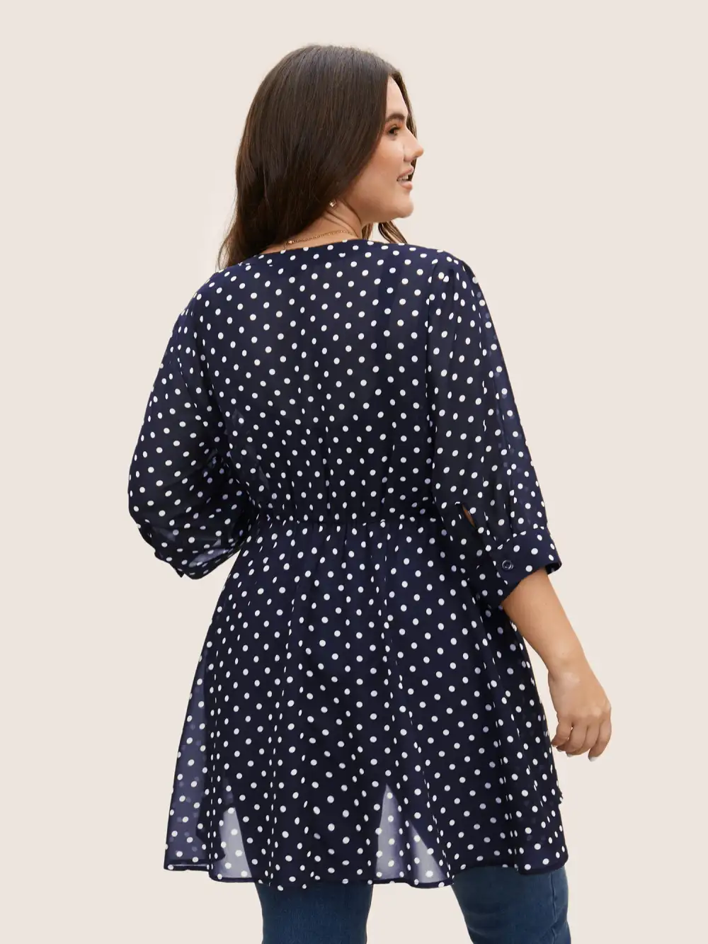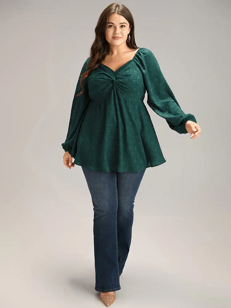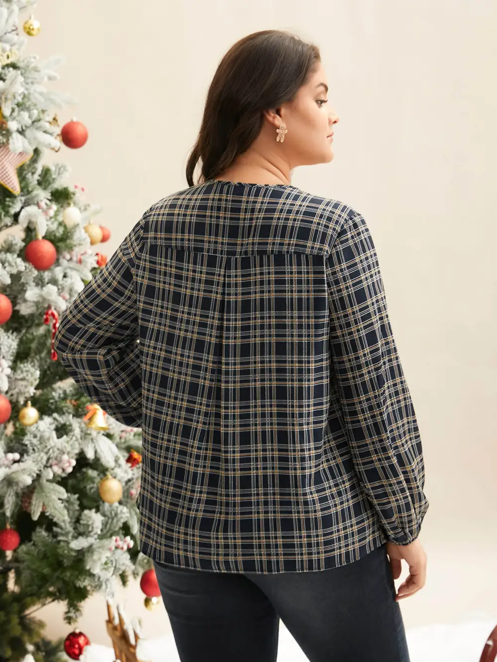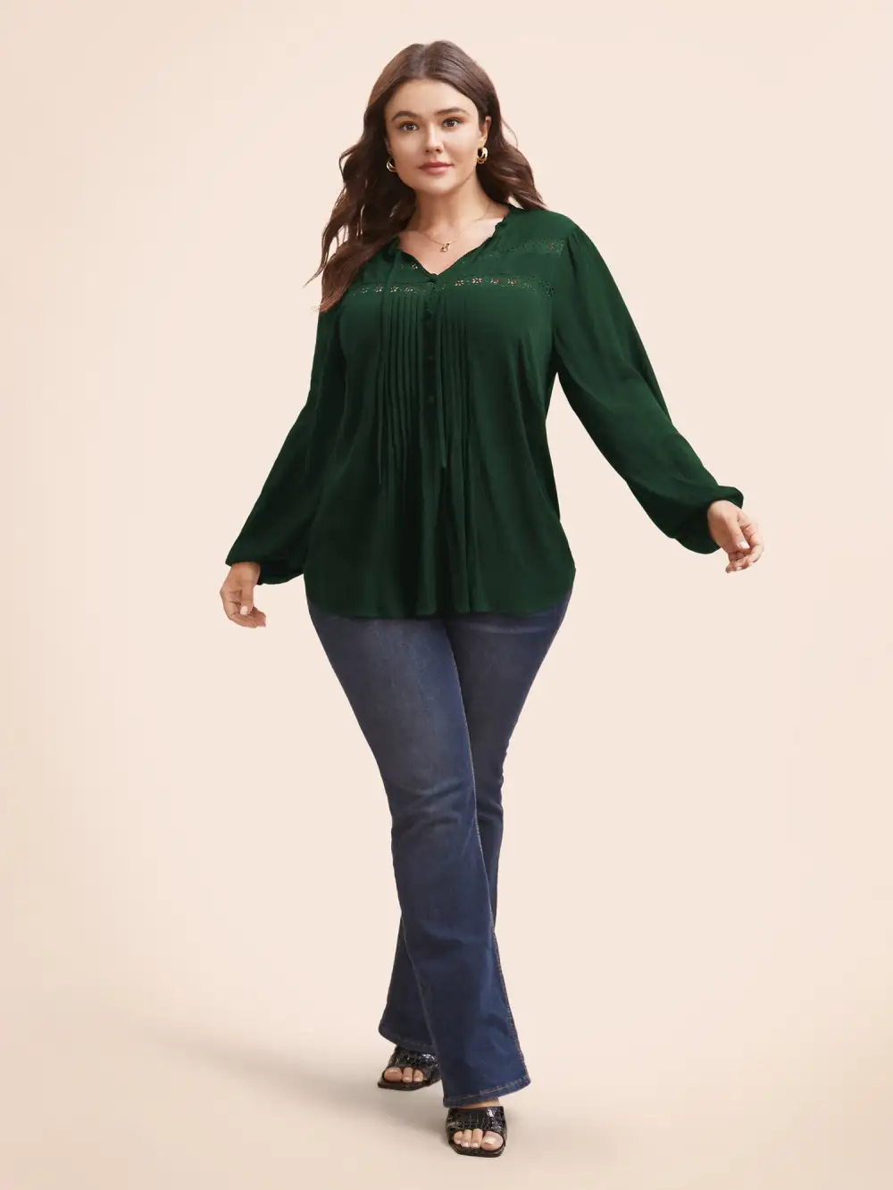 Bandana Geometric Pleated Lantern Sleeve Blouse