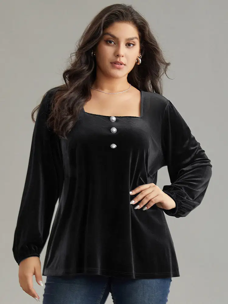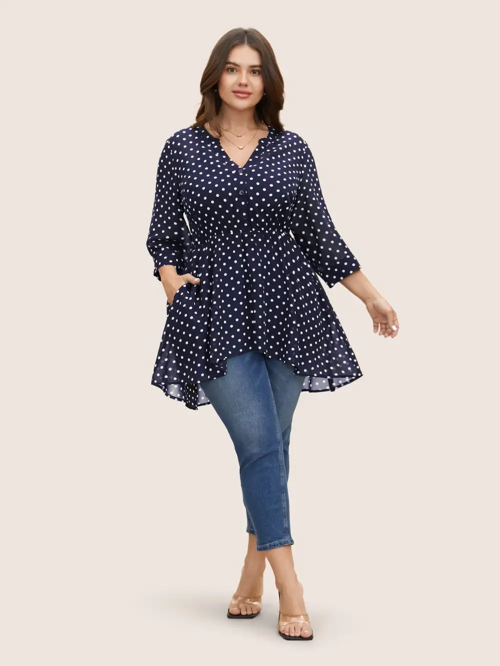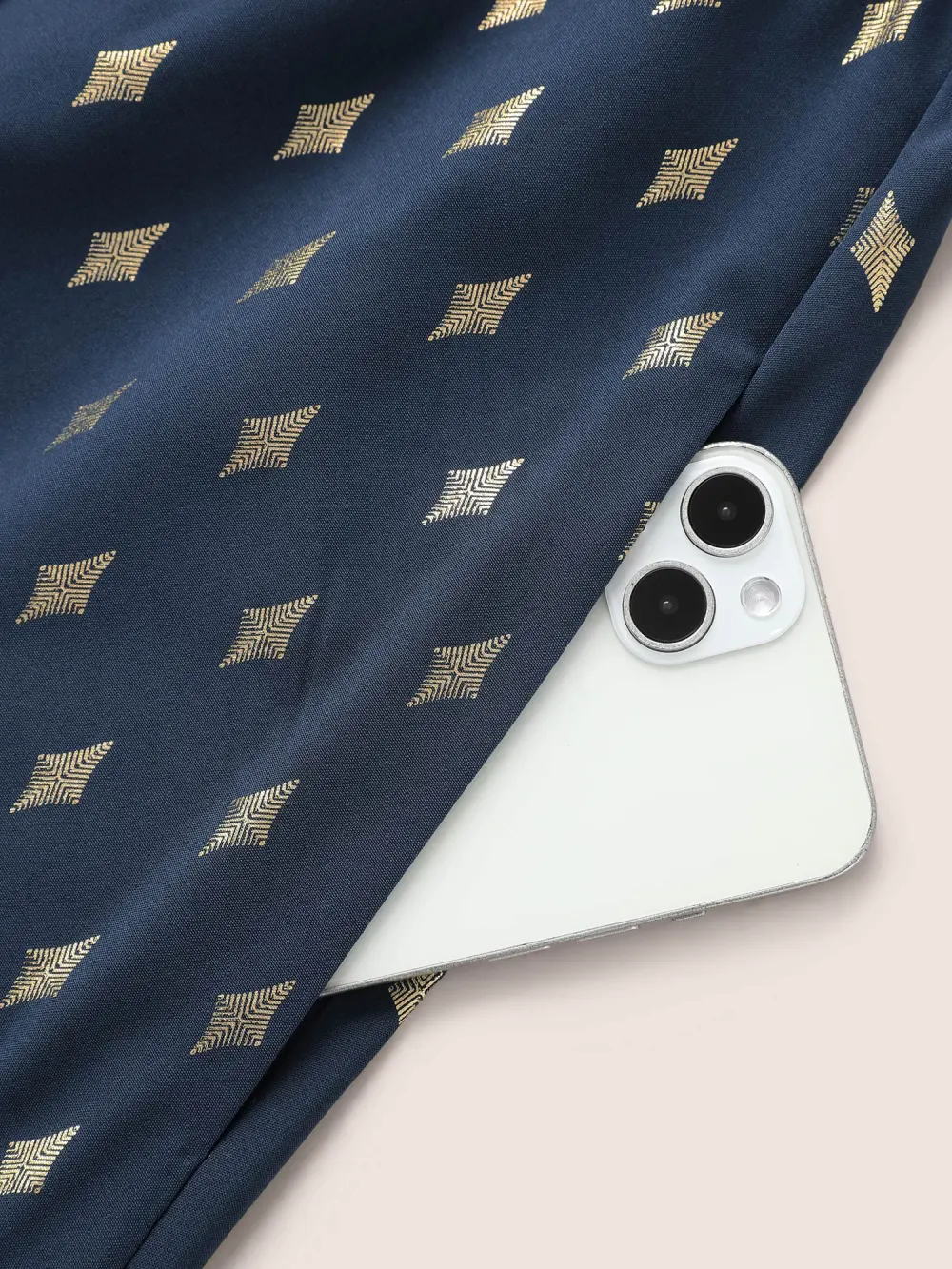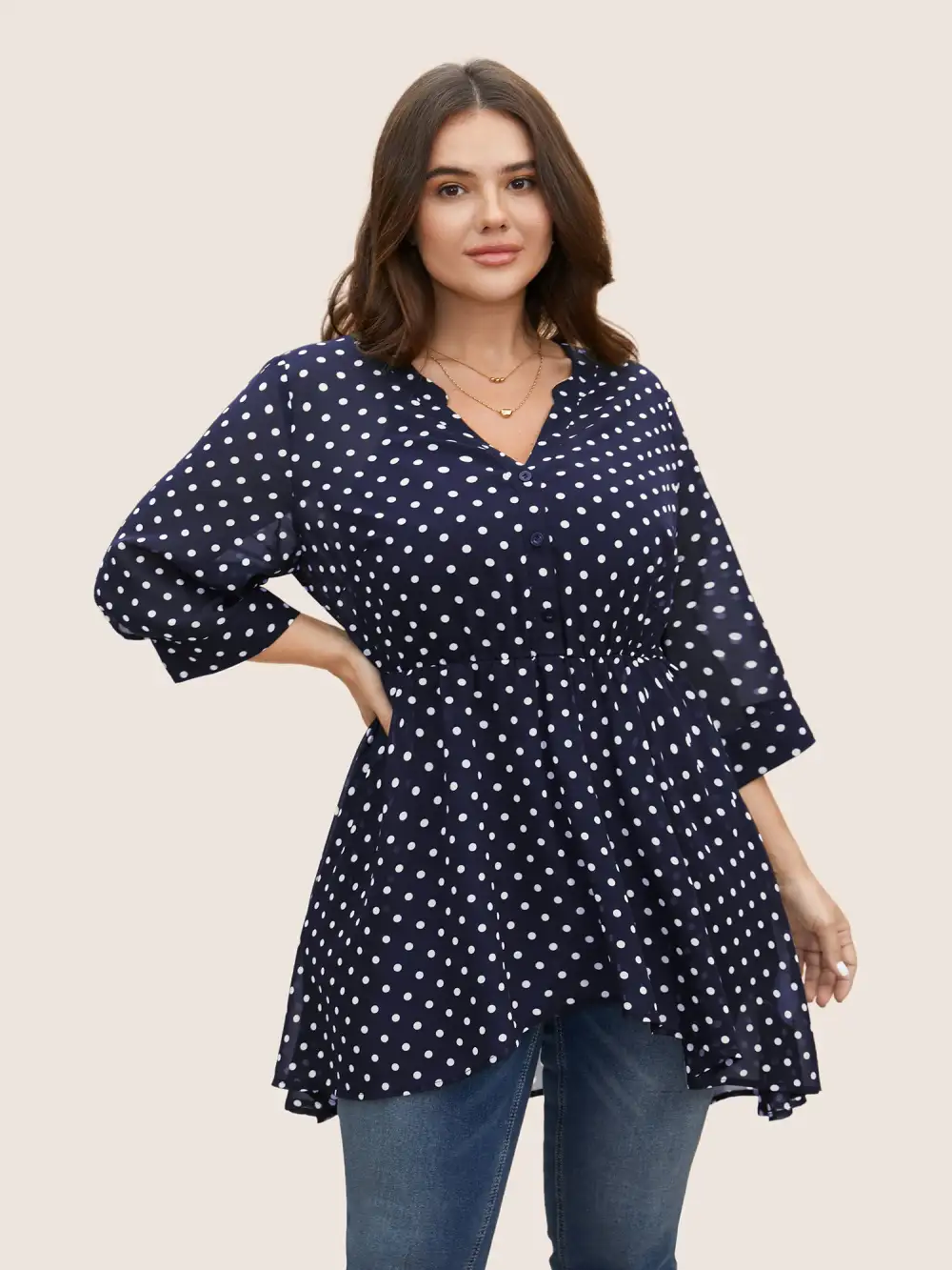 Bandana Geometric Pleated Lantern Sleeve Blouse