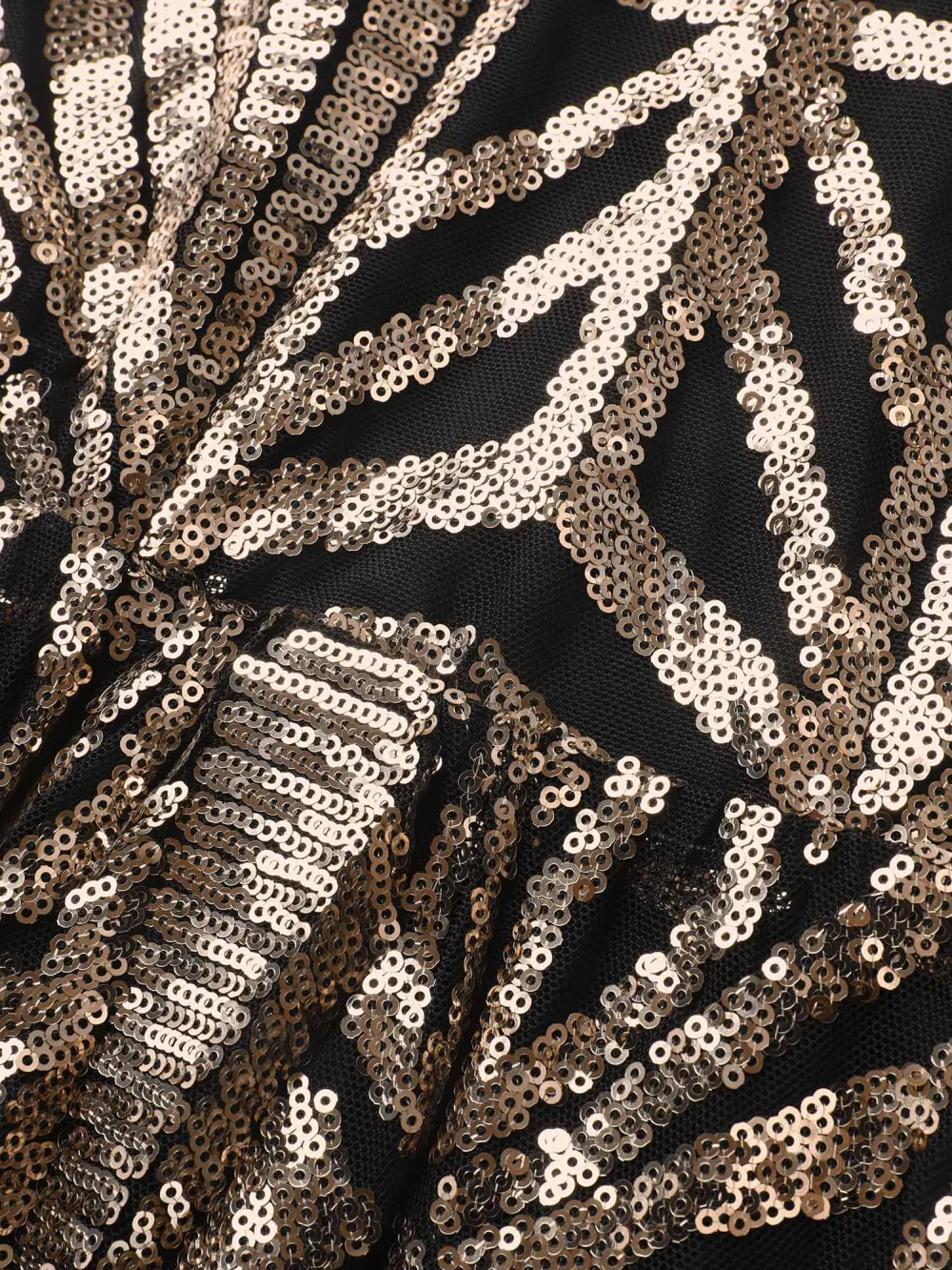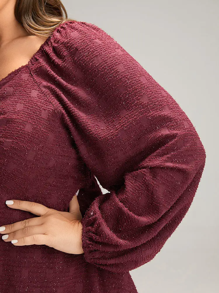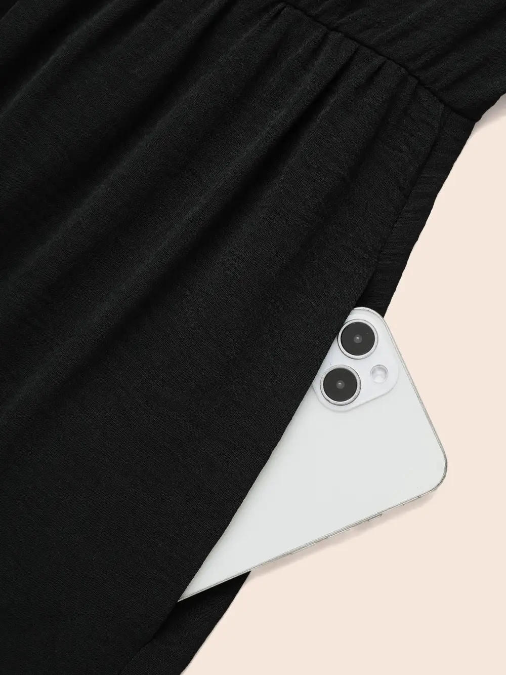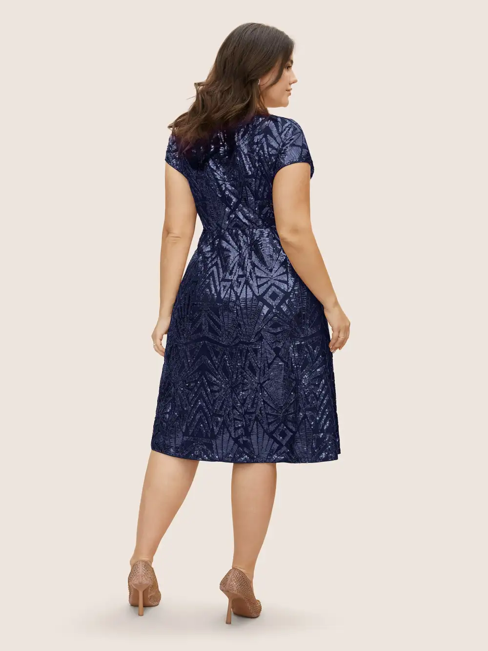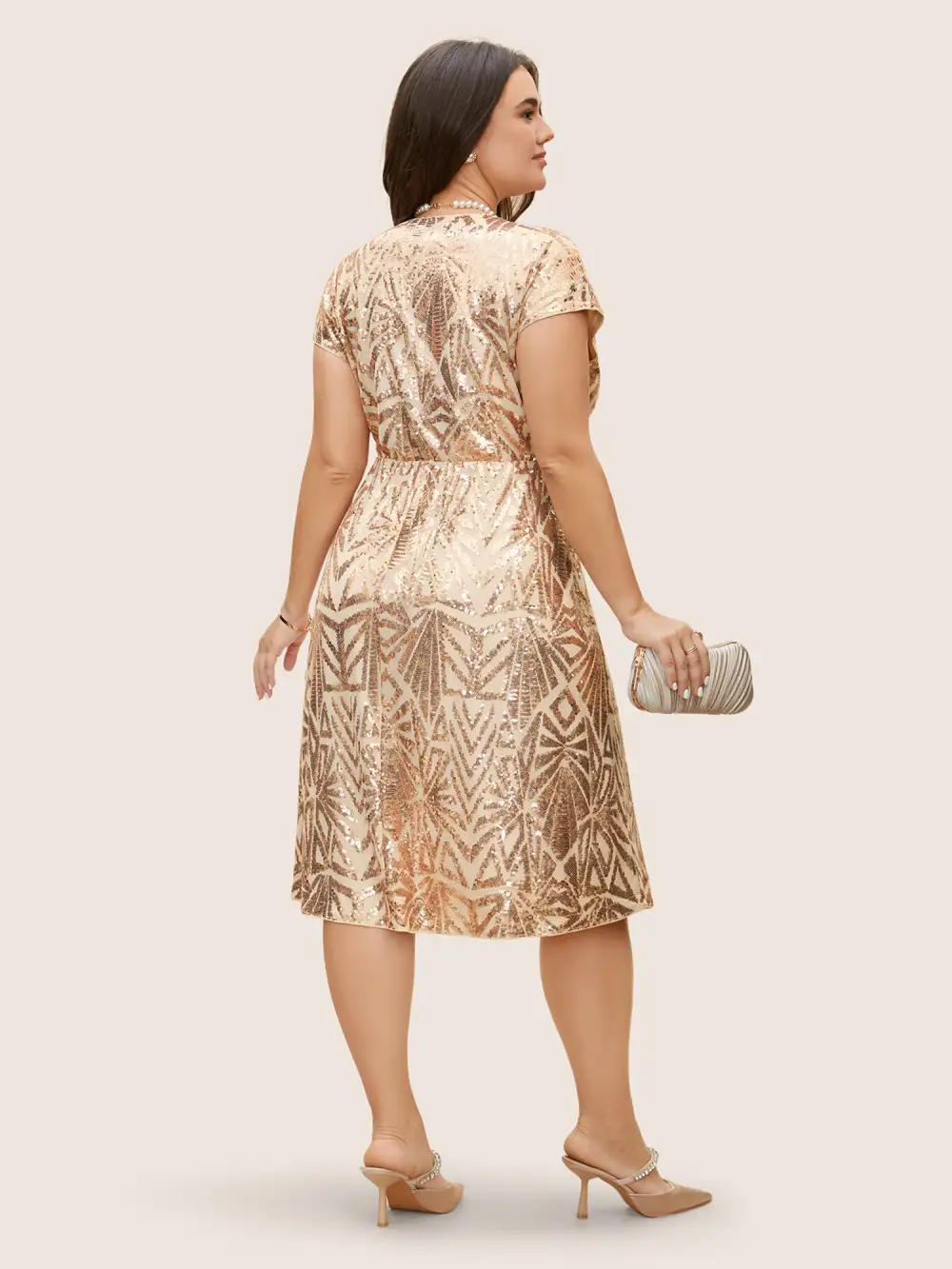 Solid Pocket Lantern Sleeve Wrap Sequin Dress