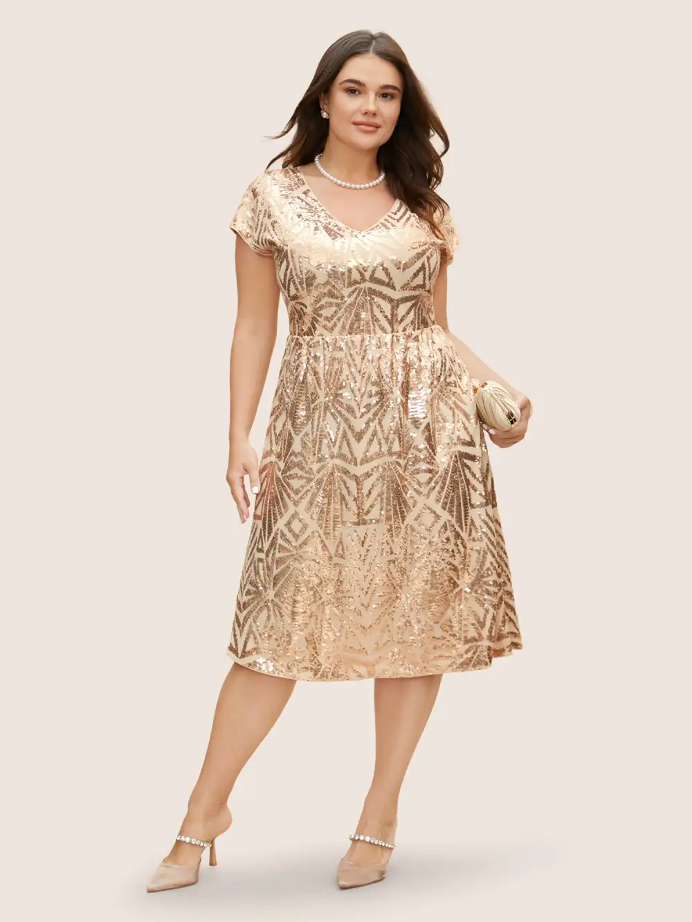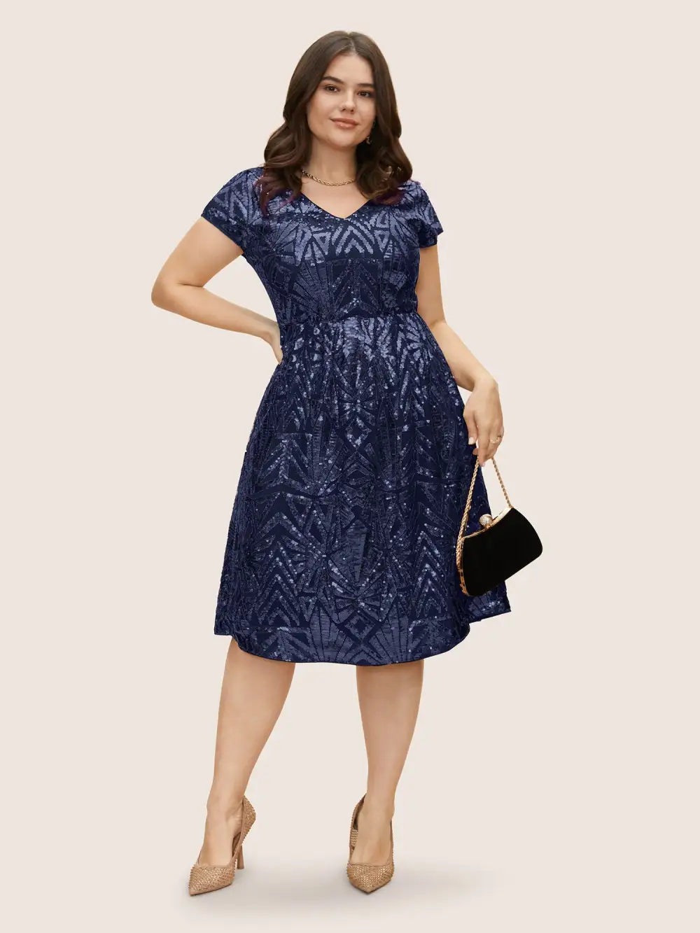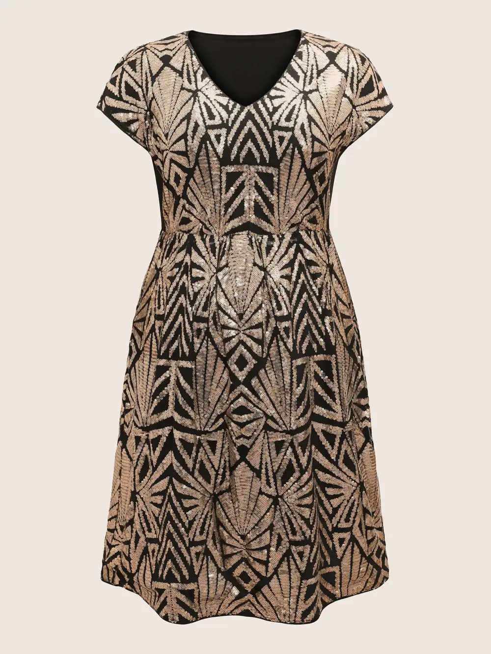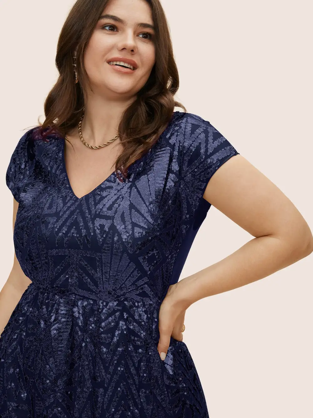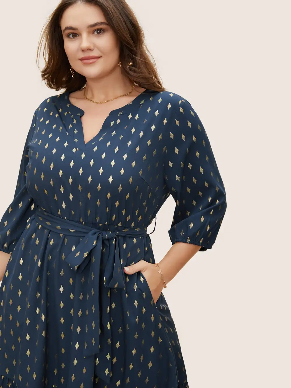 Solid Pocket Lantern Sleeve Wrap Sequin Dress