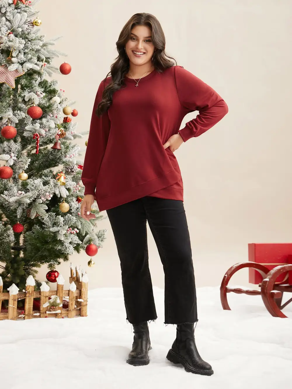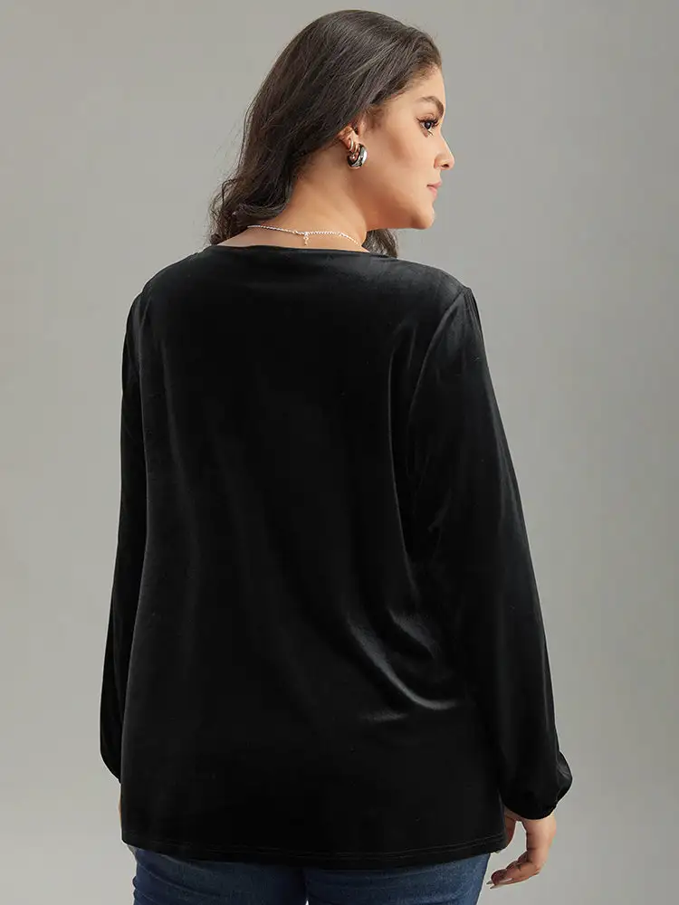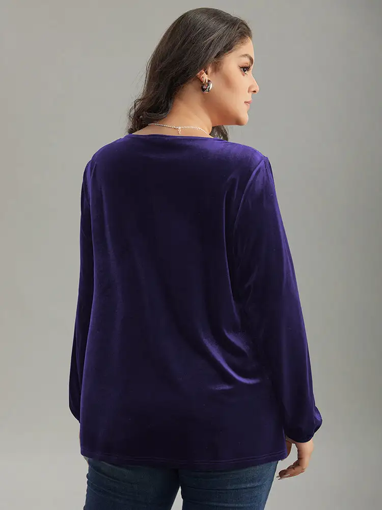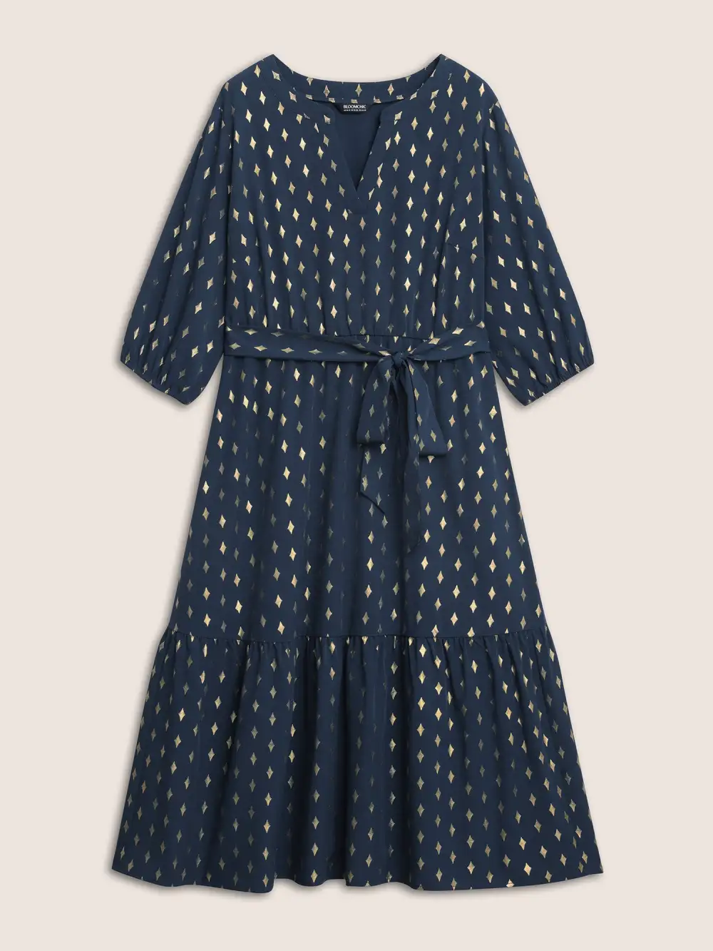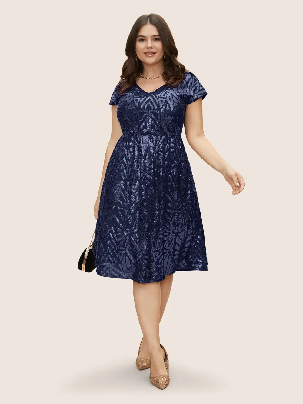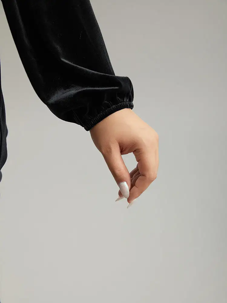 Solid Pocket Lantern Sleeve Wrap Sequin Dress