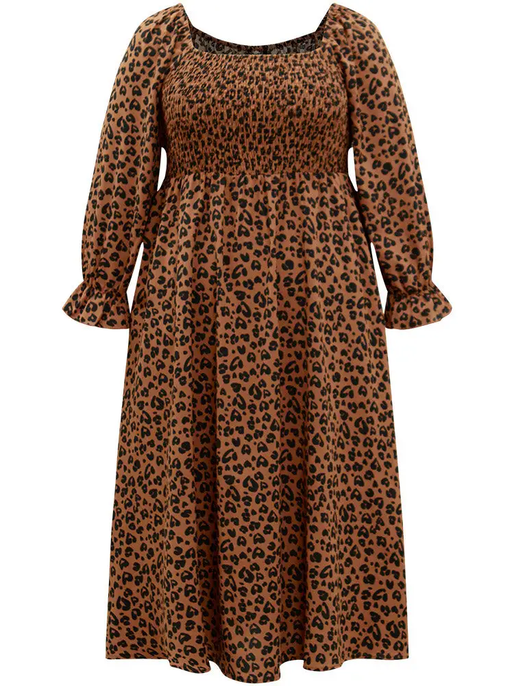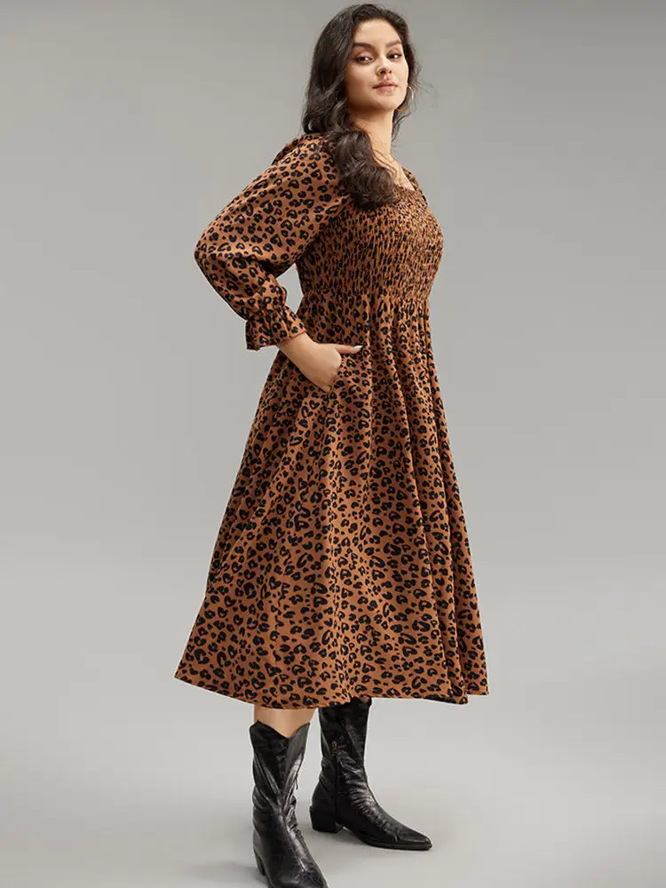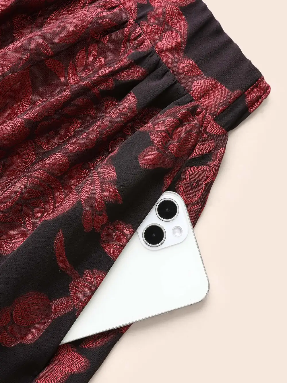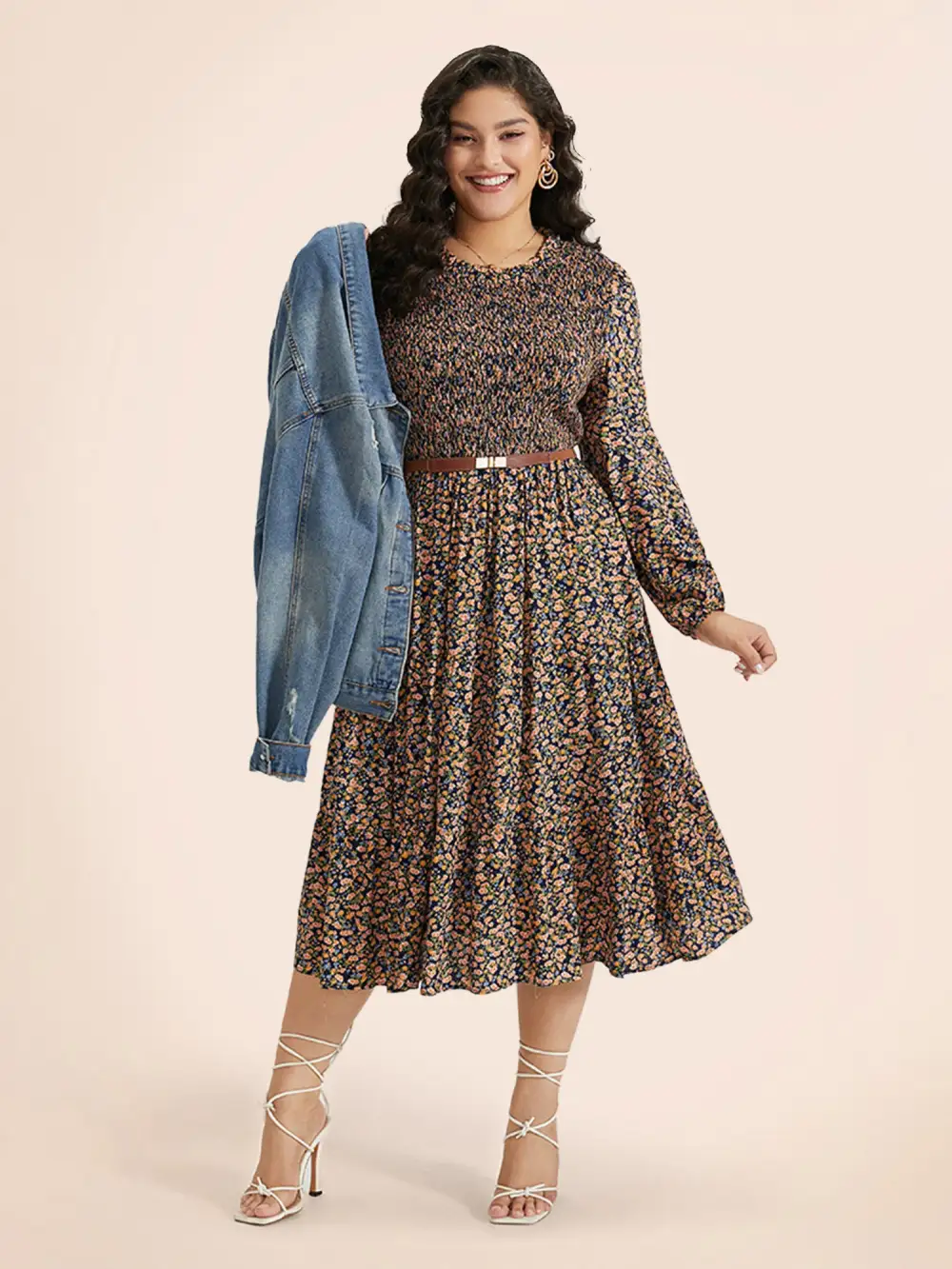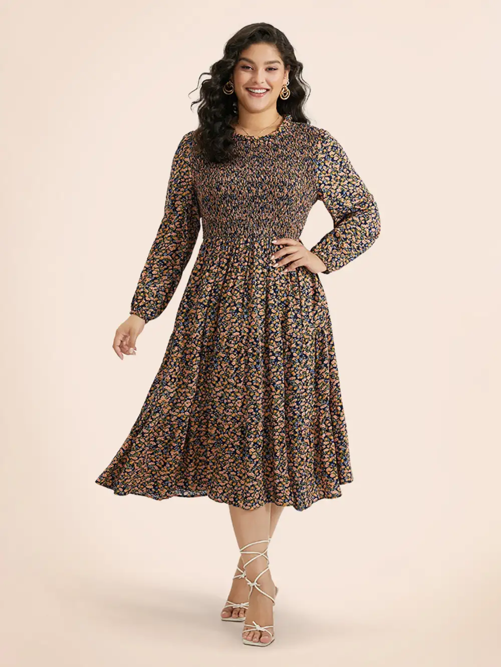 Ditsy Floral Shirred Pocket Pleated Frill Trim Dress