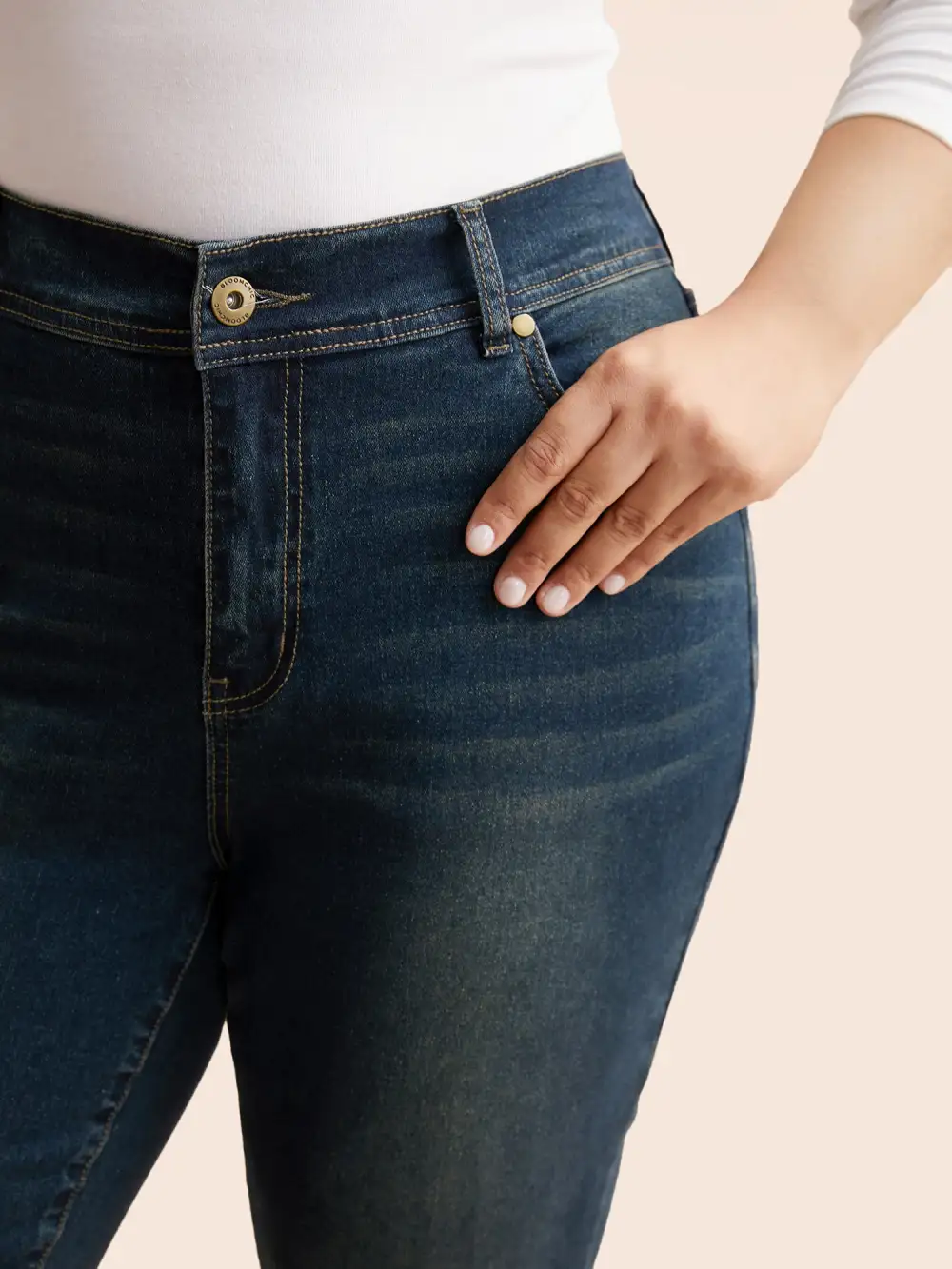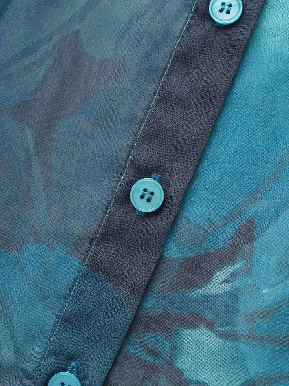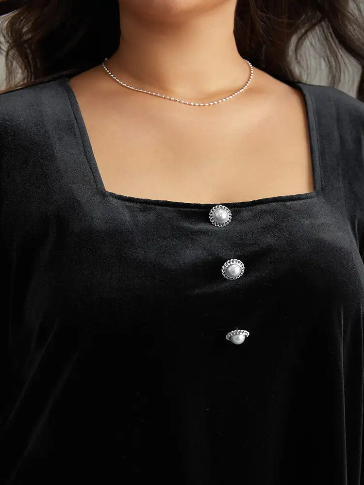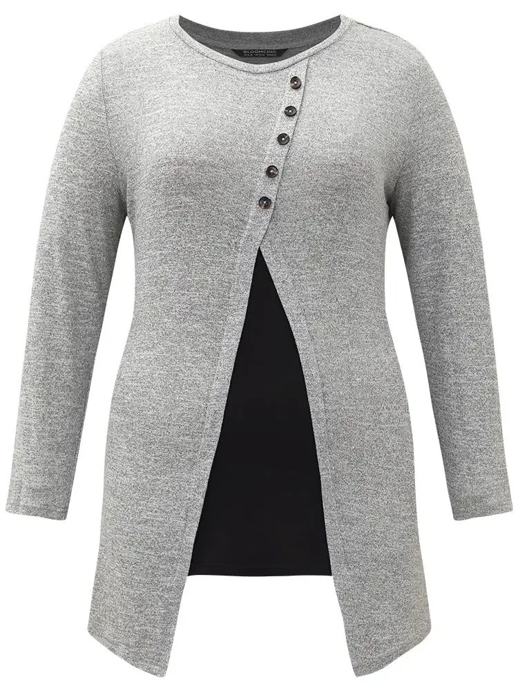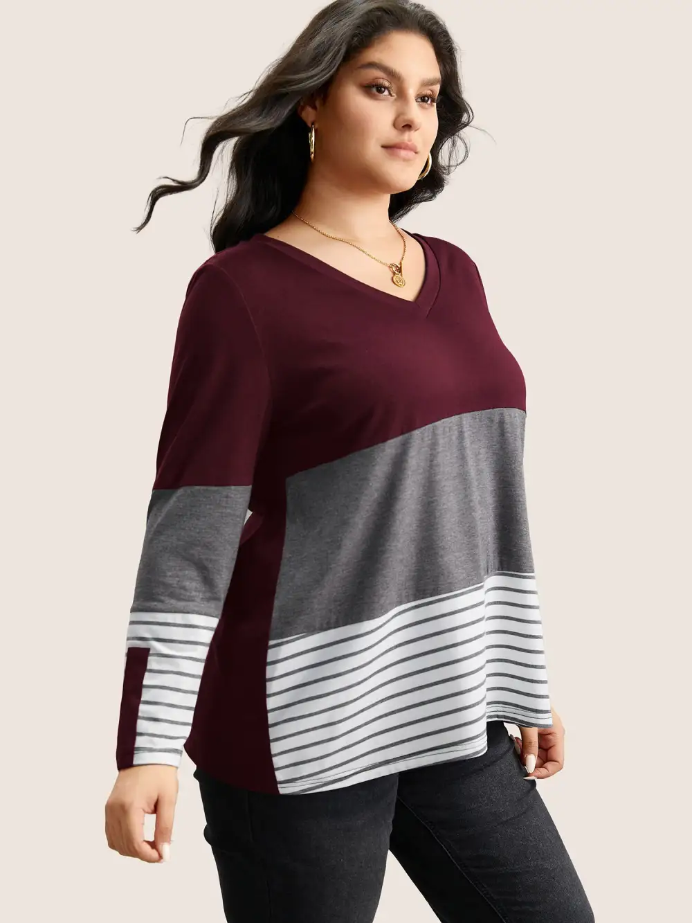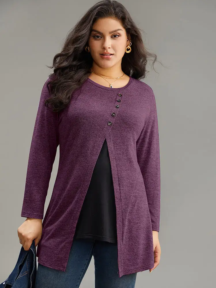Contrast Patchwork Crew Neck Button Detail T-Shirt