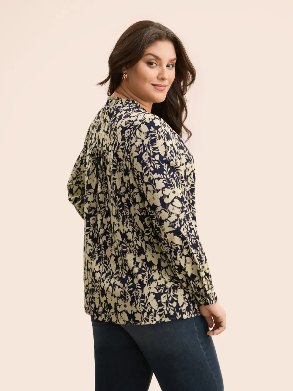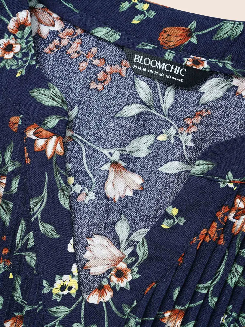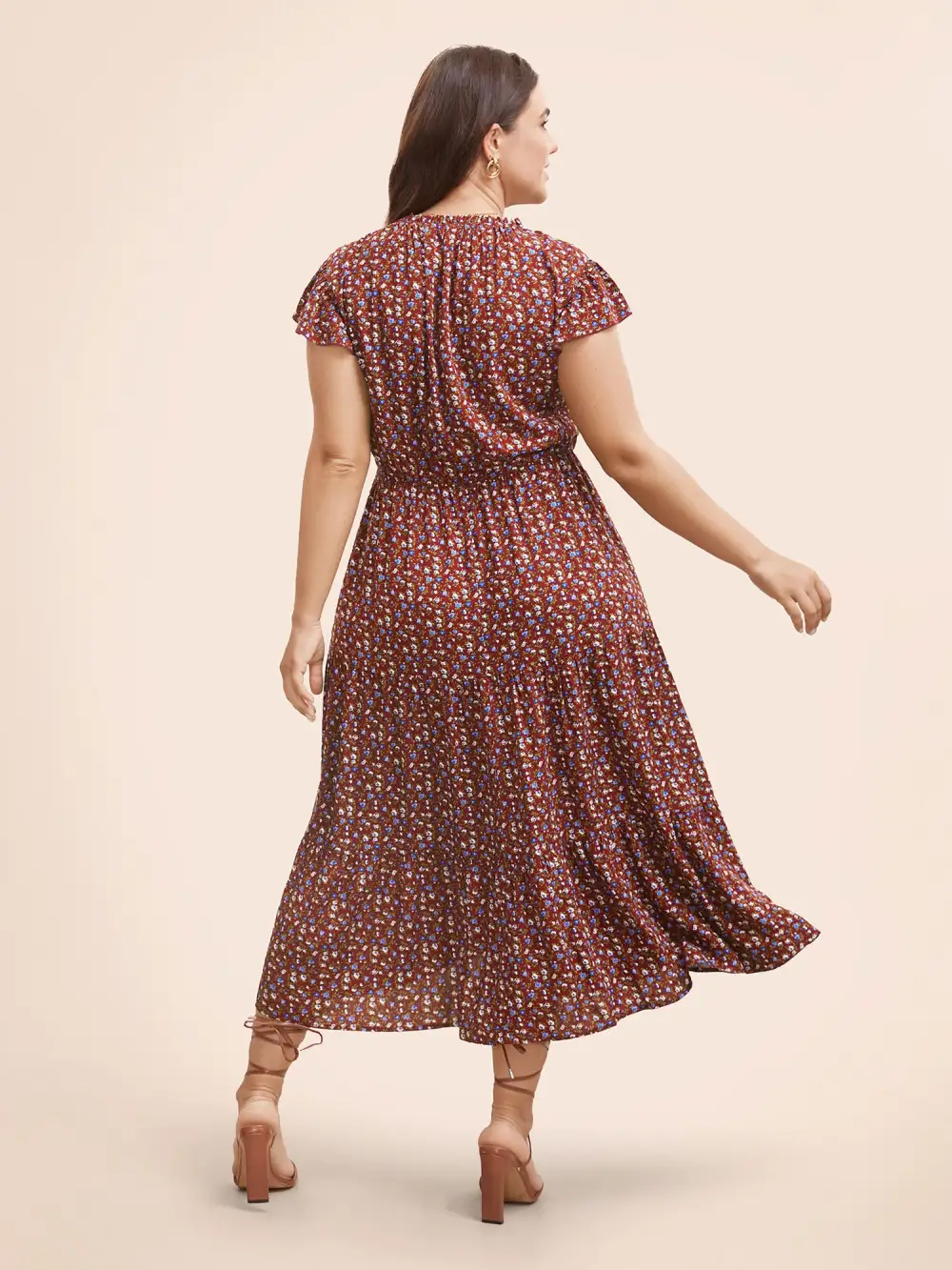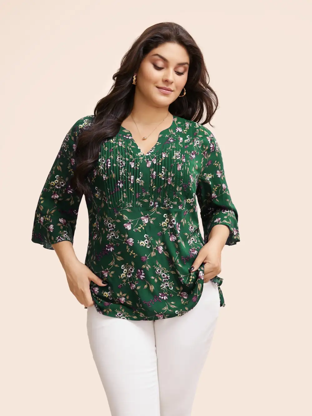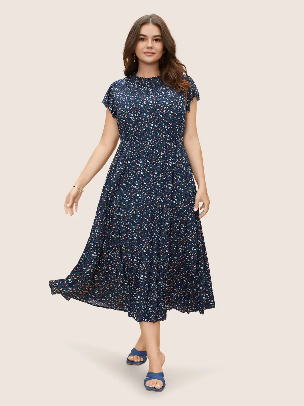 Ditsy Floral Pleated Flutter Sleeve Blouse