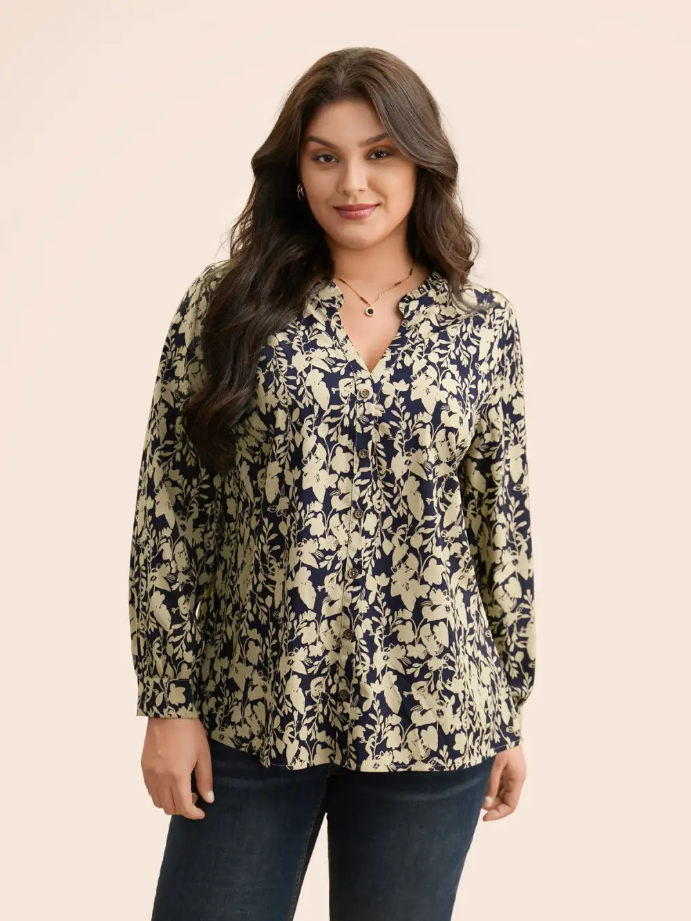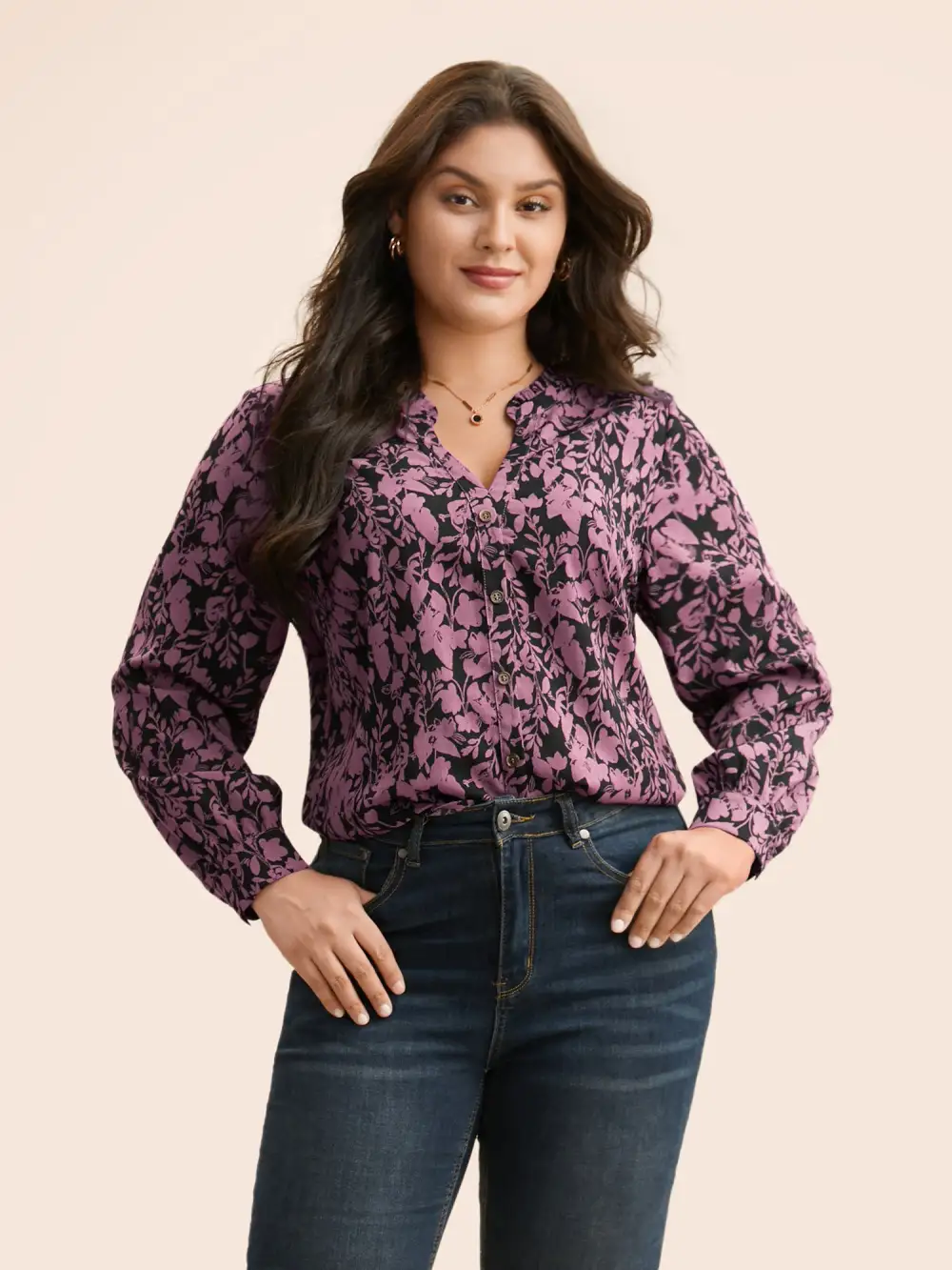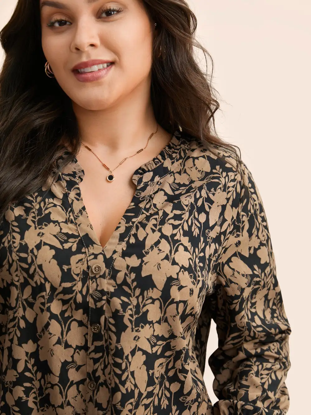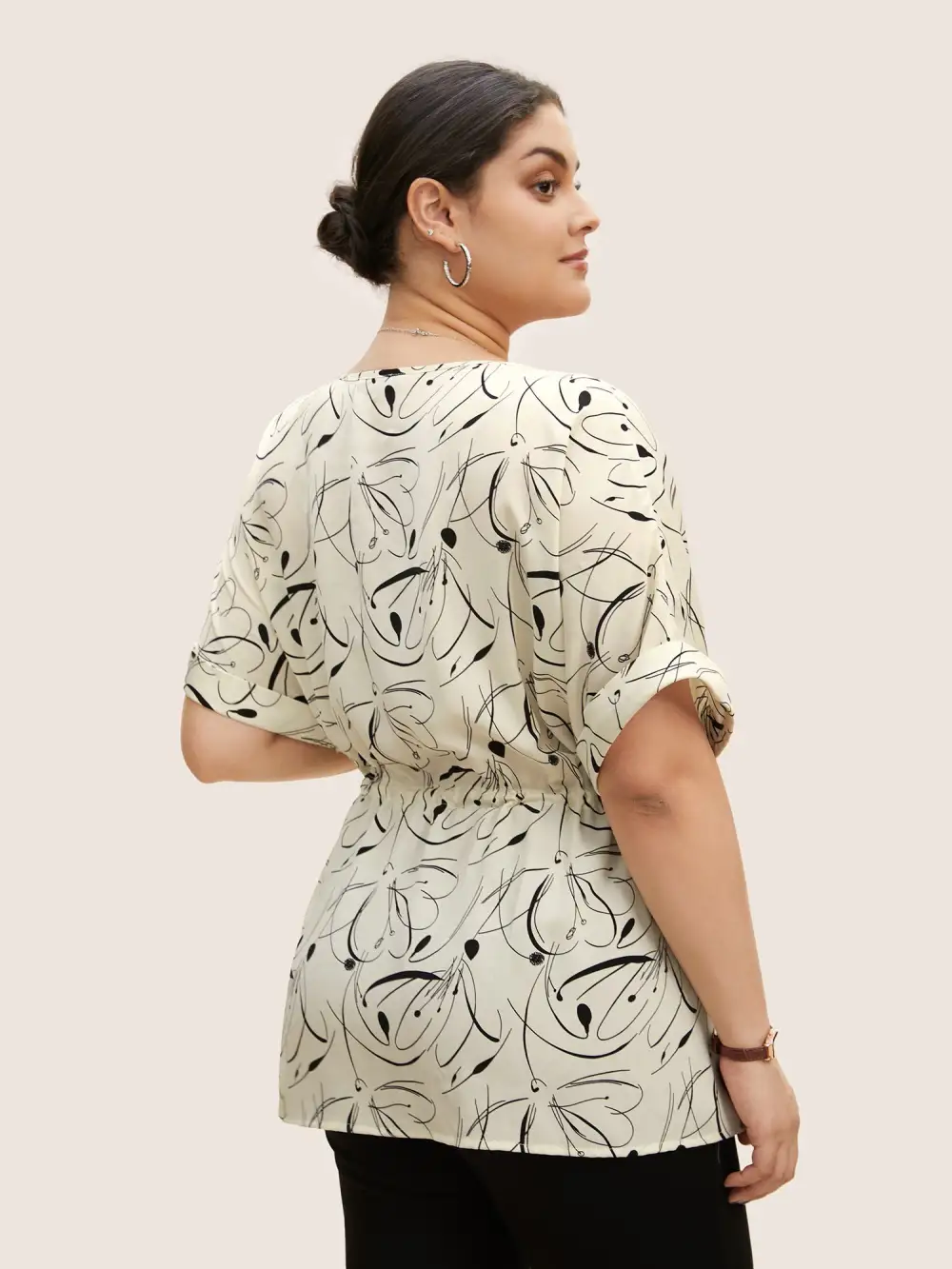 Ditsy Floral Pleated Flutter Sleeve Blouse