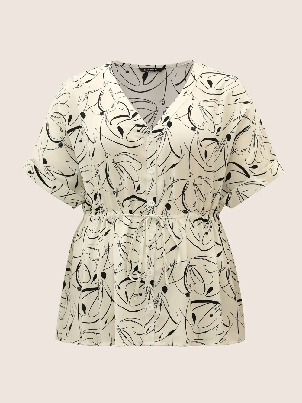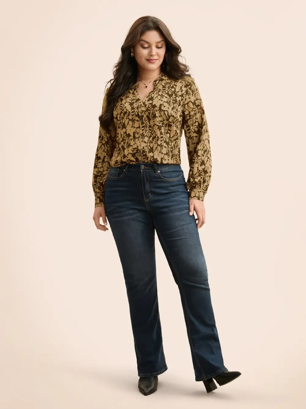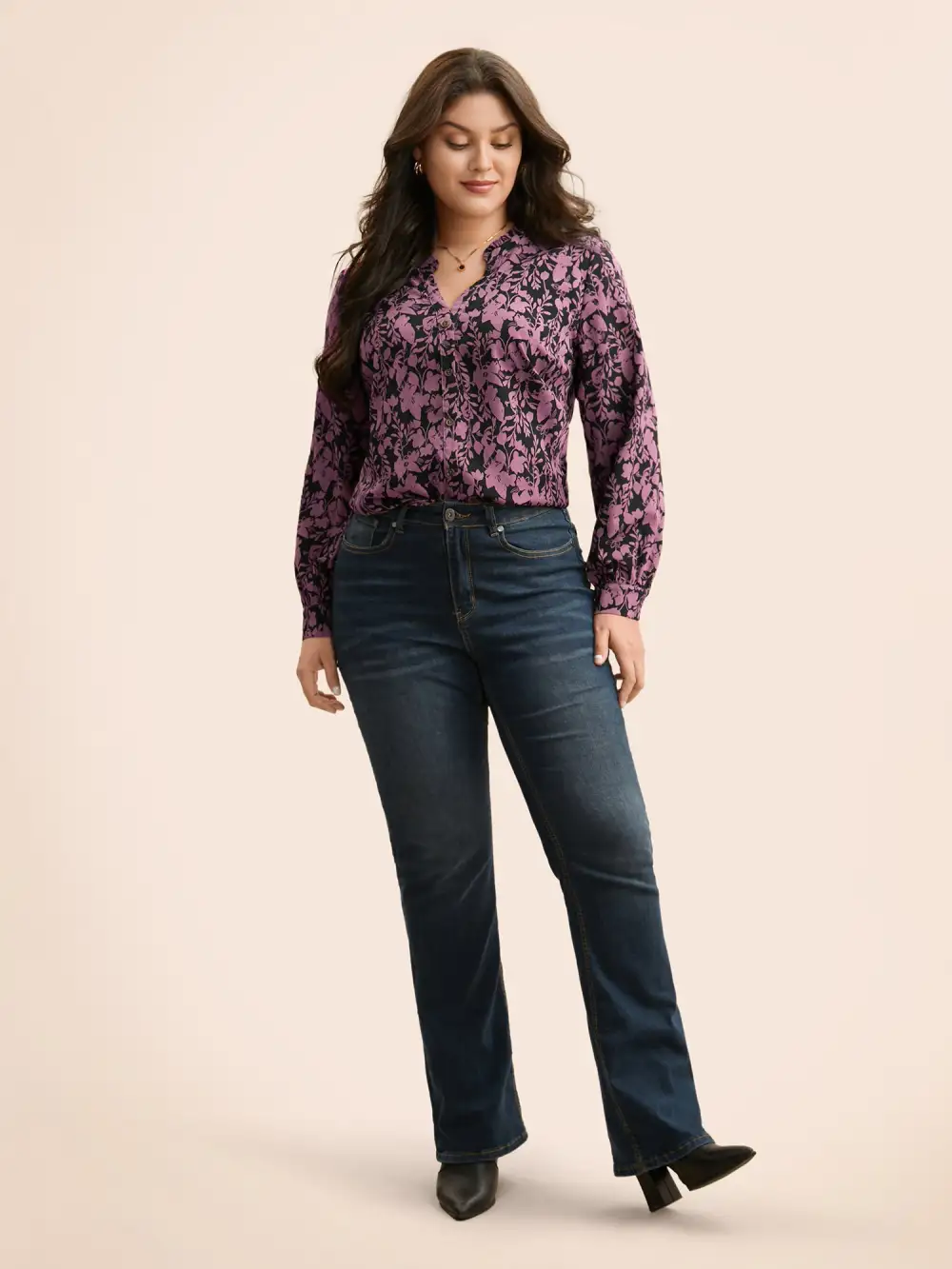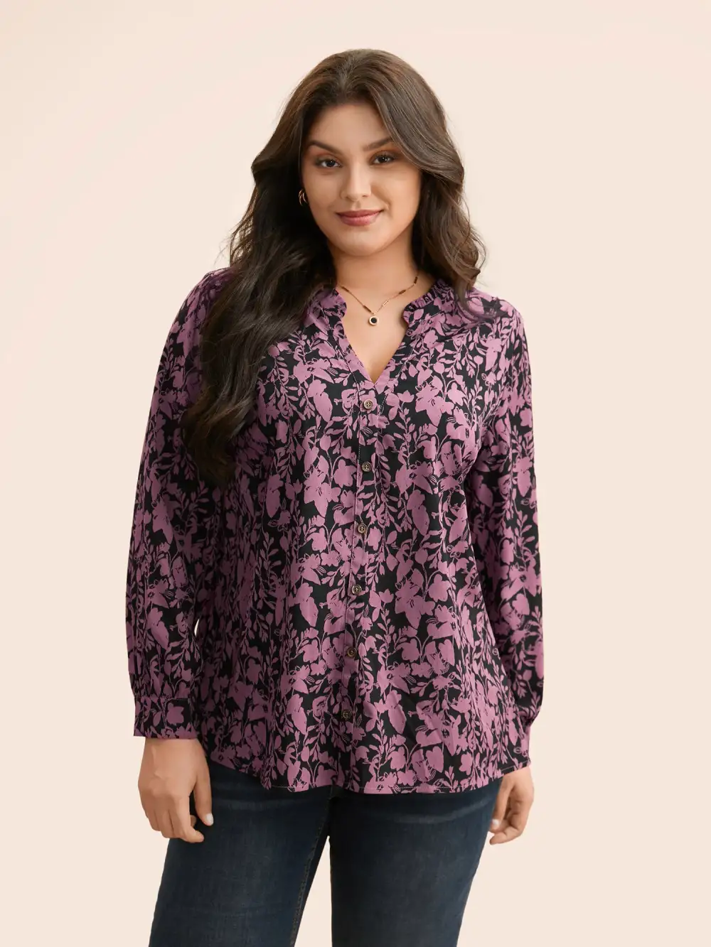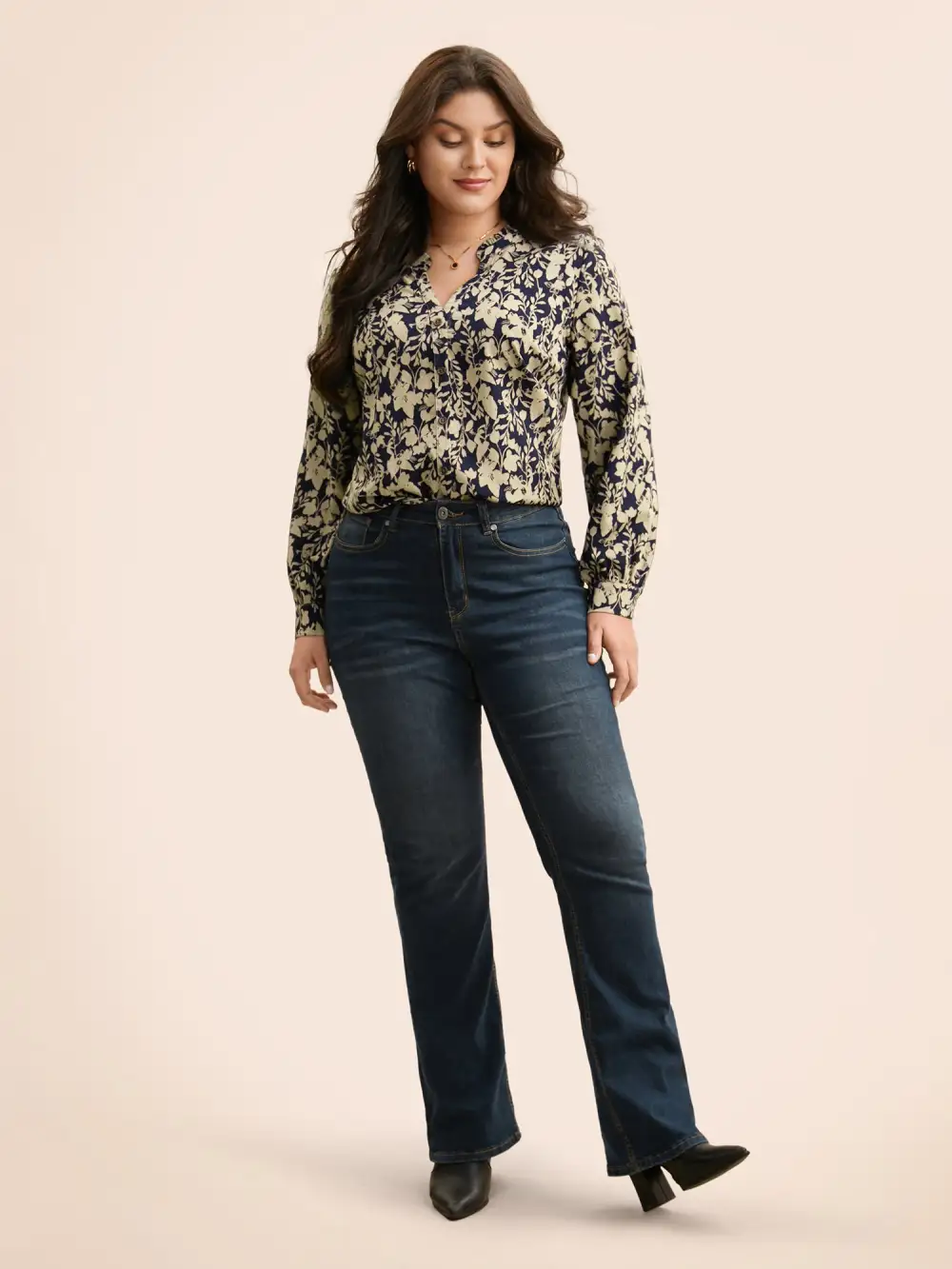 Ditsy Floral Pleated Flutter Sleeve Blouse
