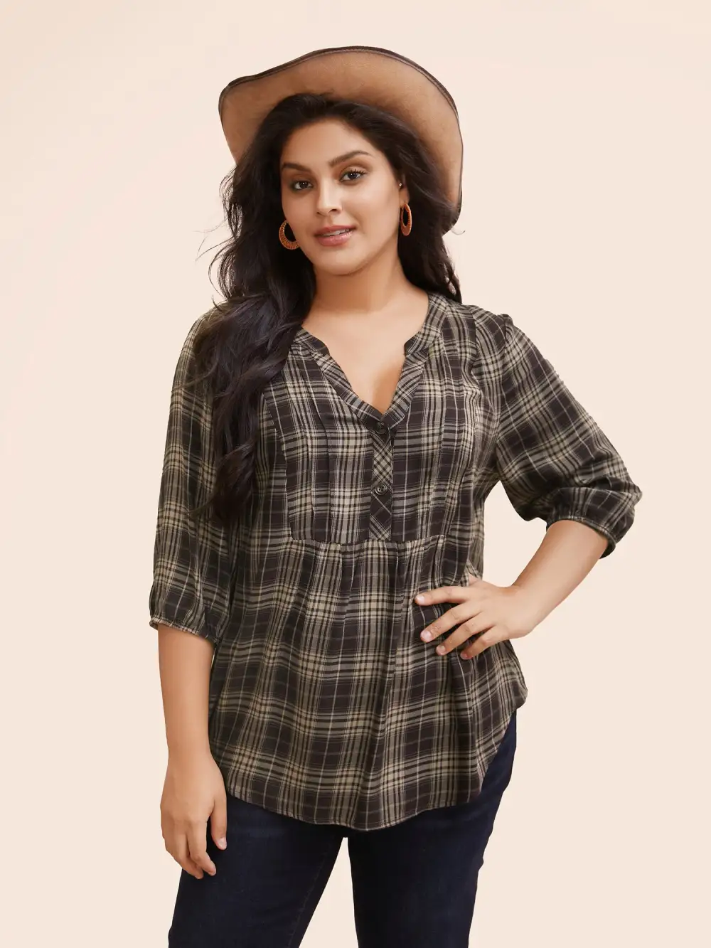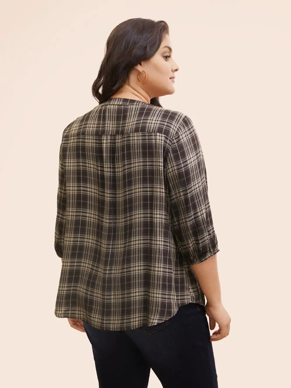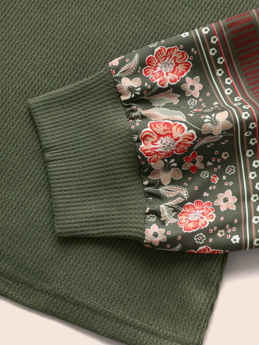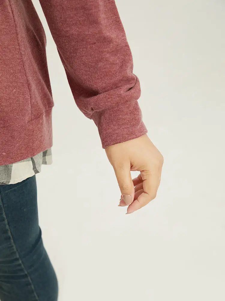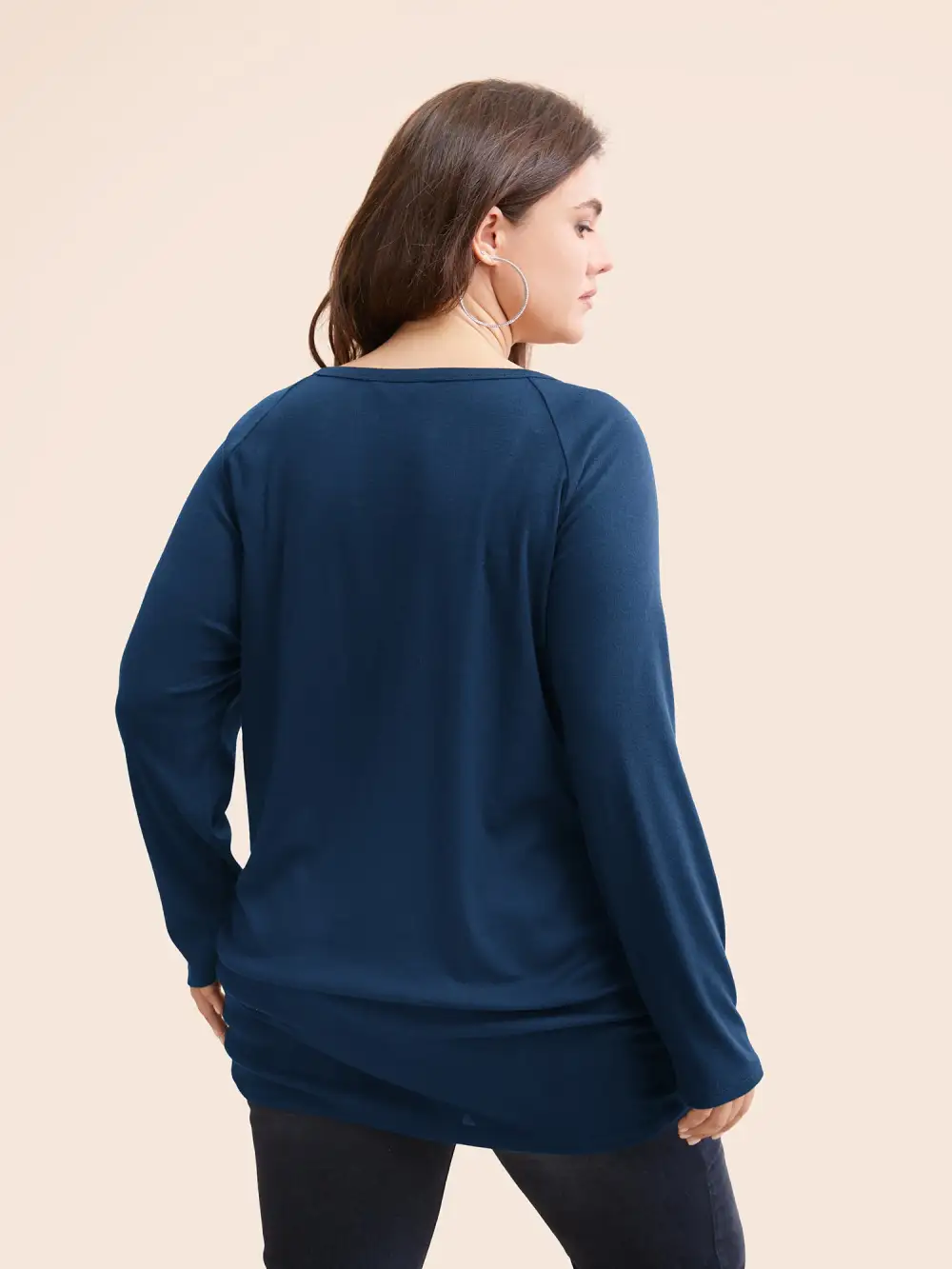 Waffle Knit Plaid Patchwork Raglan Sleeve T-Shirt