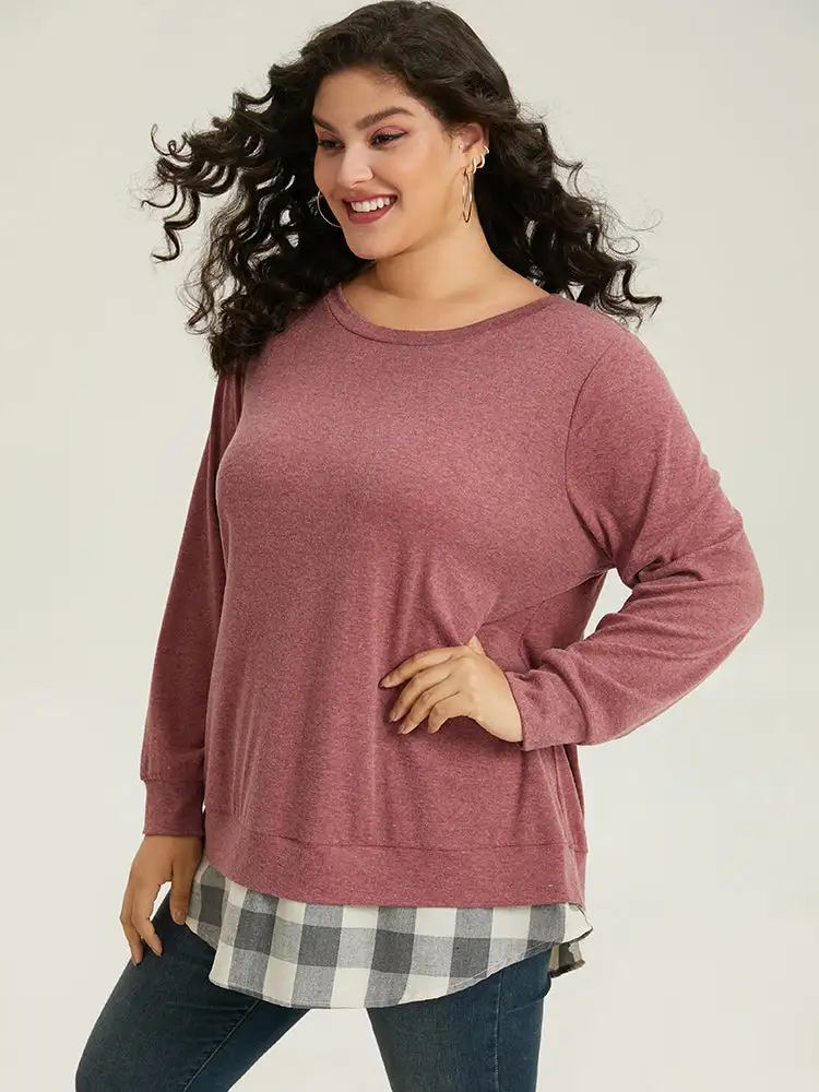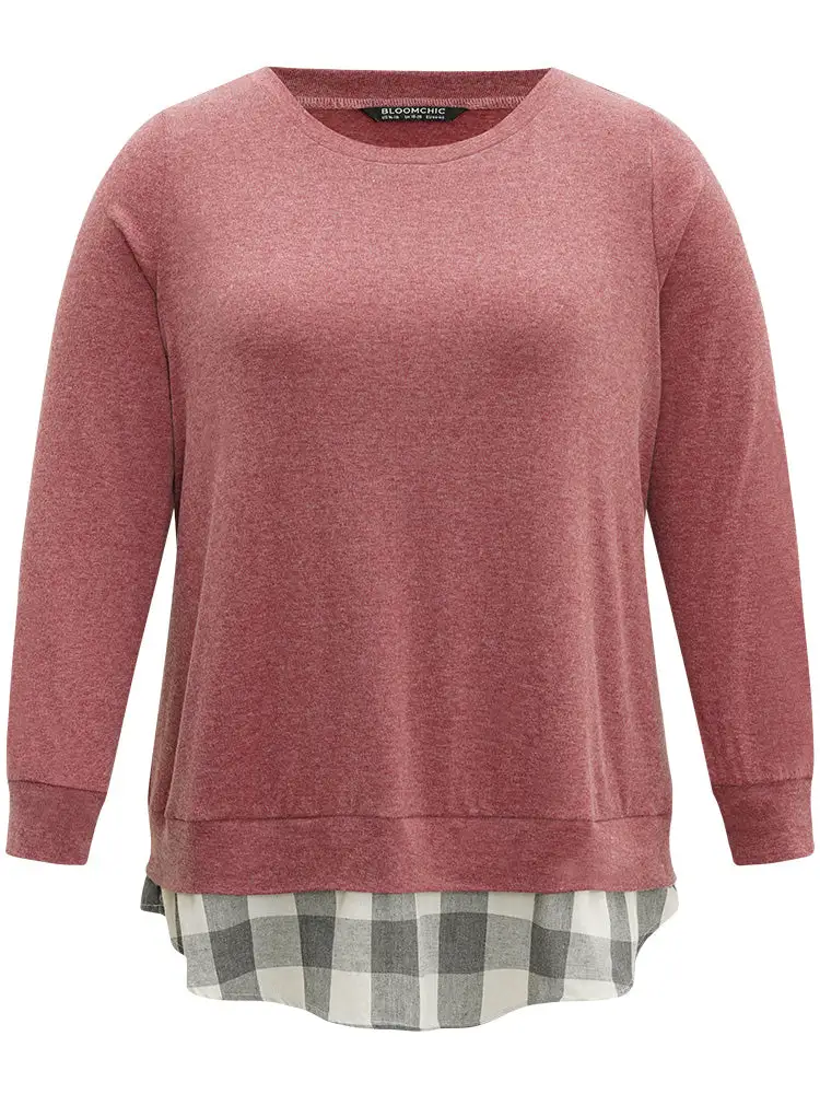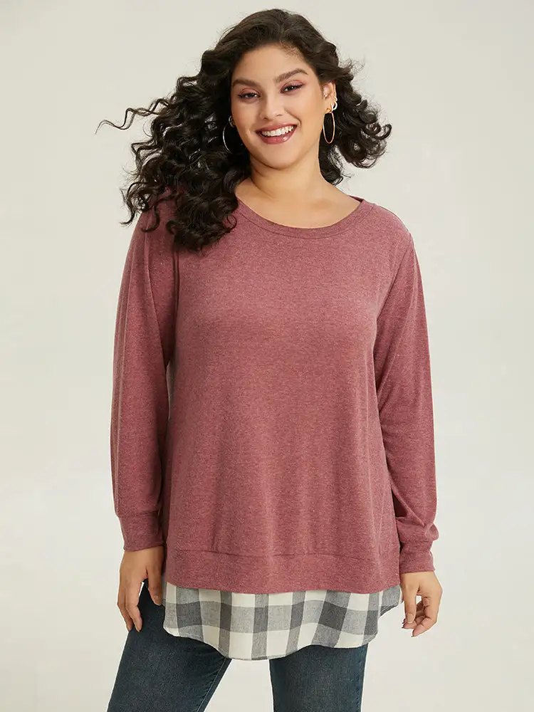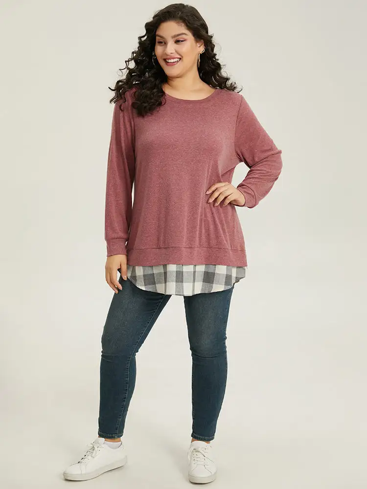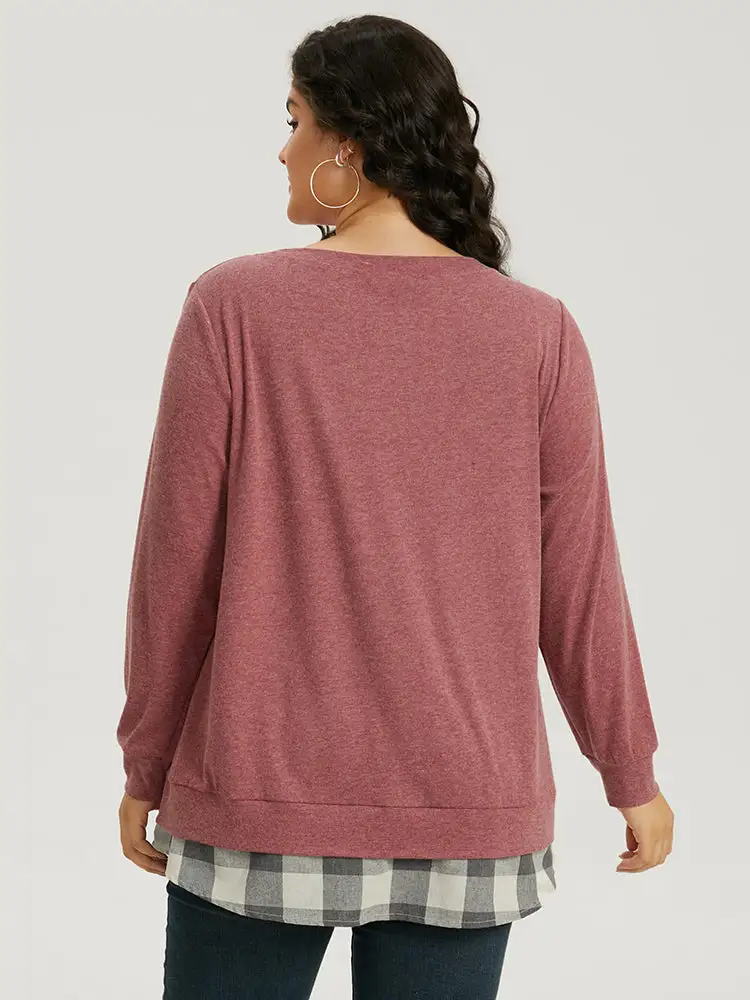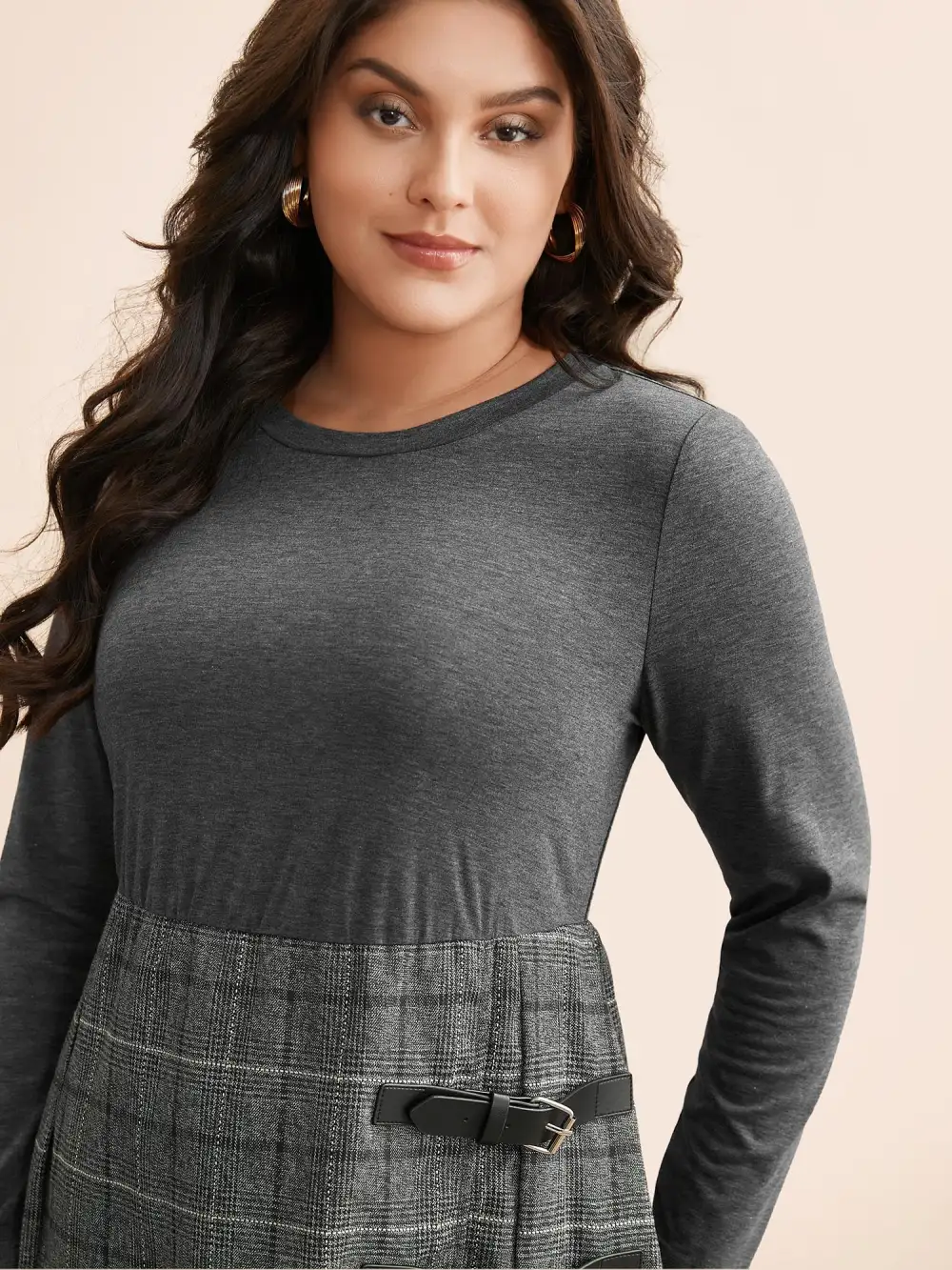 Heather Plaid Patchwork Crew Neck T-Shirt