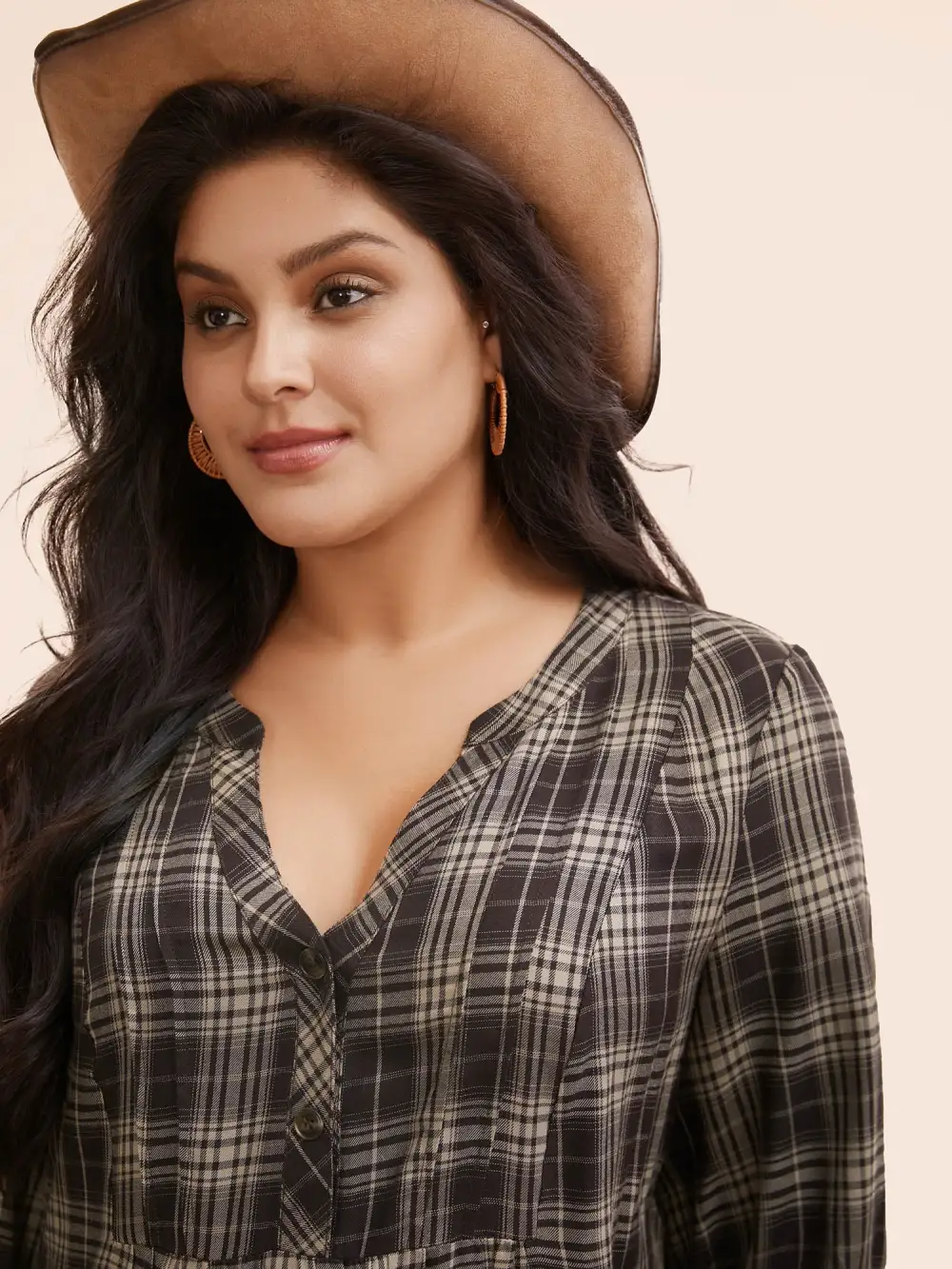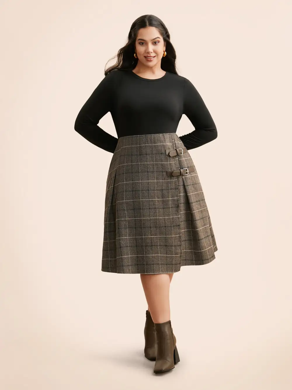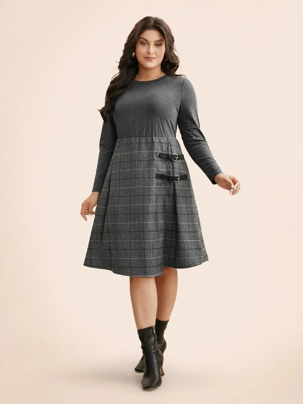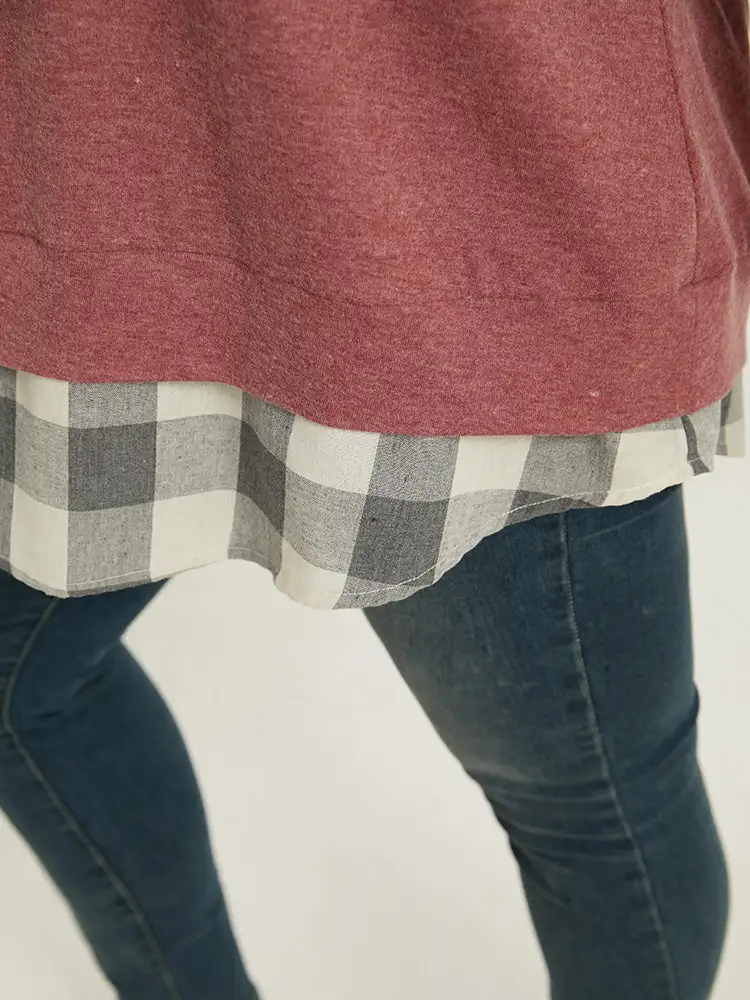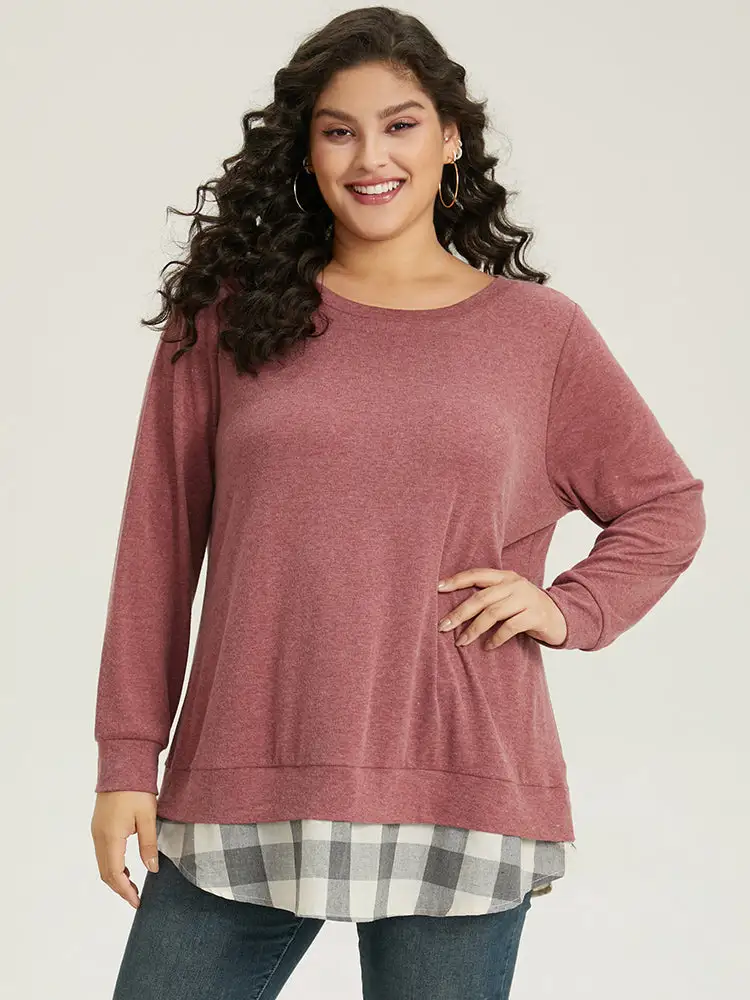 Heather Plaid Patchwork Crew Neck T-Shirt