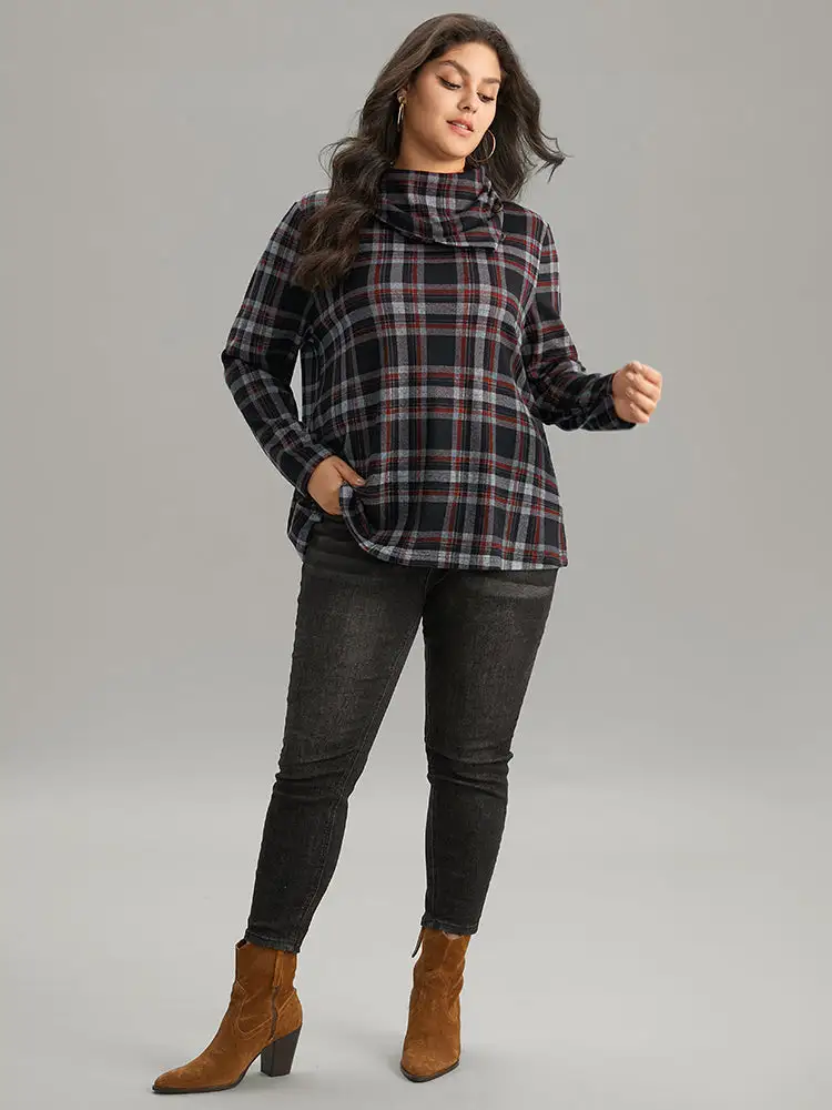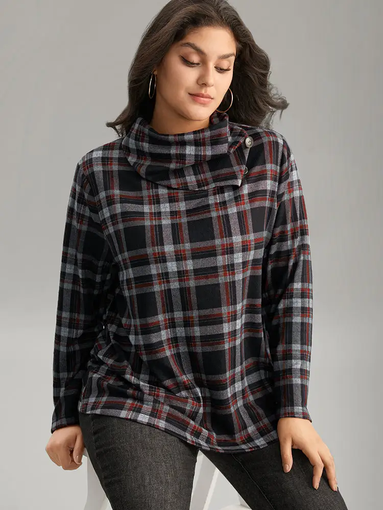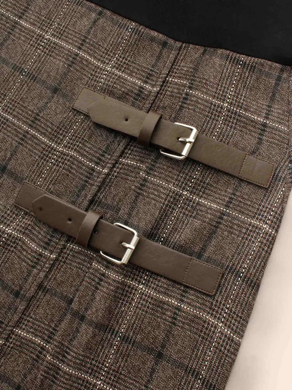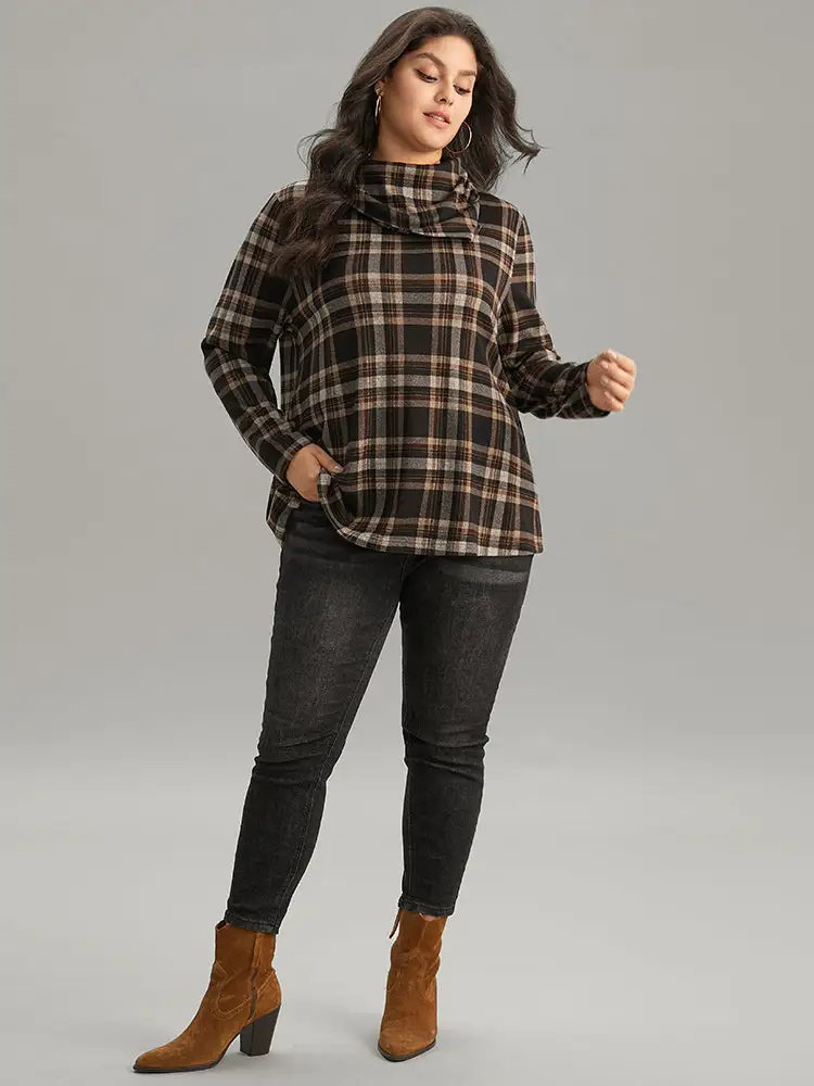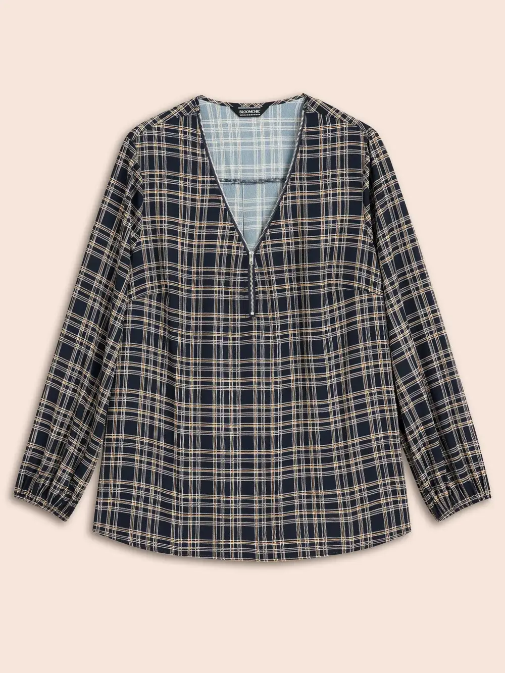 Heather Plaid Patchwork Crew Neck T-Shirt