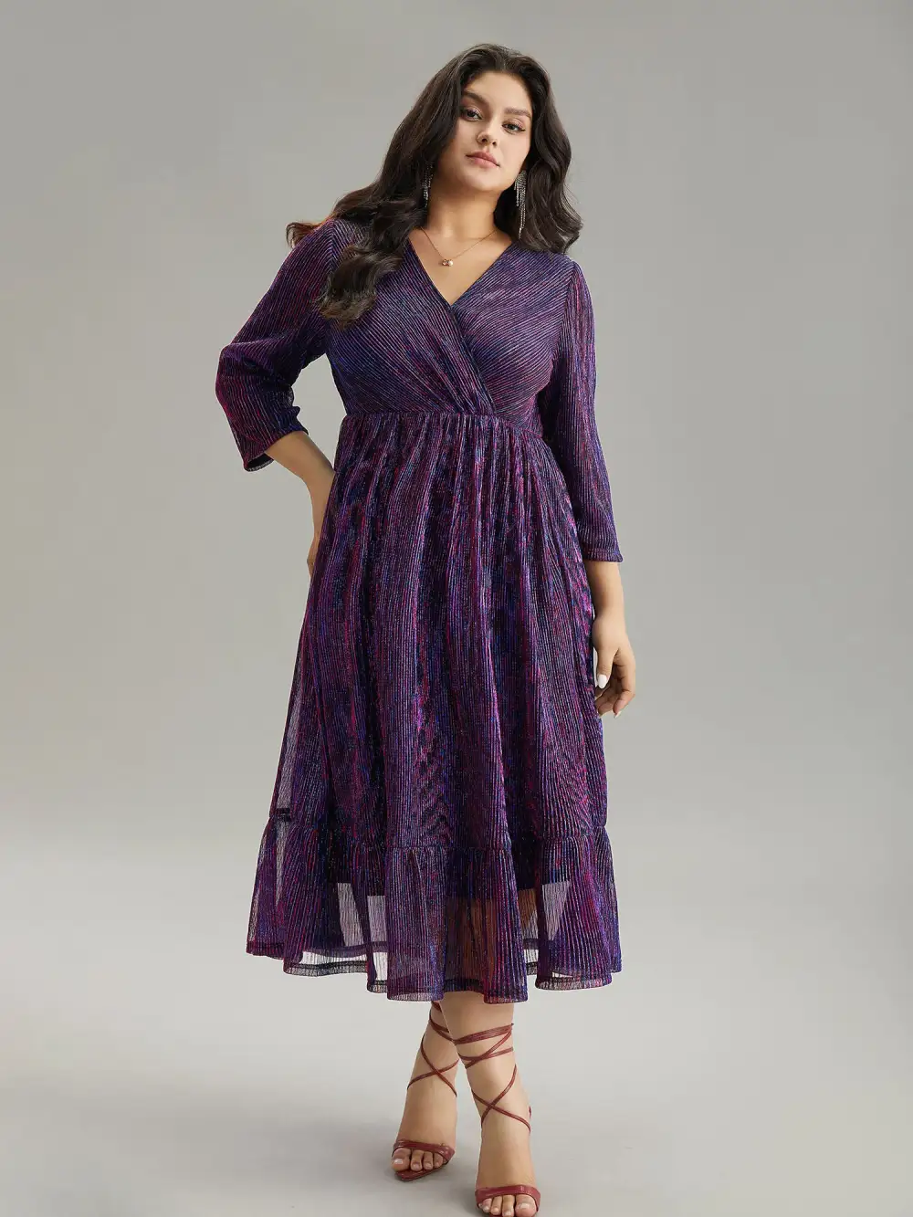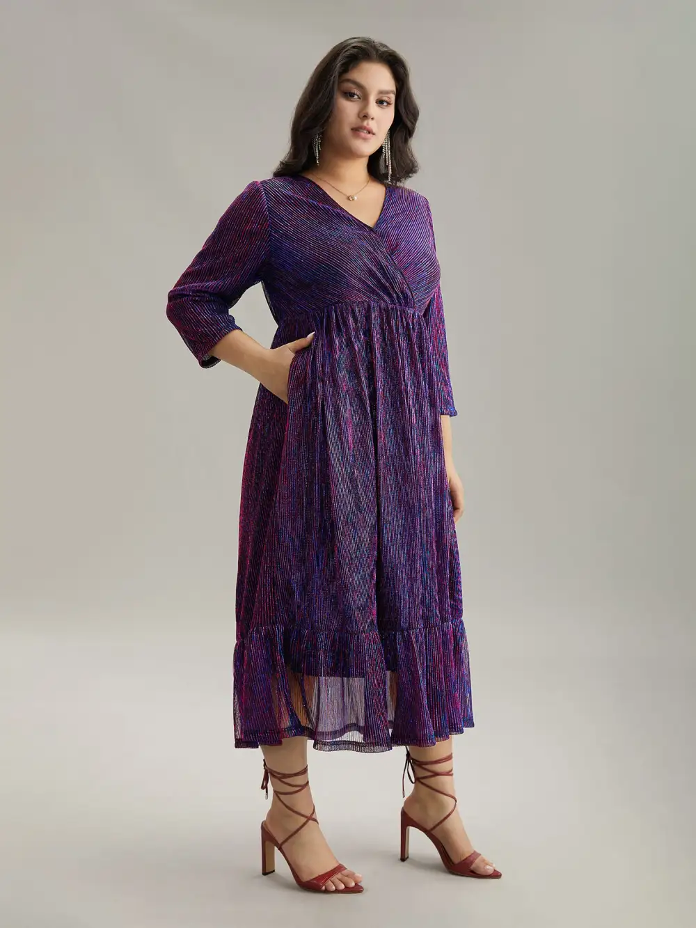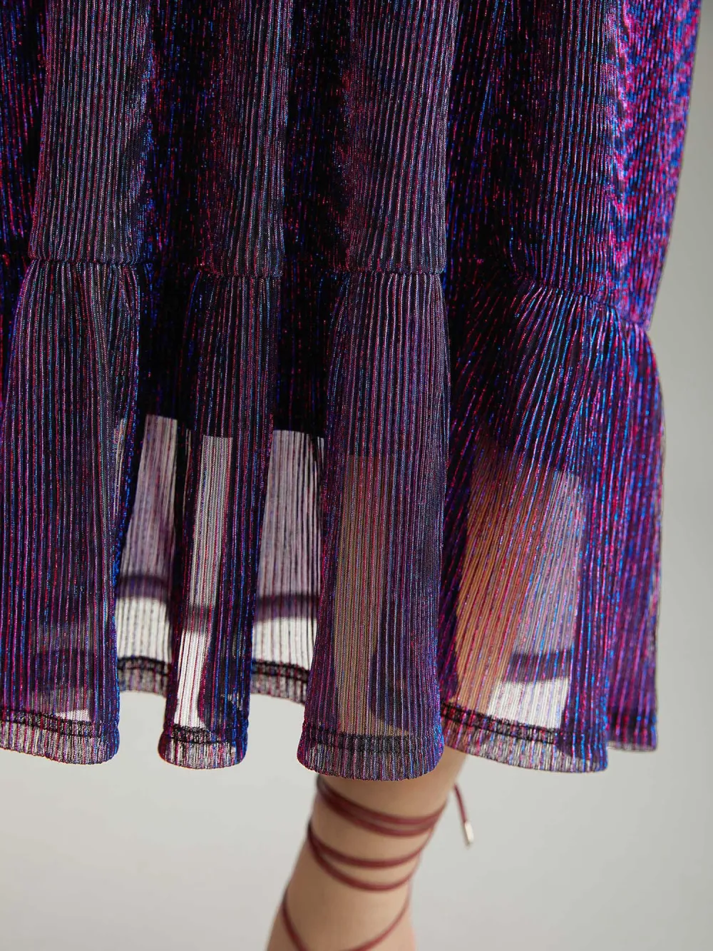 Luxe Mesh Pleated Elastic Waist Wrap Dress