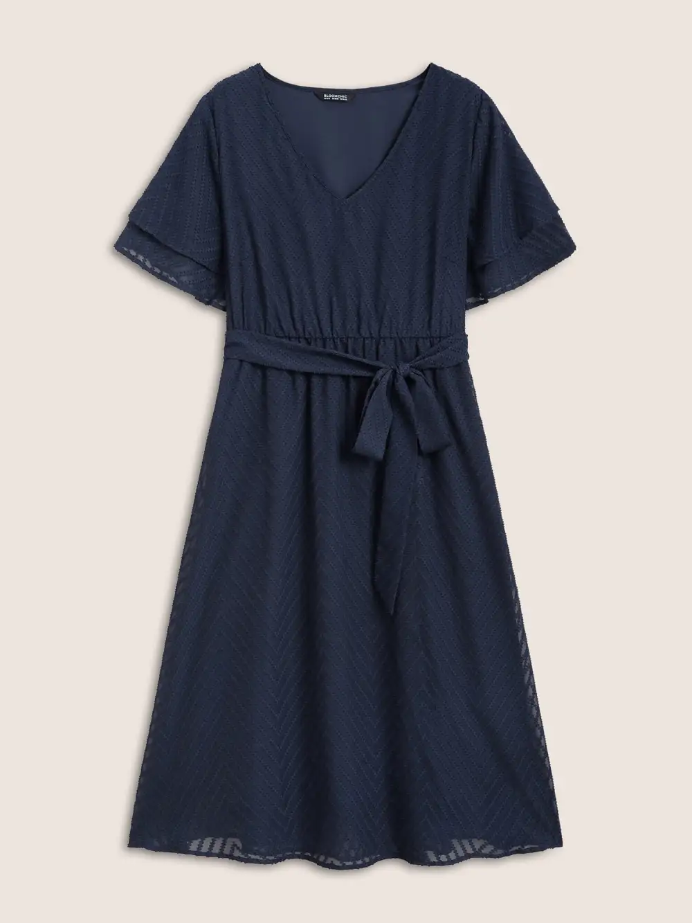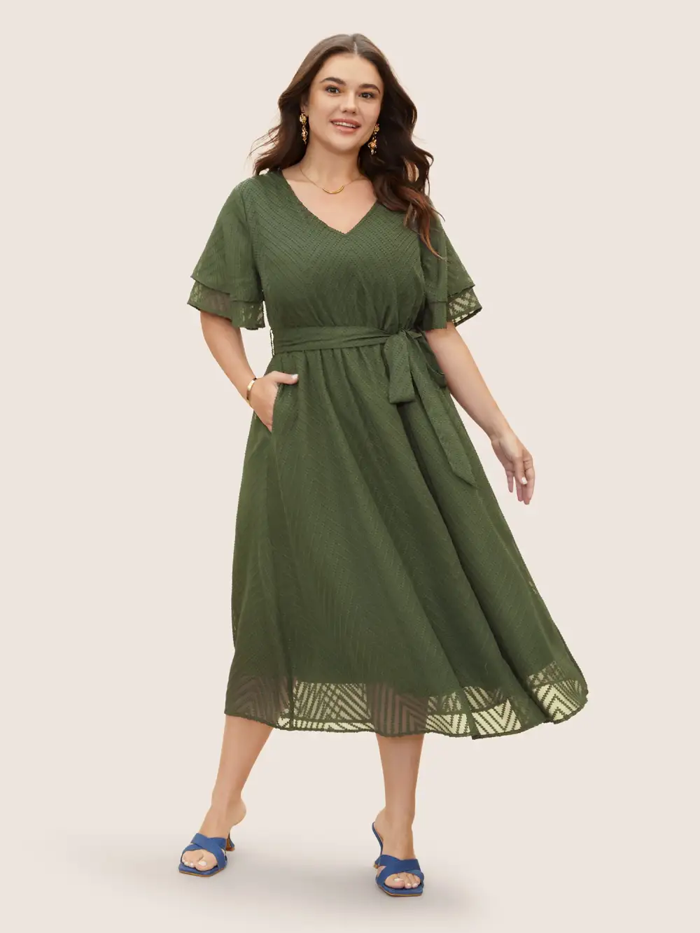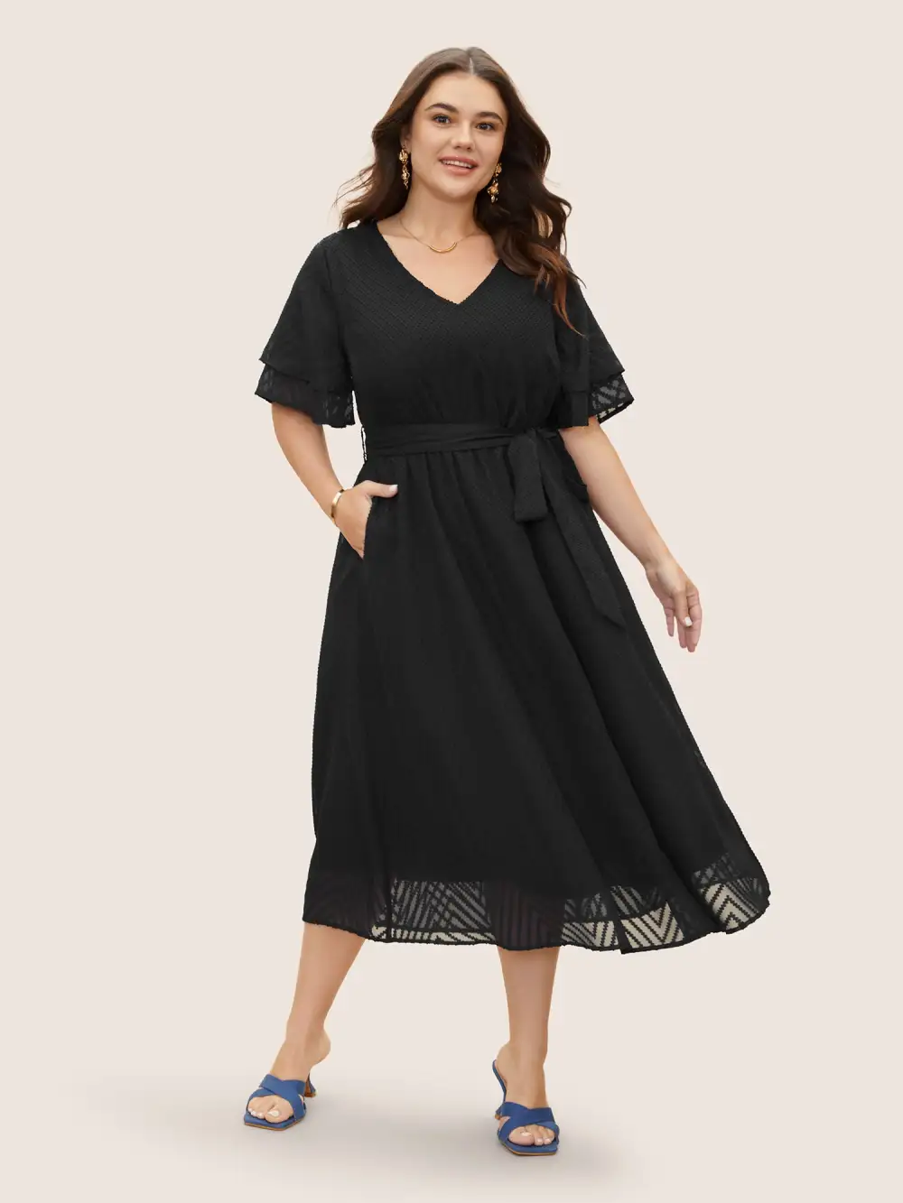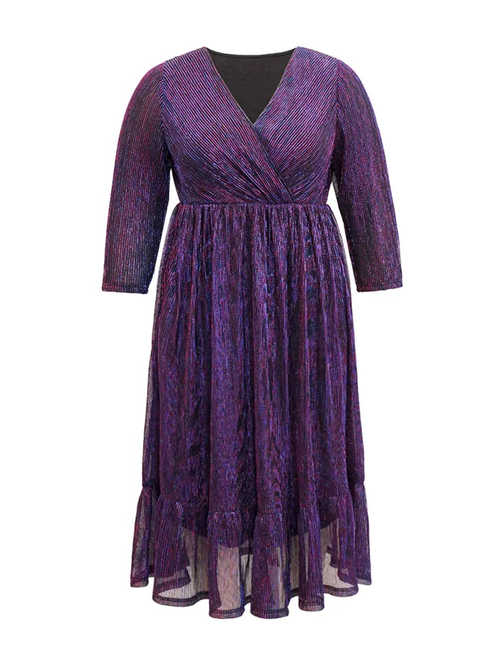 Luxe Mesh Pleated Elastic Waist Wrap Dress