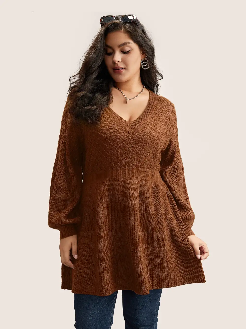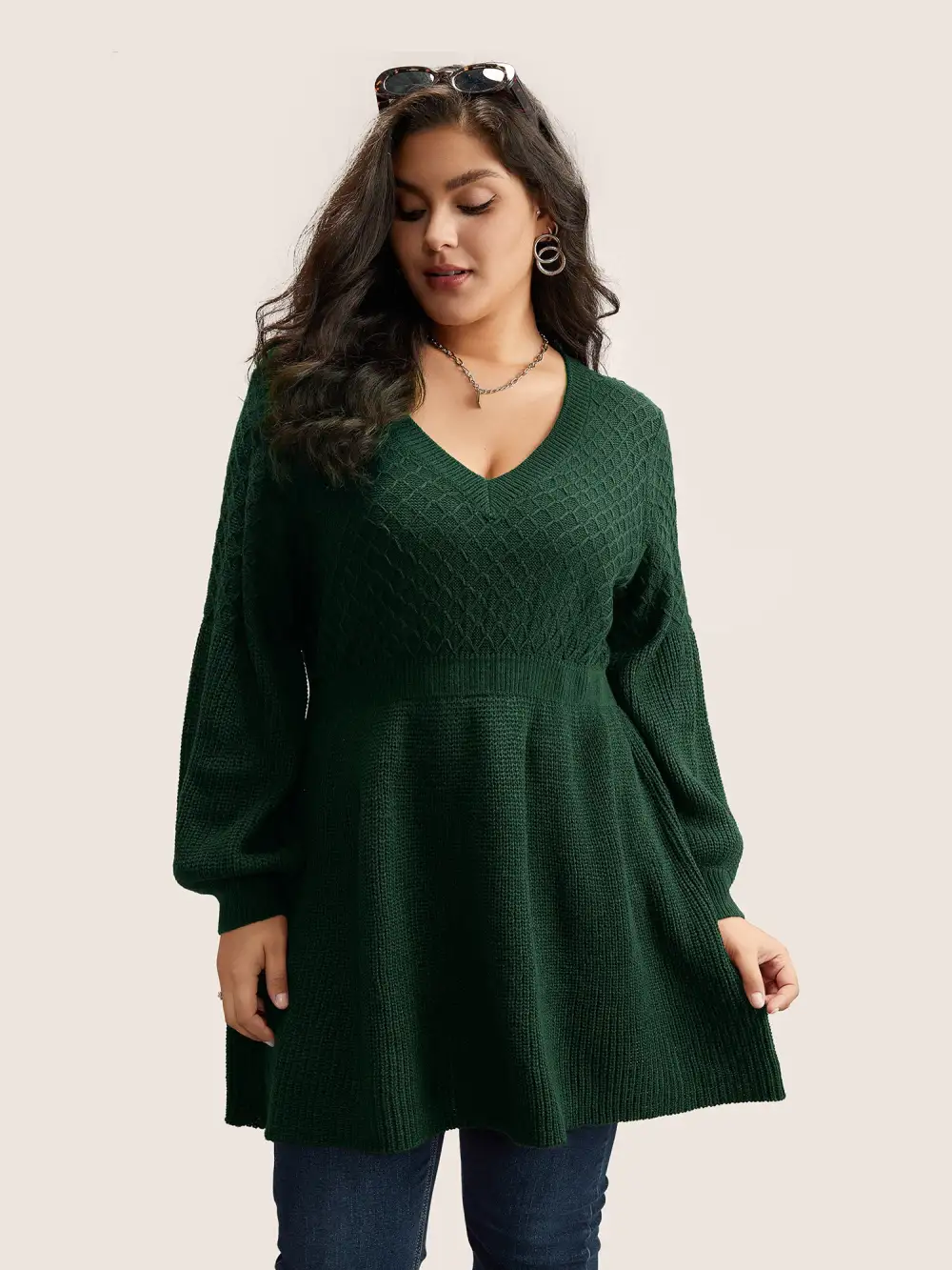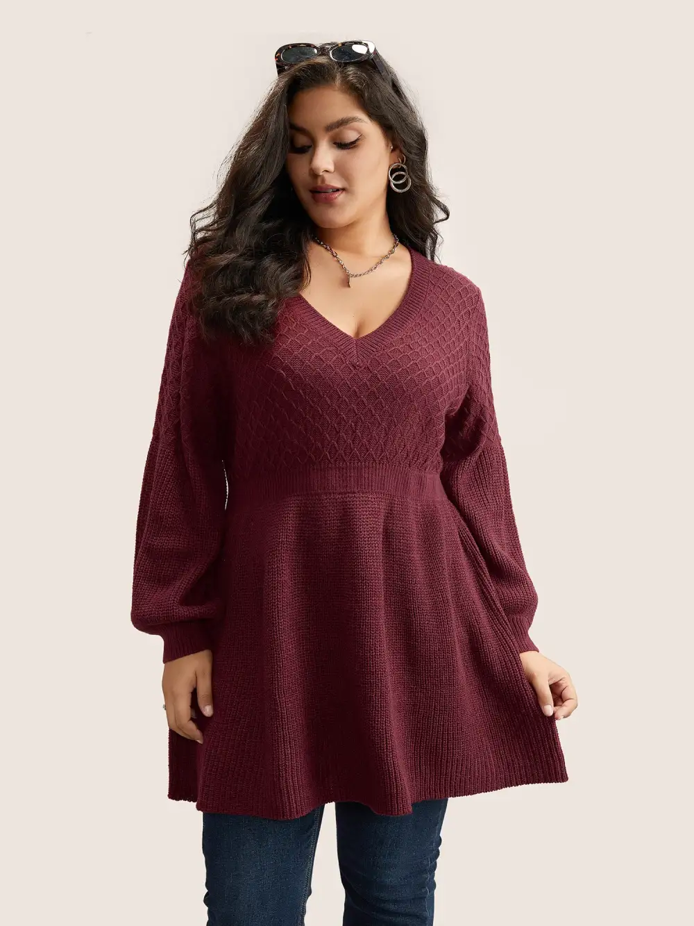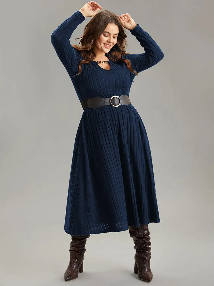 Cable Knit Fit-And-Flare Midi Sweater Dress