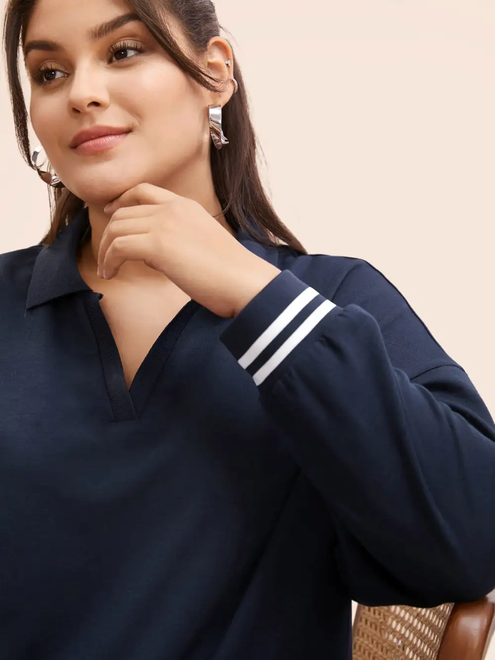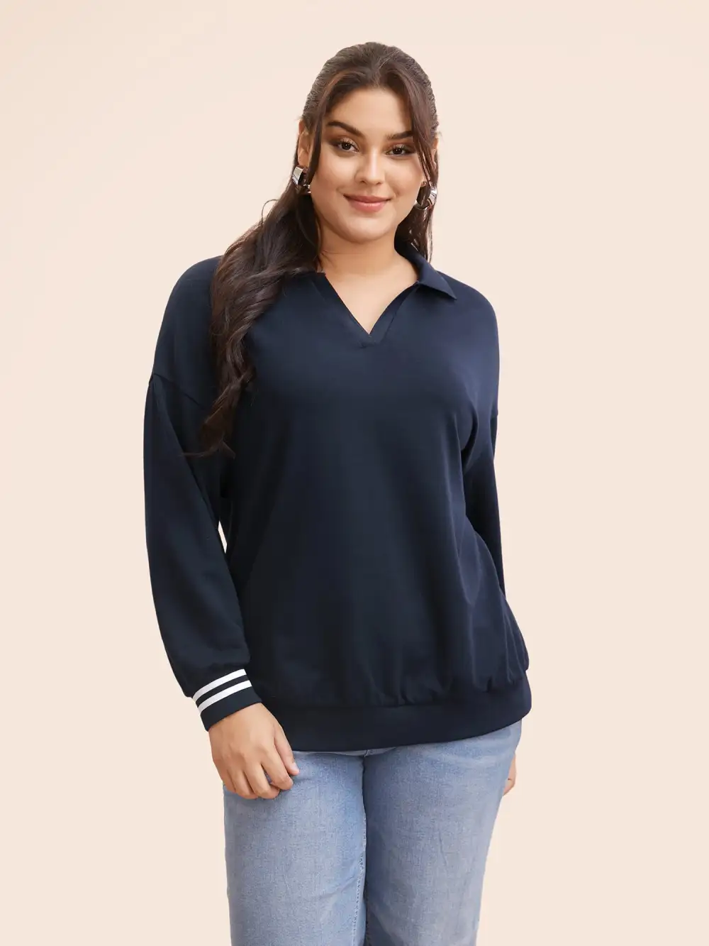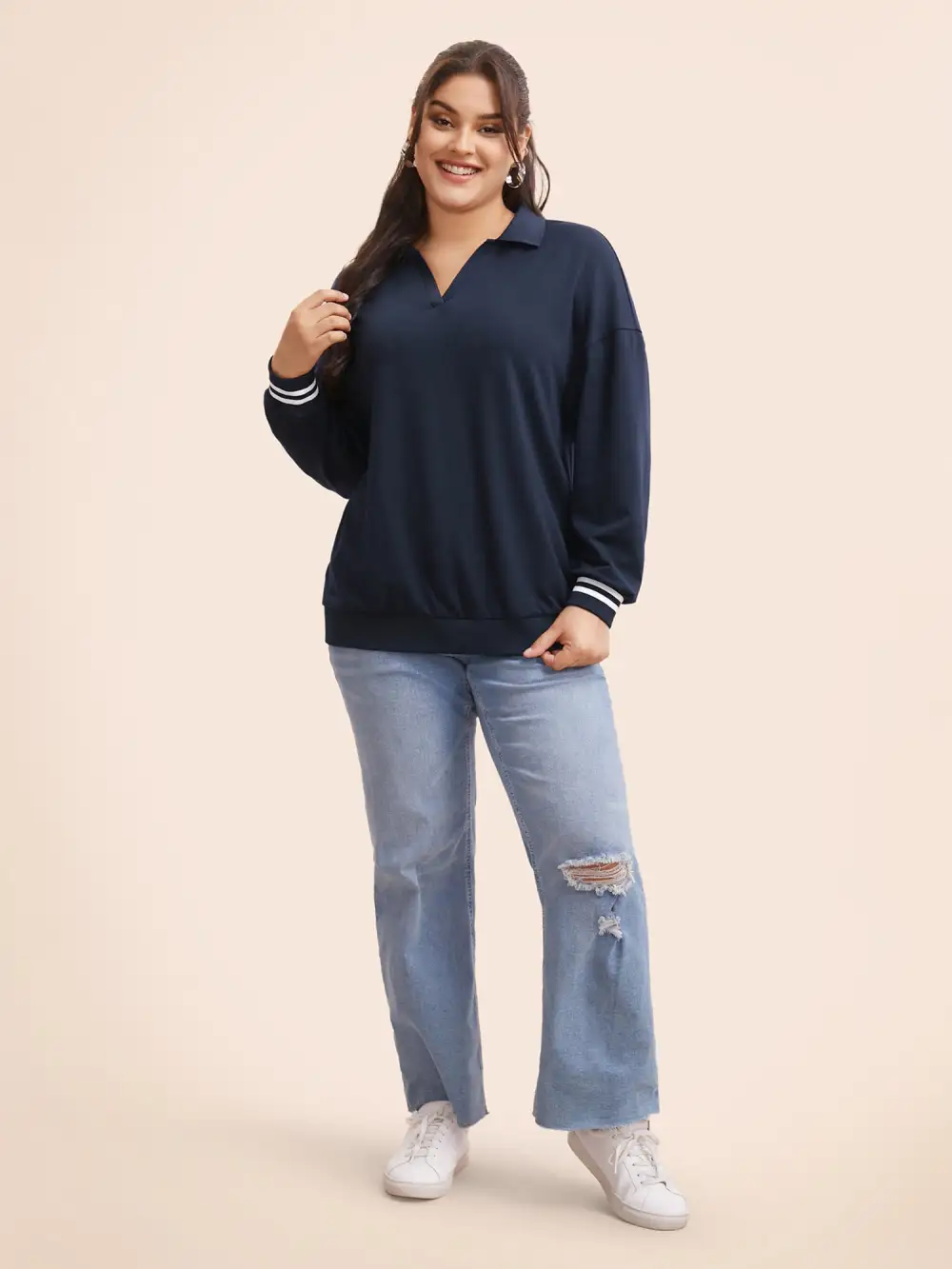 Polo Neck Contrast Trim Drop Shoulder Sweatshirt