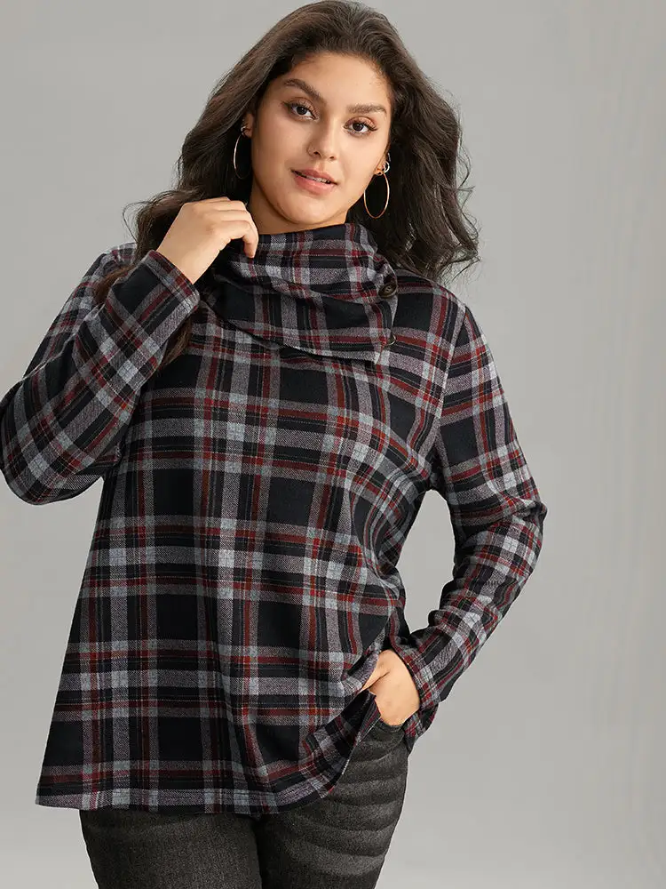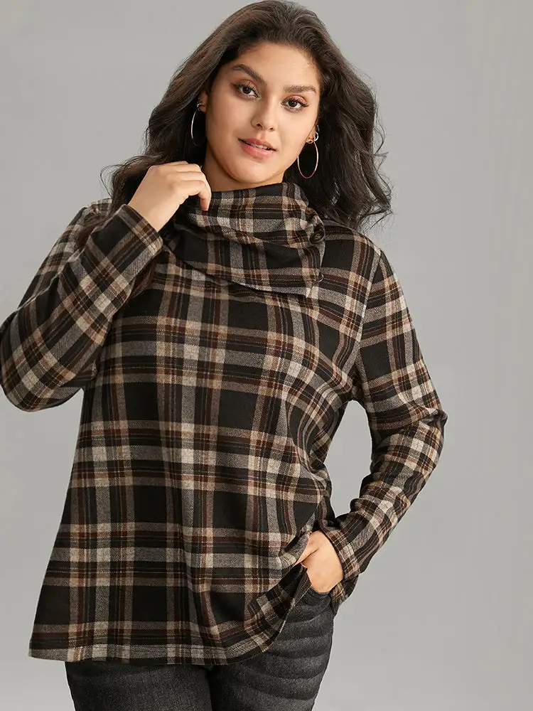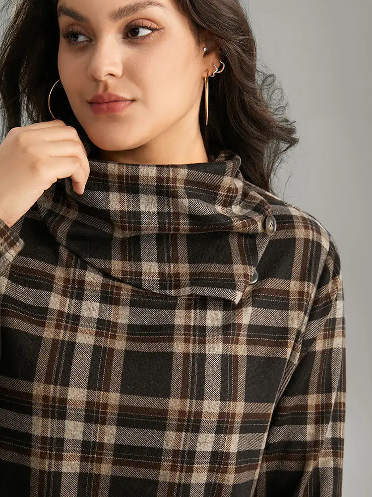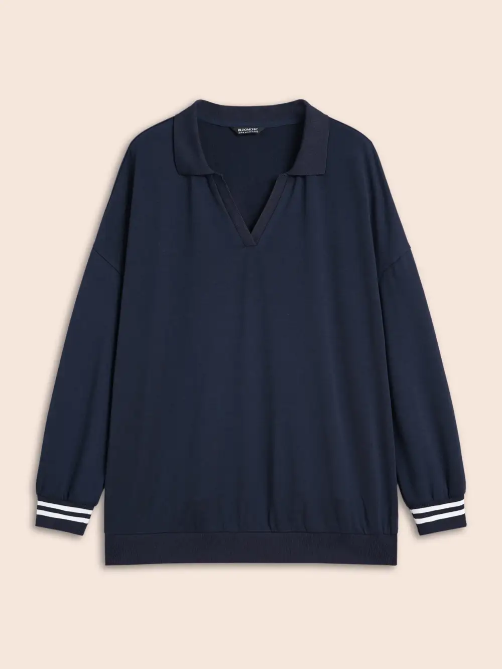 Polo Neck Contrast Trim Drop Shoulder Sweatshirt