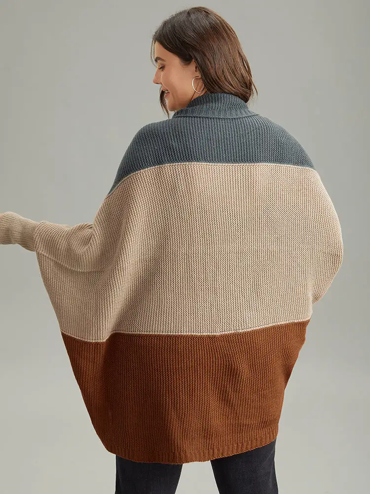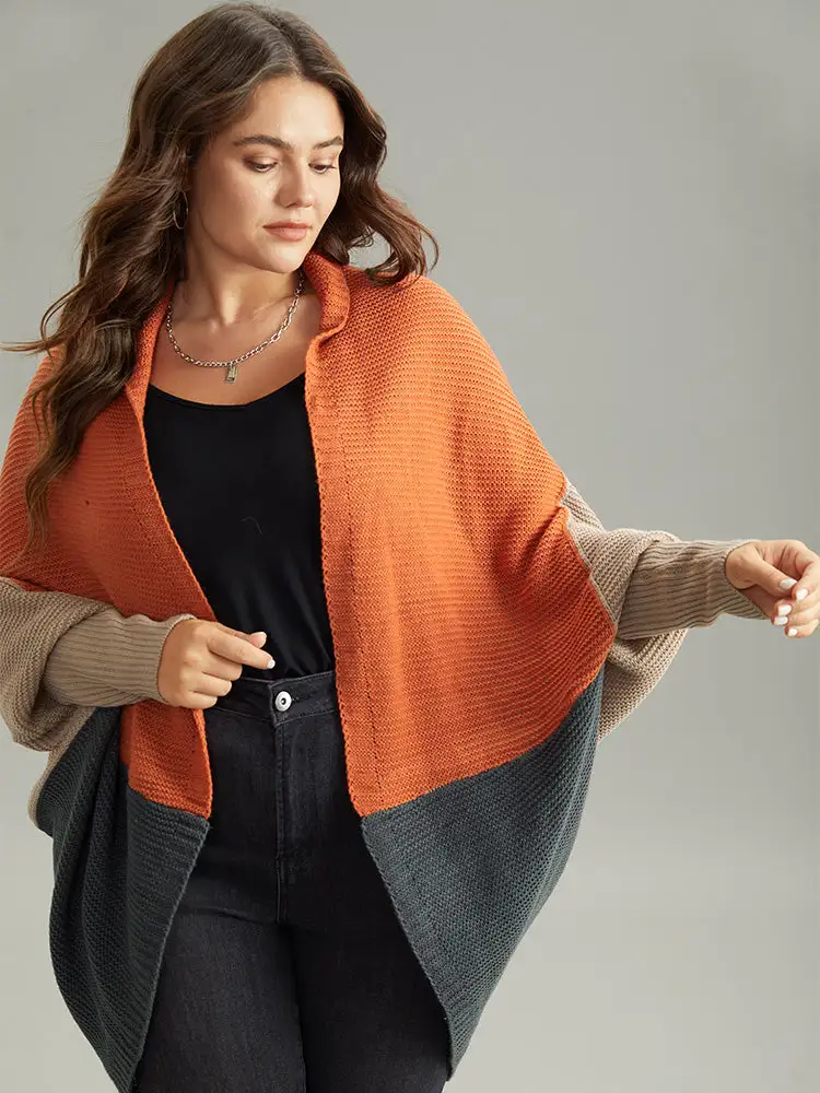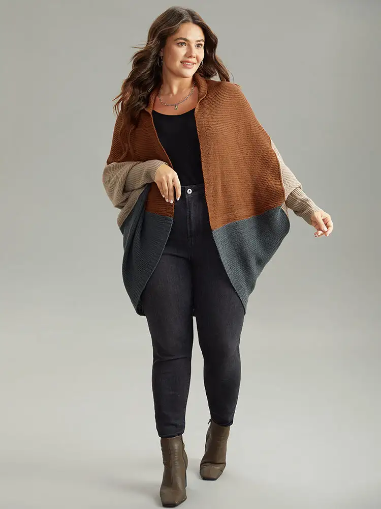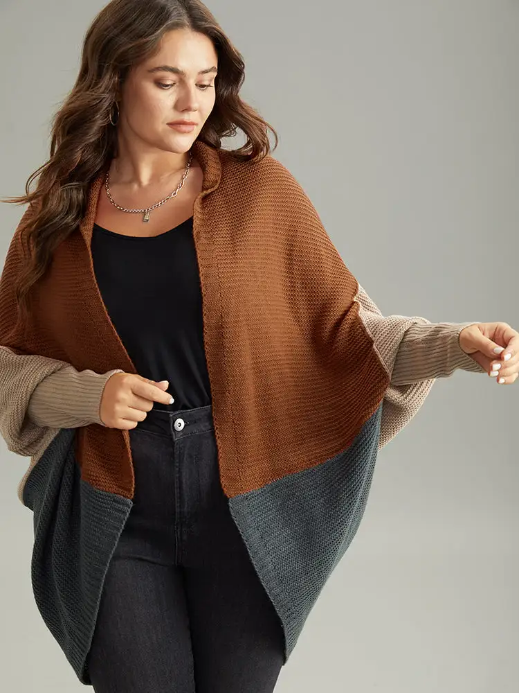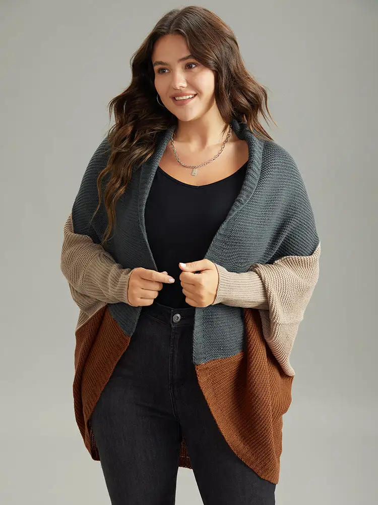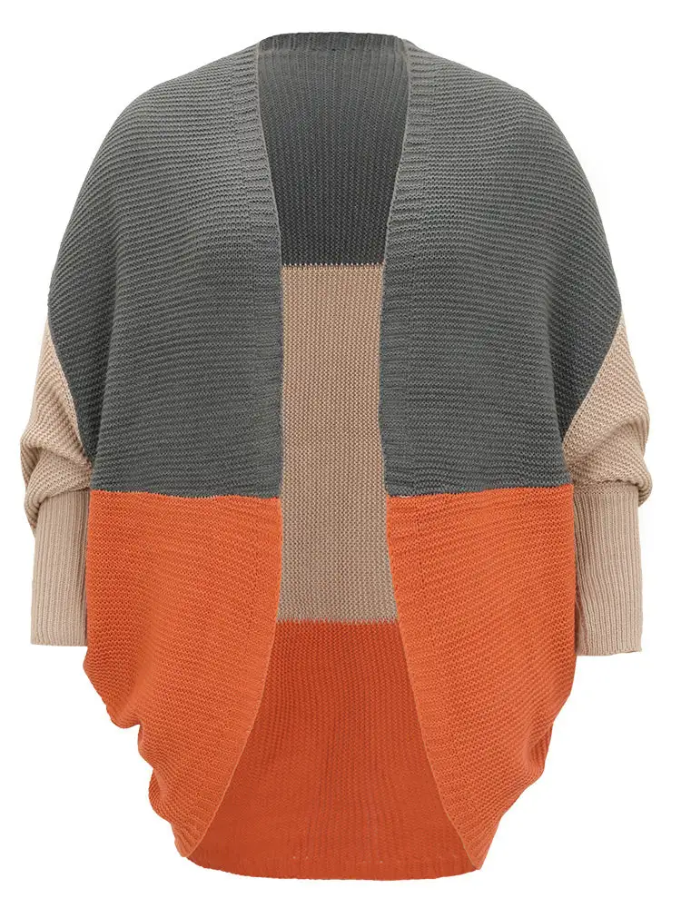 Colorblock Batwing Sleeve Patchwork Cardigan
