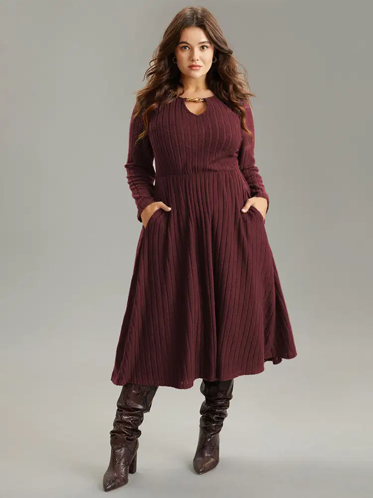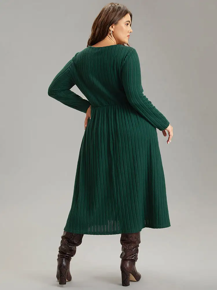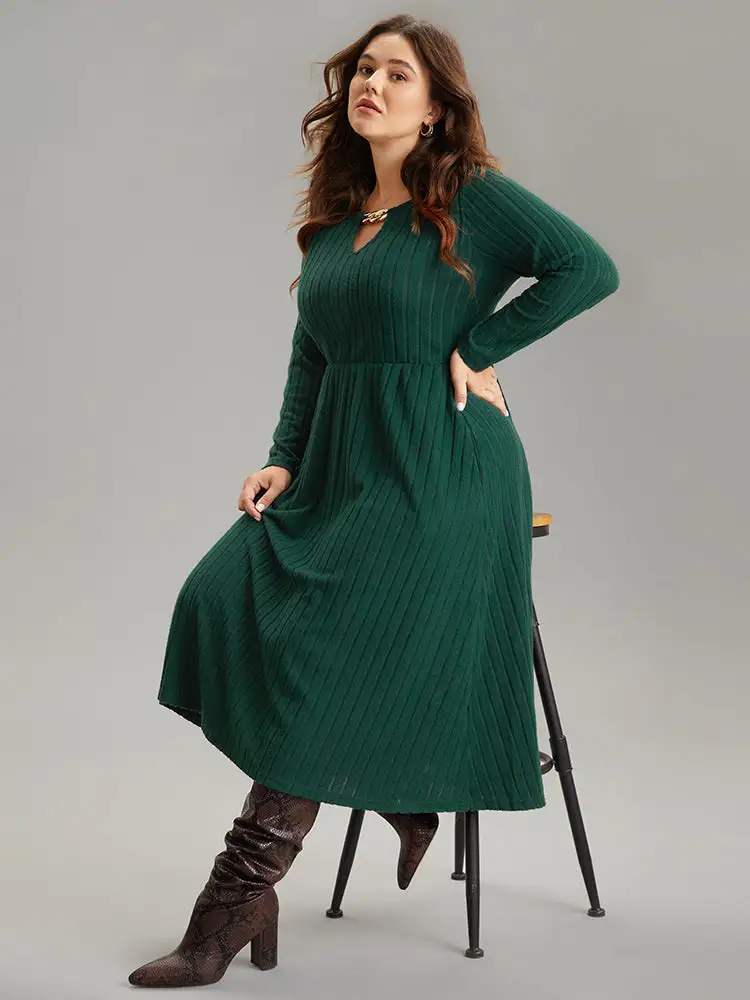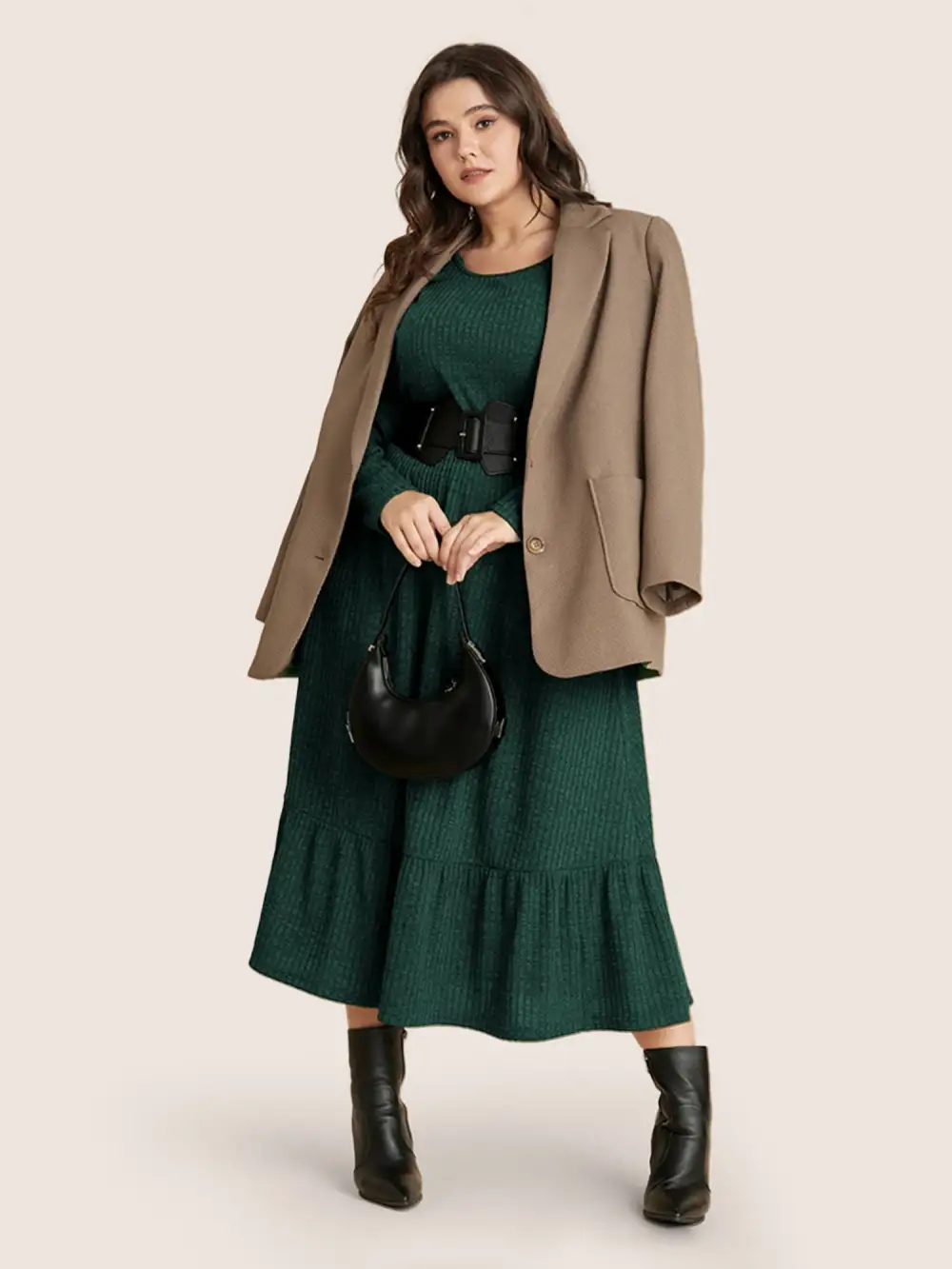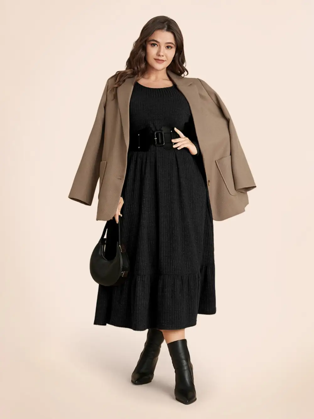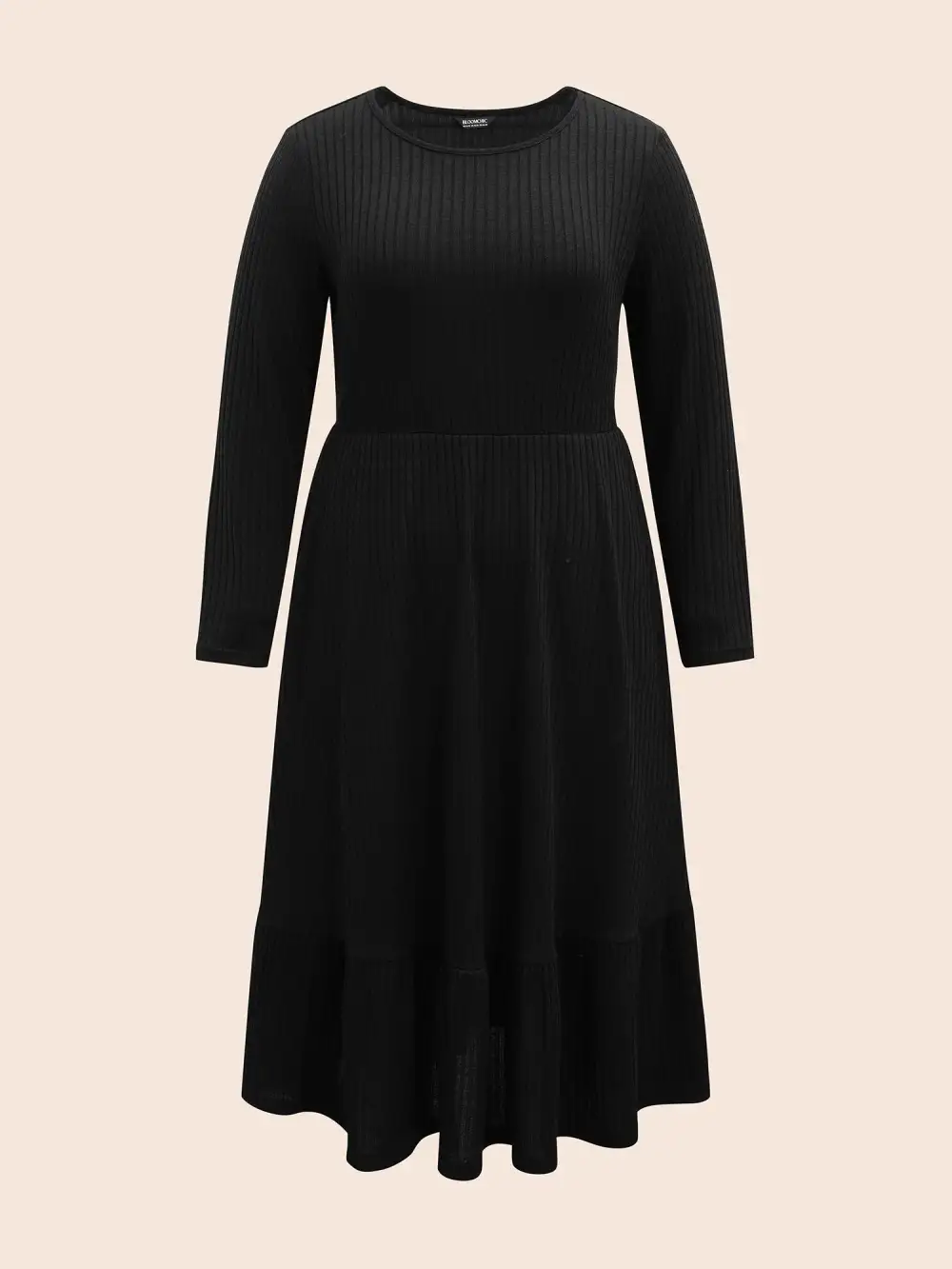Solid Pocket Rib Knit Ruffle Hem Dress Without Belt