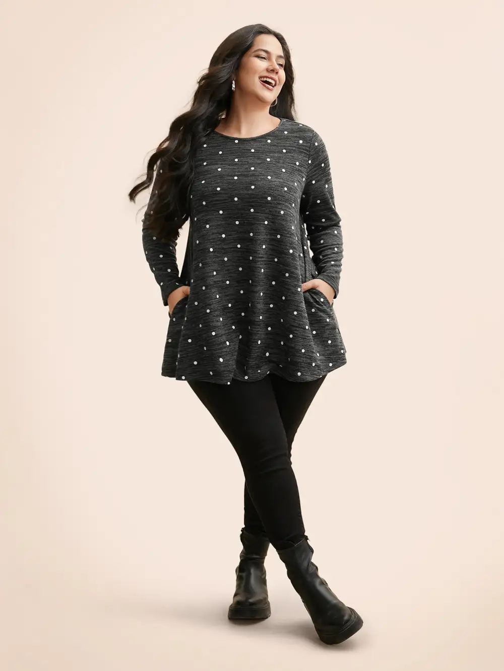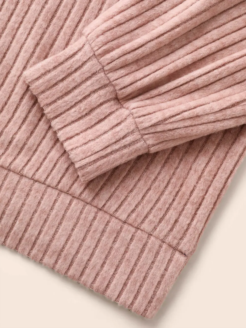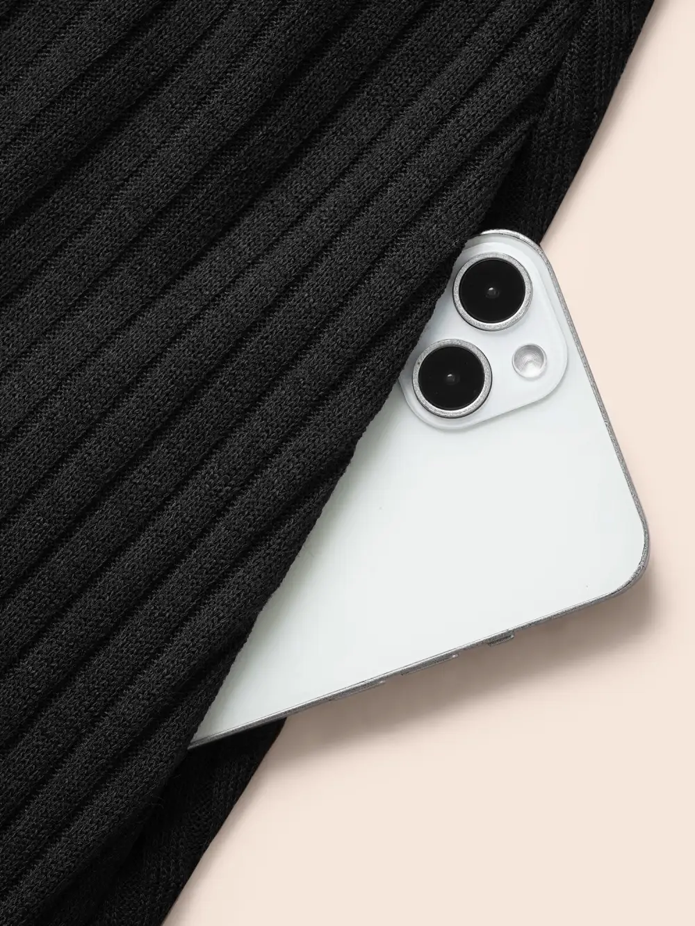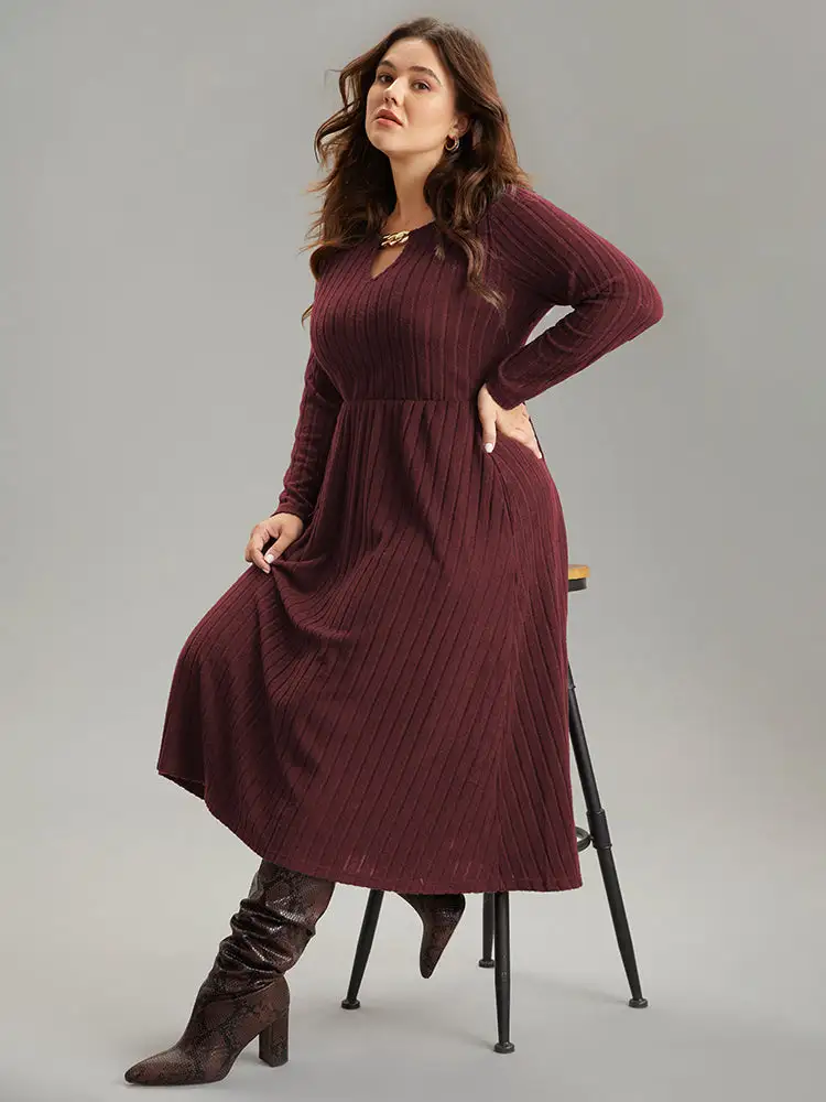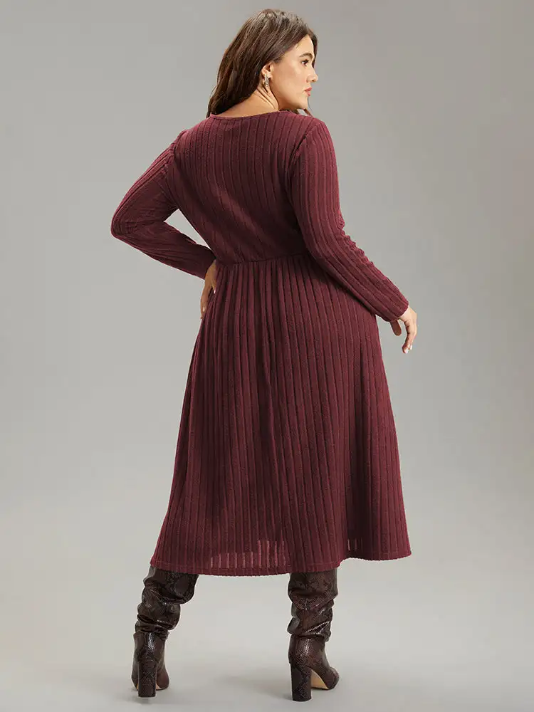 Solid Pocket Rib Knit Ruffle Hem Dress Without Belt