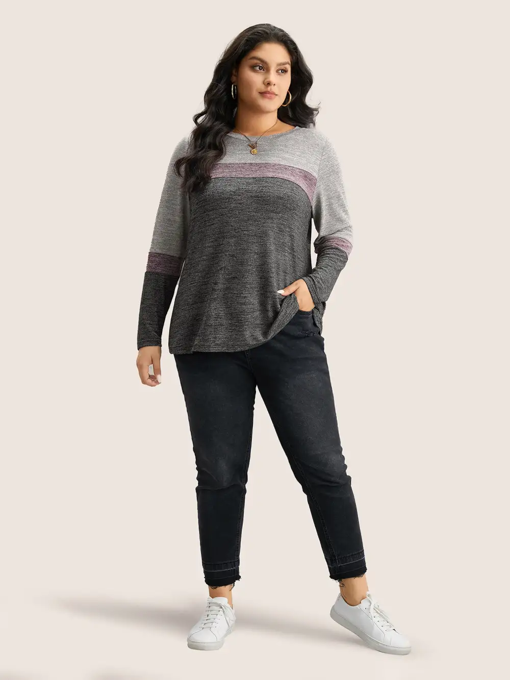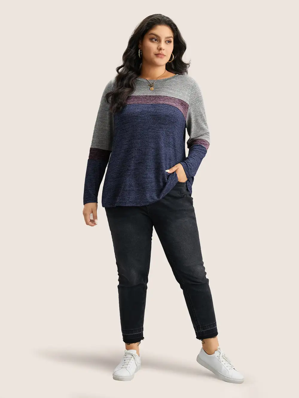 Heather Colorblock Contrast Crew Neck T-Shirt