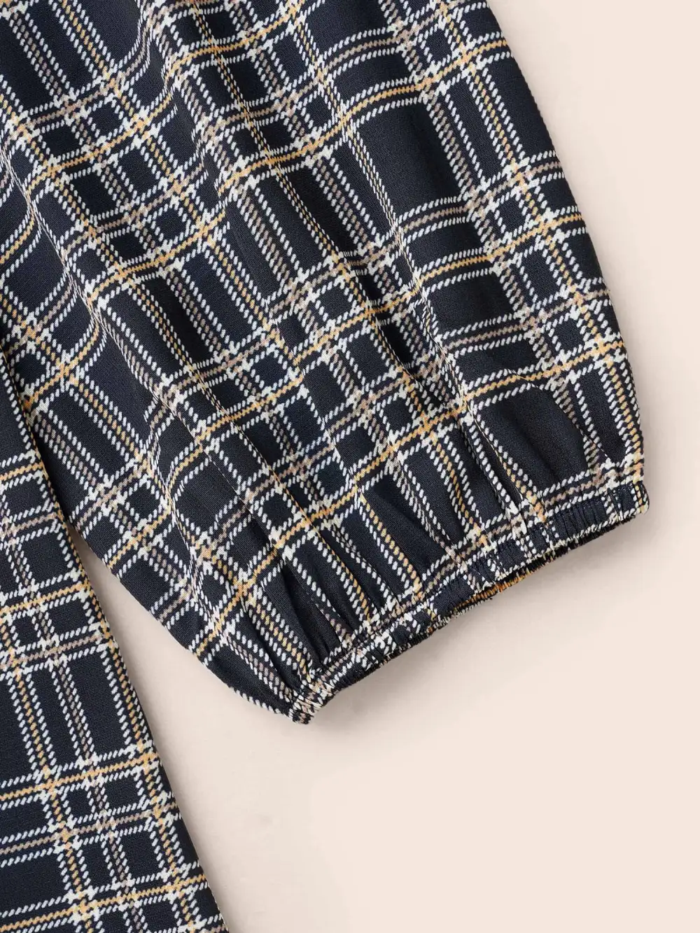 Colorblock Contrast Gathered Lantern Sleeve Dress