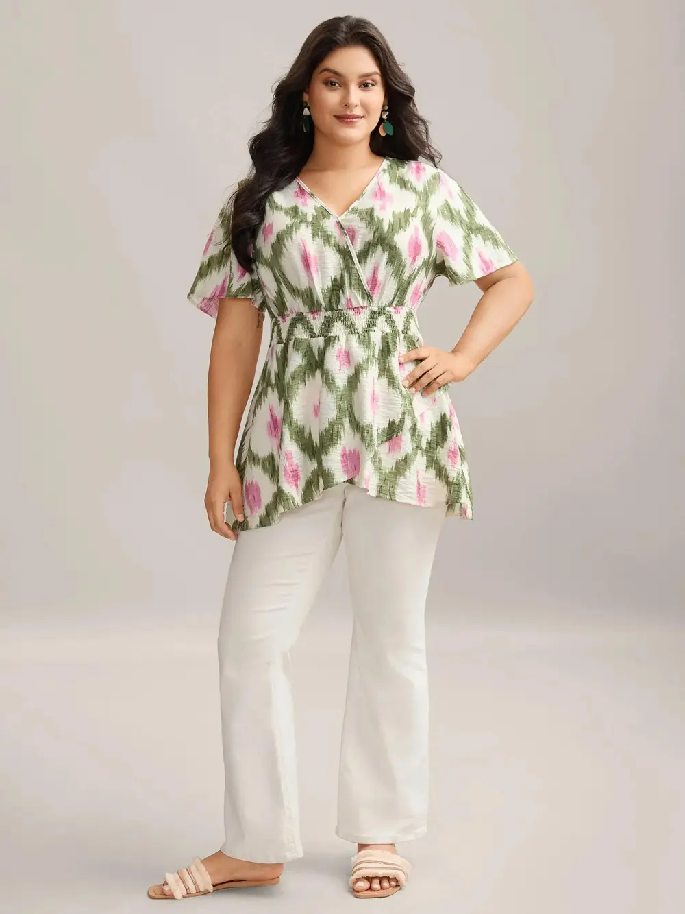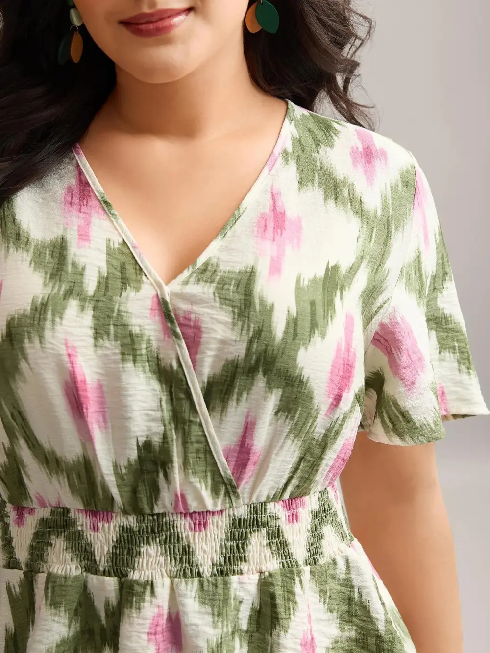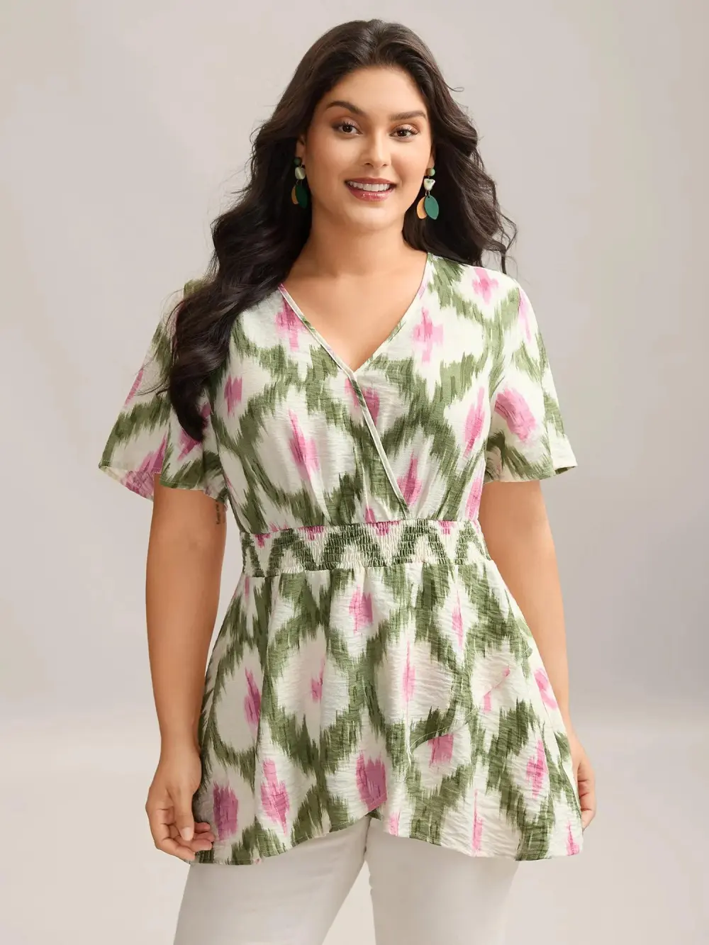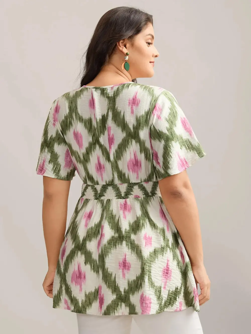 Tie-Dye Shirred Waist Pockets Blouse