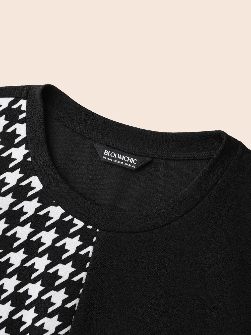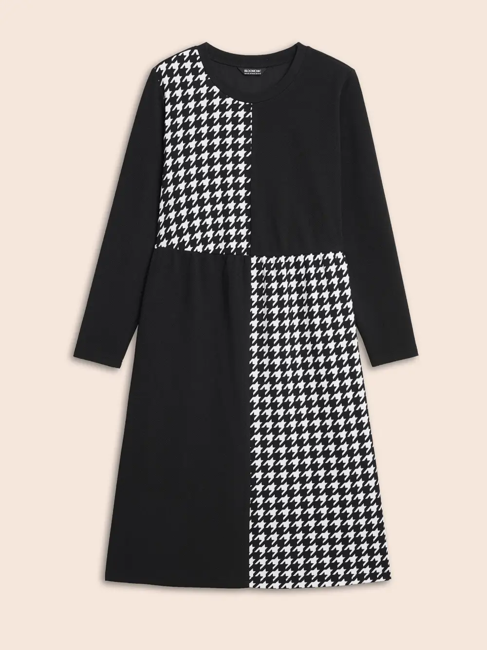 Houndstooth Patchwork Elastic Waist Dress