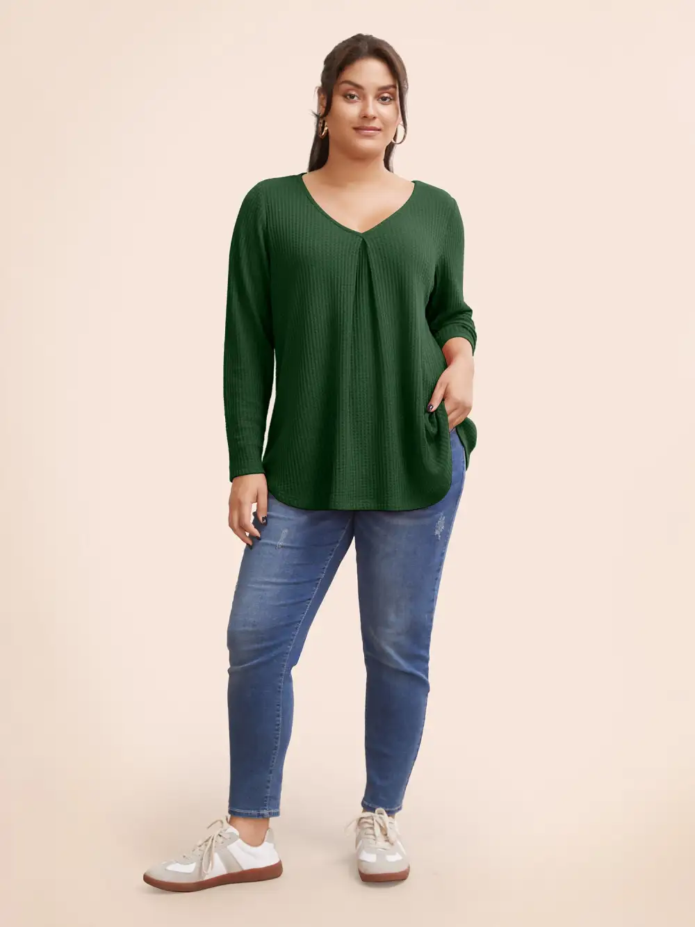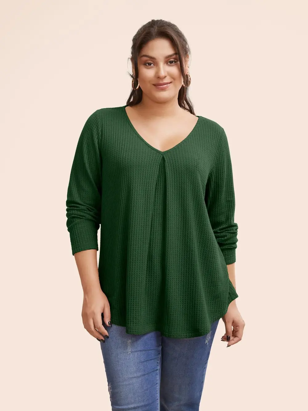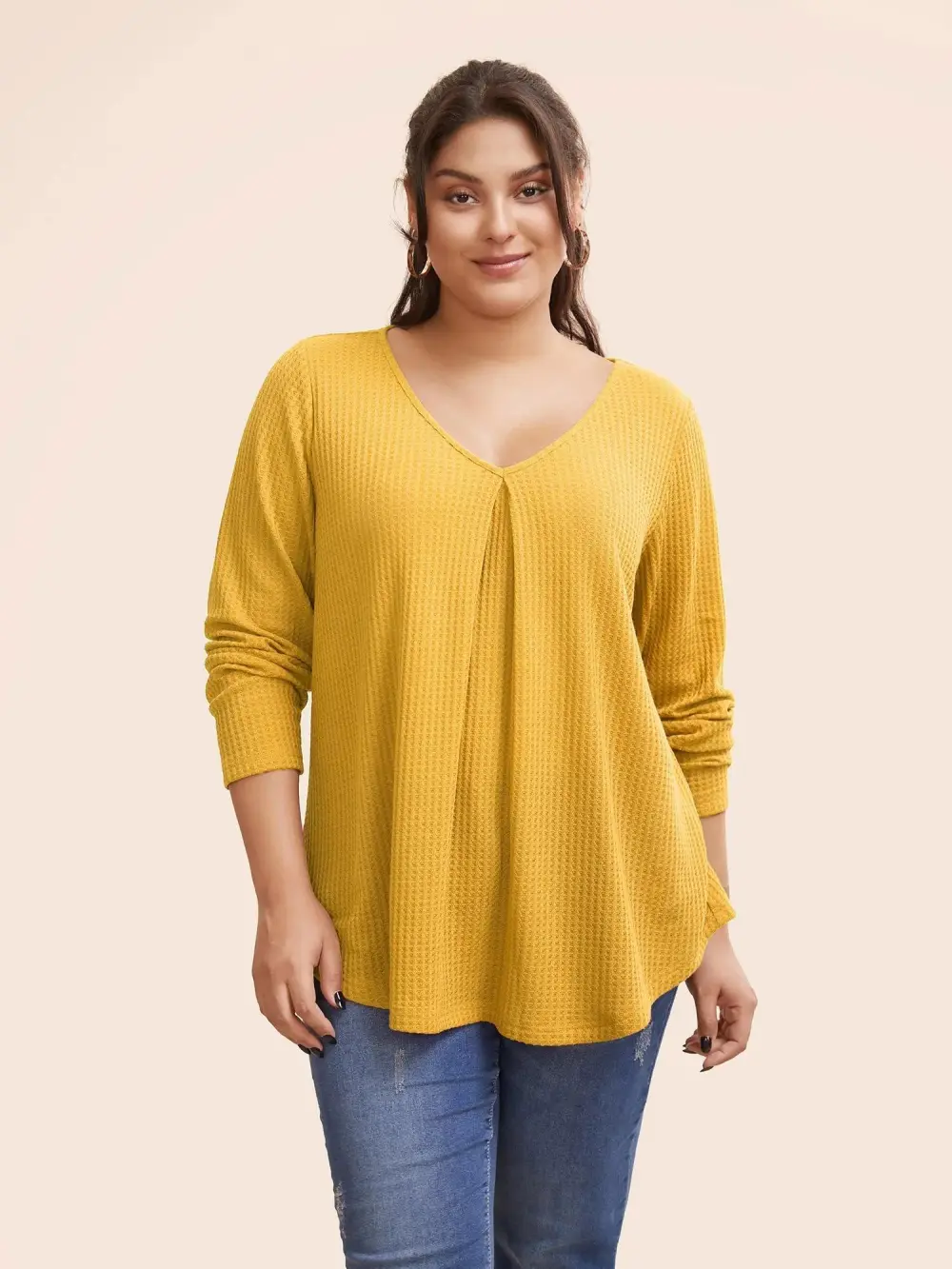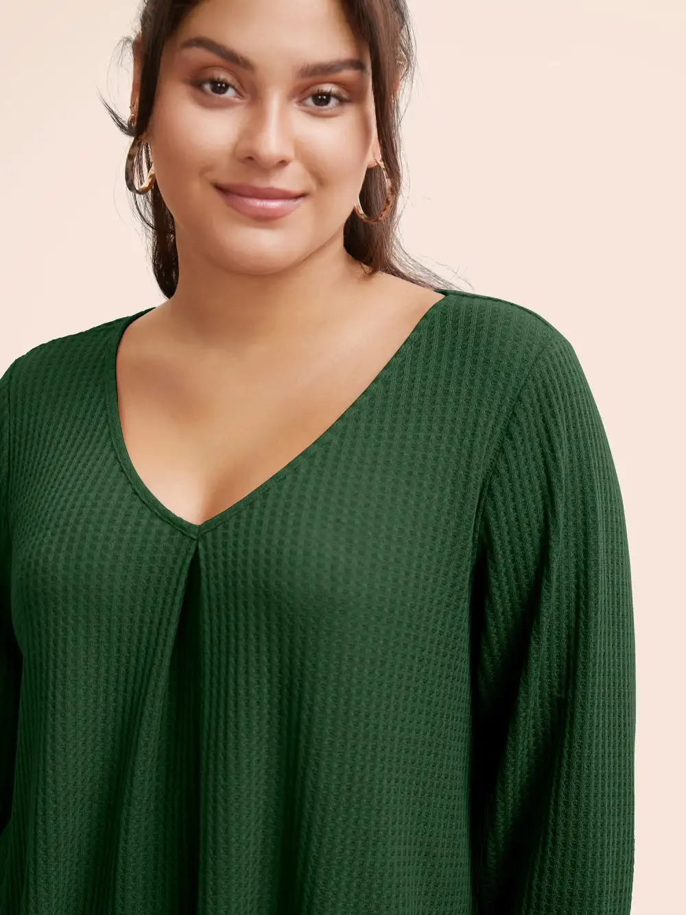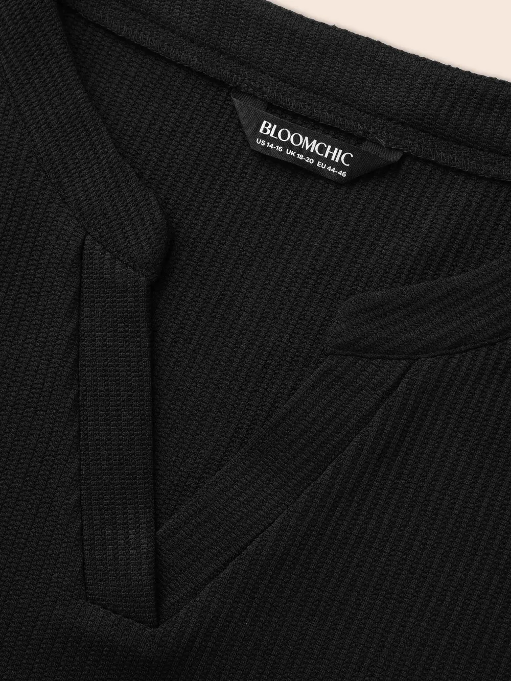 Plain Waffle Knit Scoop Neck Plicated Detail T-shirt