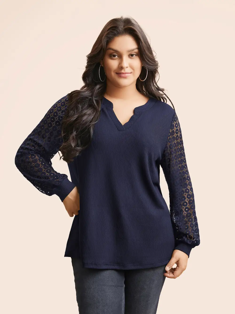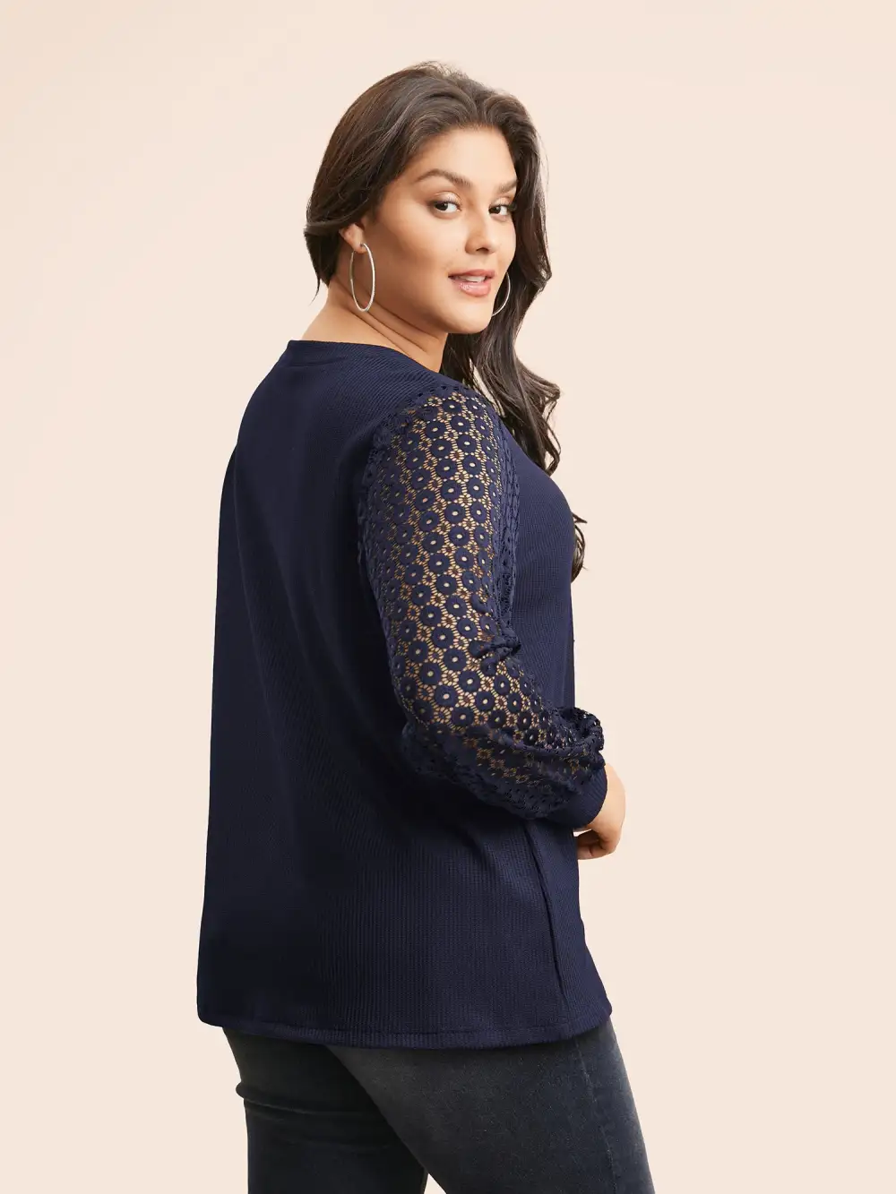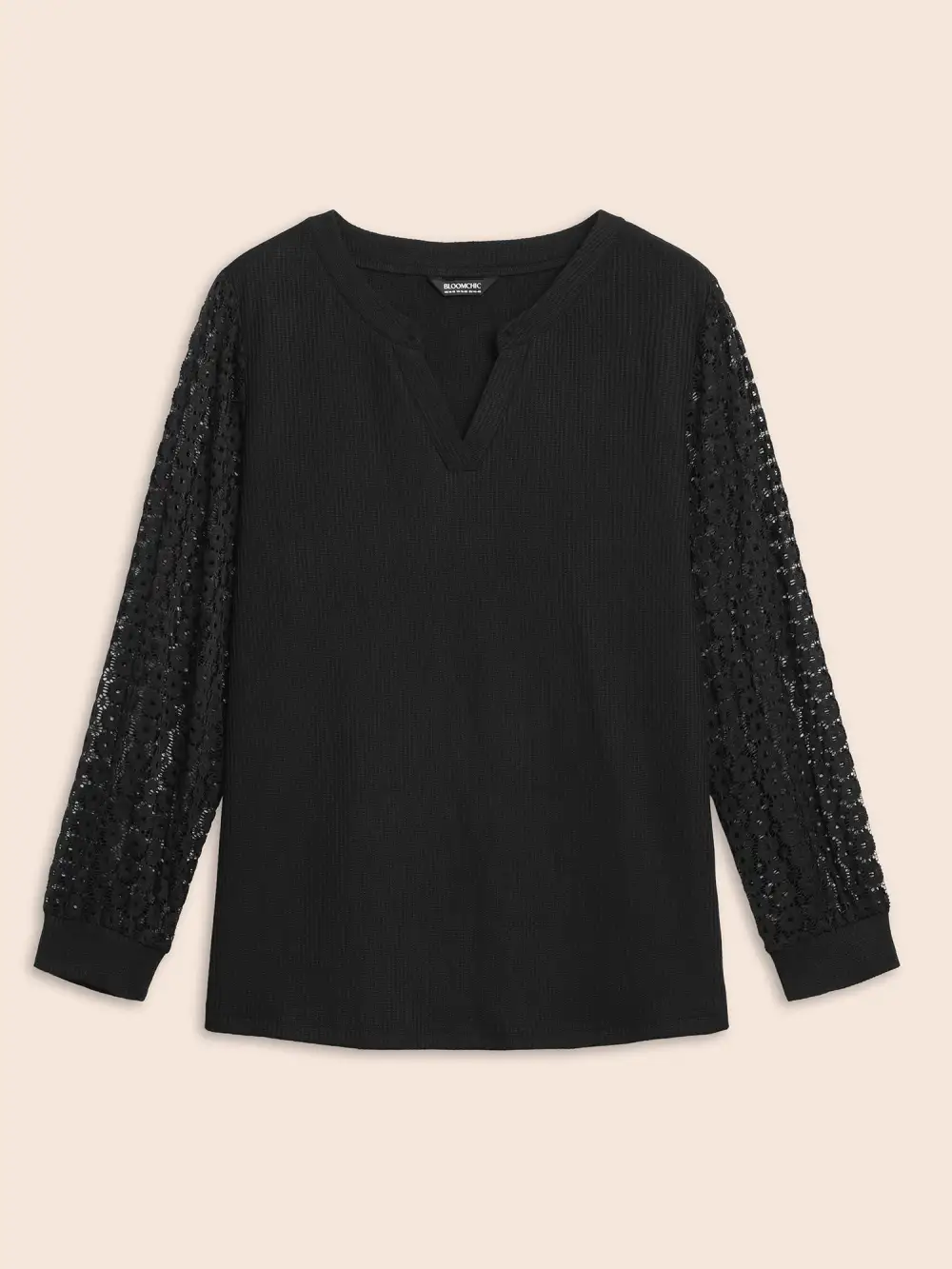 Notched Crochet Lace Mesh T-Shirt