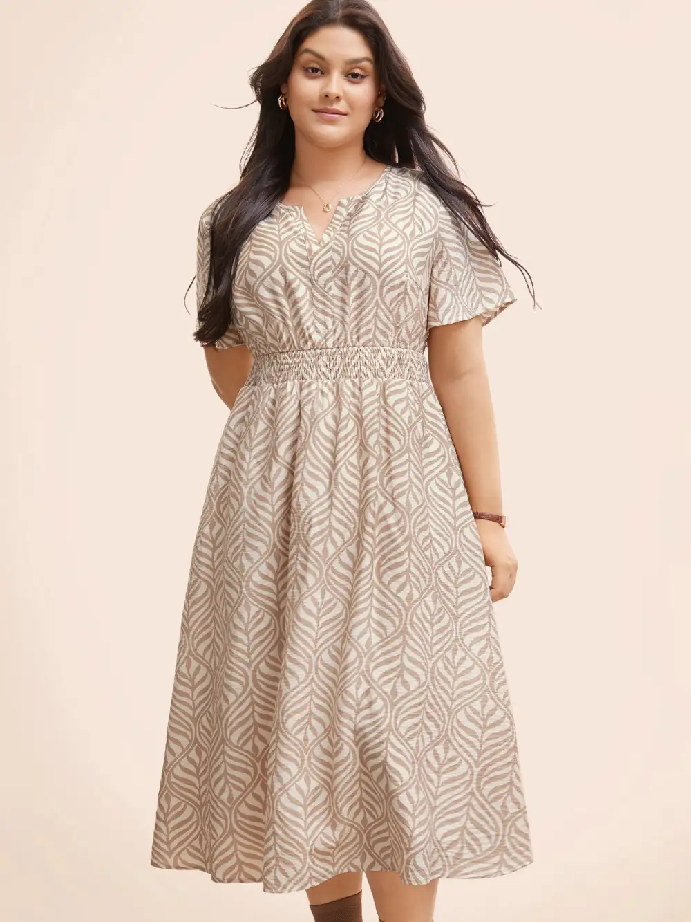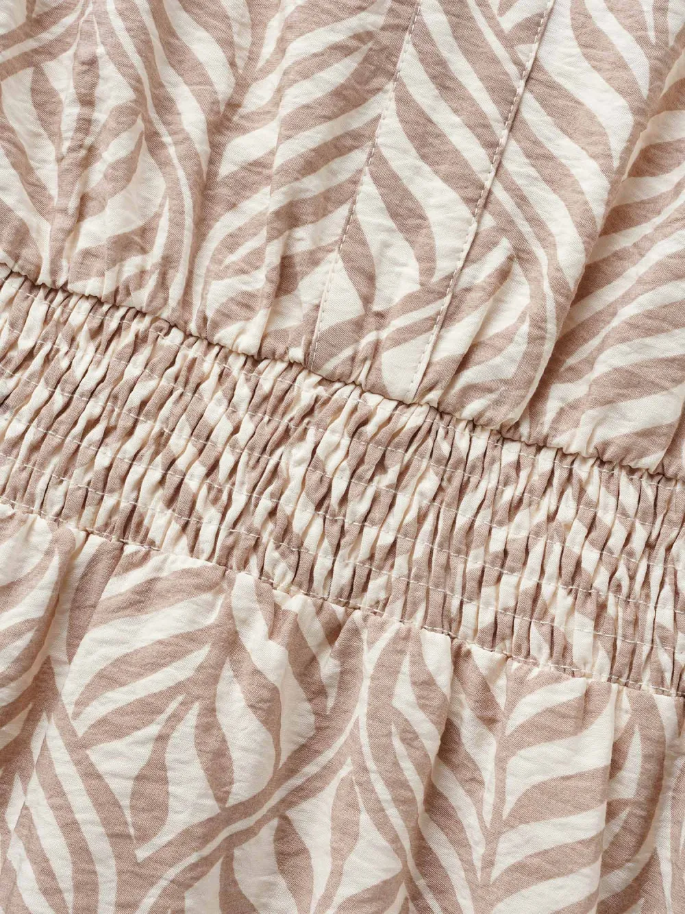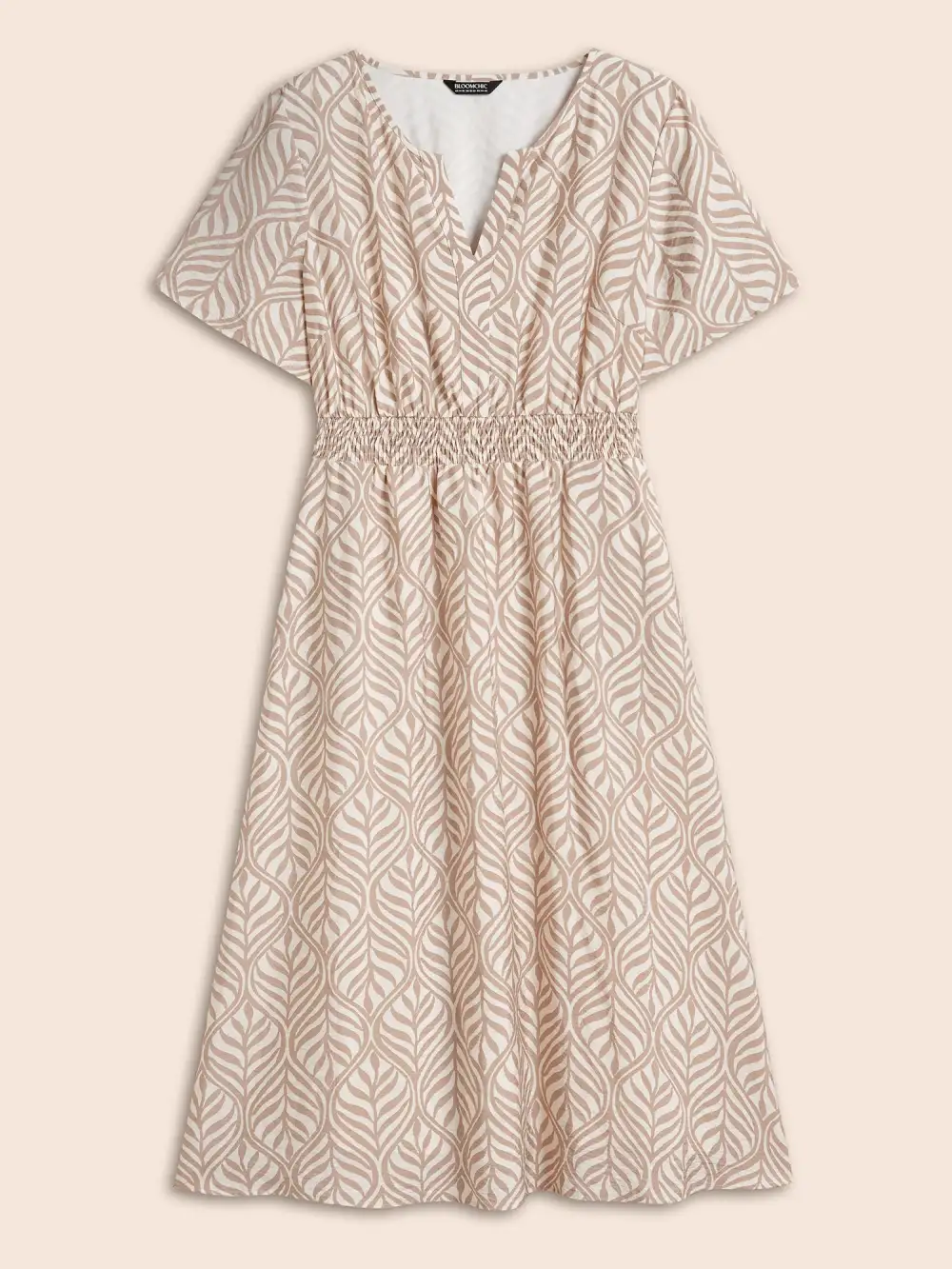 Boho Print Notched Collar Shirred Dress