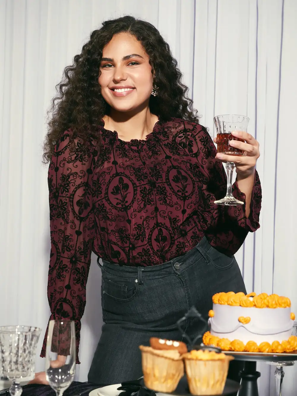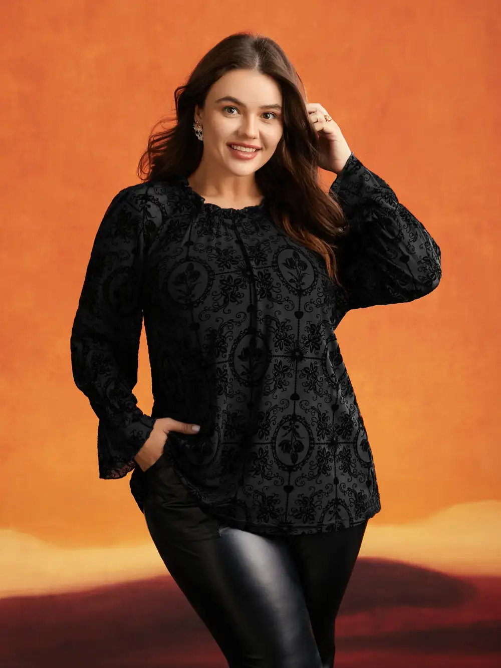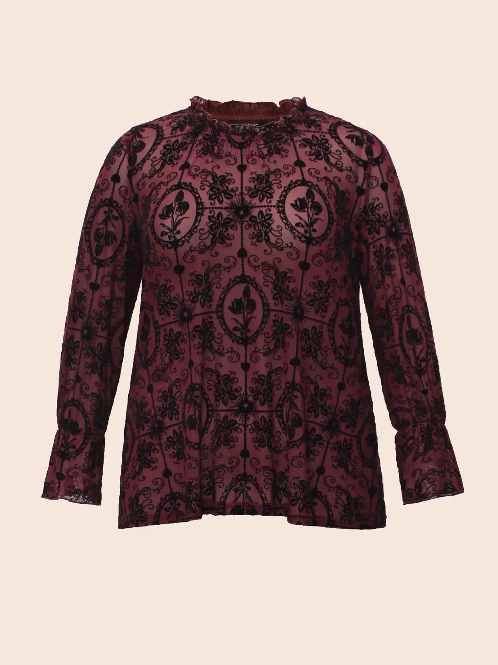 Elastic Flocked Mesh Blouse
