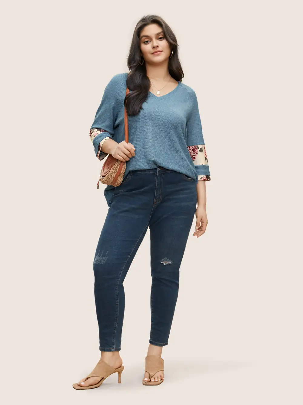 Textured Patchwork Floral Raglan Sleeve T-Shirt