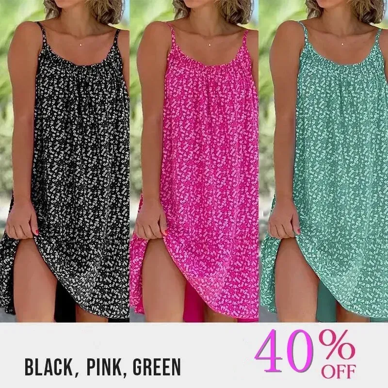 Summer Dresses for Women Casual Loose Bohemian Floral Dress with Pockets Spaghetti Strap Maxi Dress E75