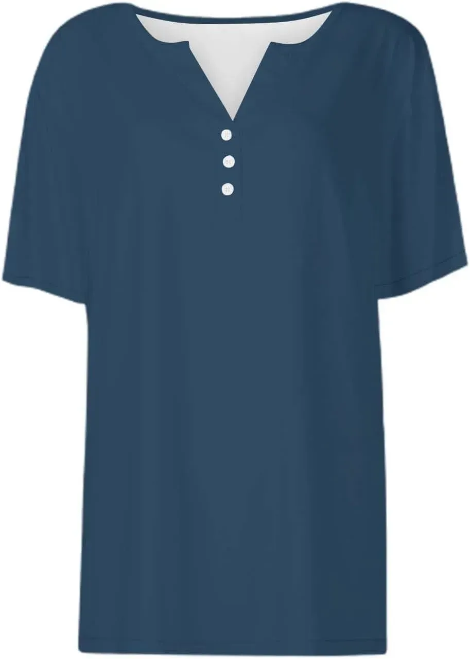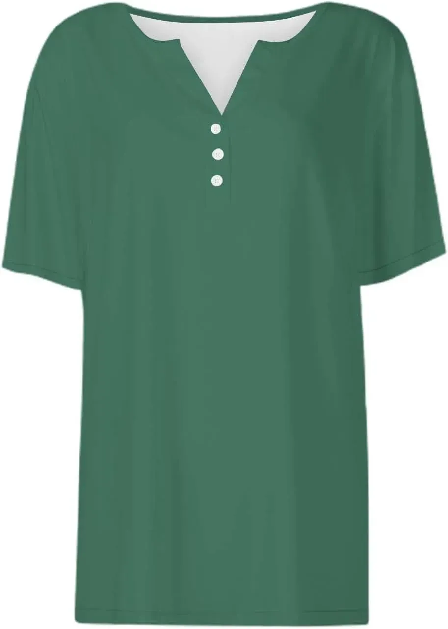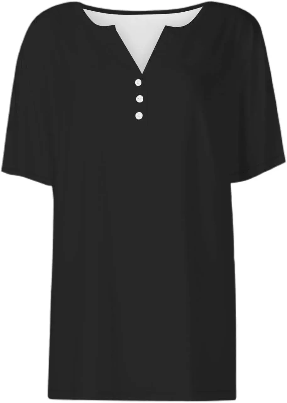 Women's Buttoned V Neck Hollow Short Sleeved T Shirt Summer Casual Fashion Solid Color Tees Tops