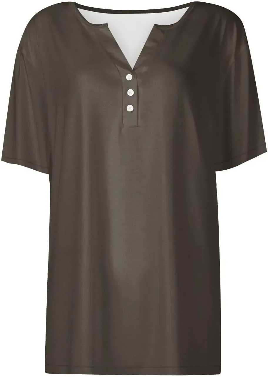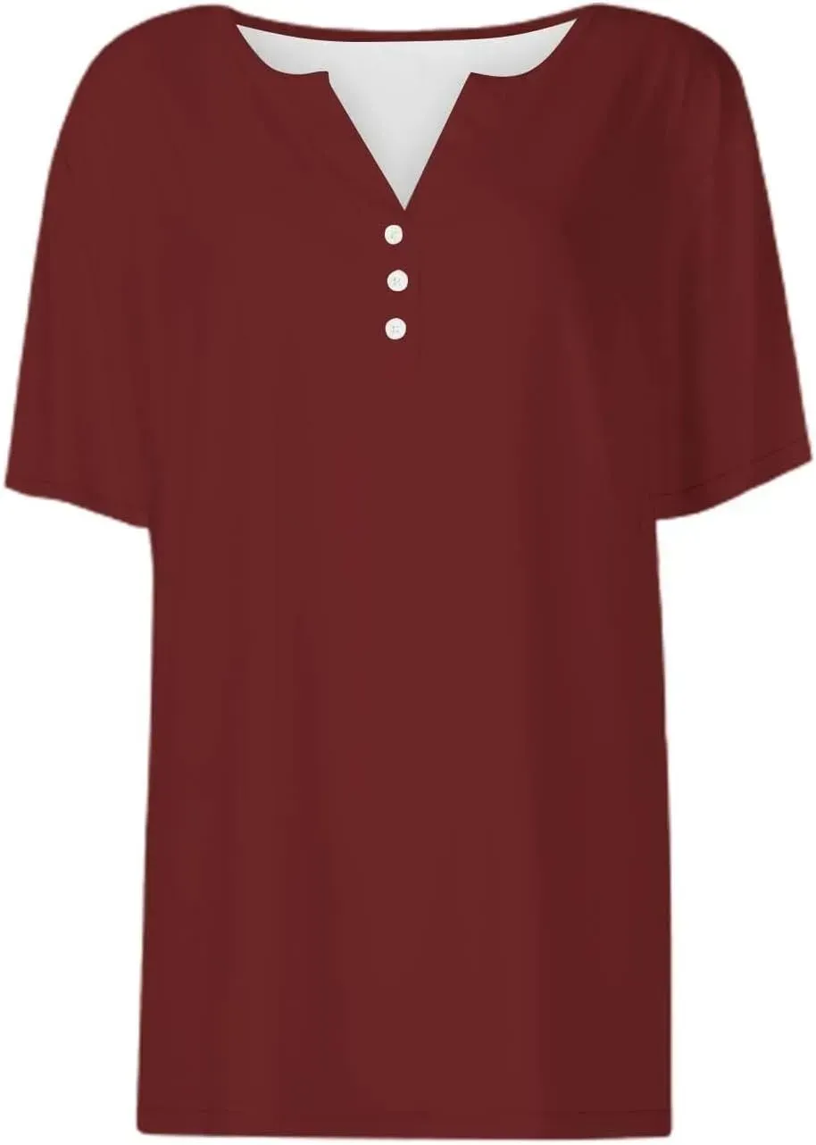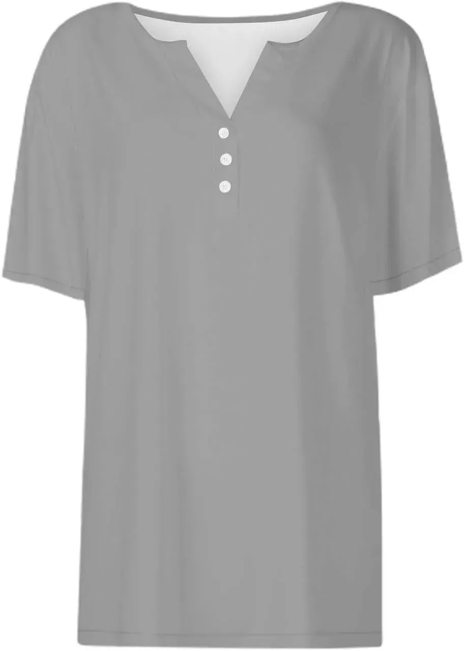 Women's Buttoned V Neck Hollow Short Sleeved T Shirt Summer Casual Fashion Solid Color Tees Tops
