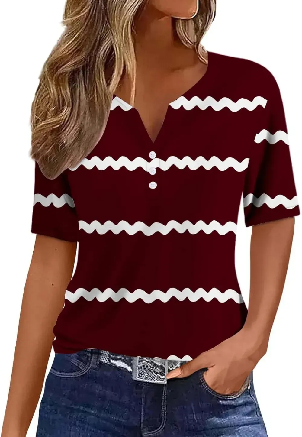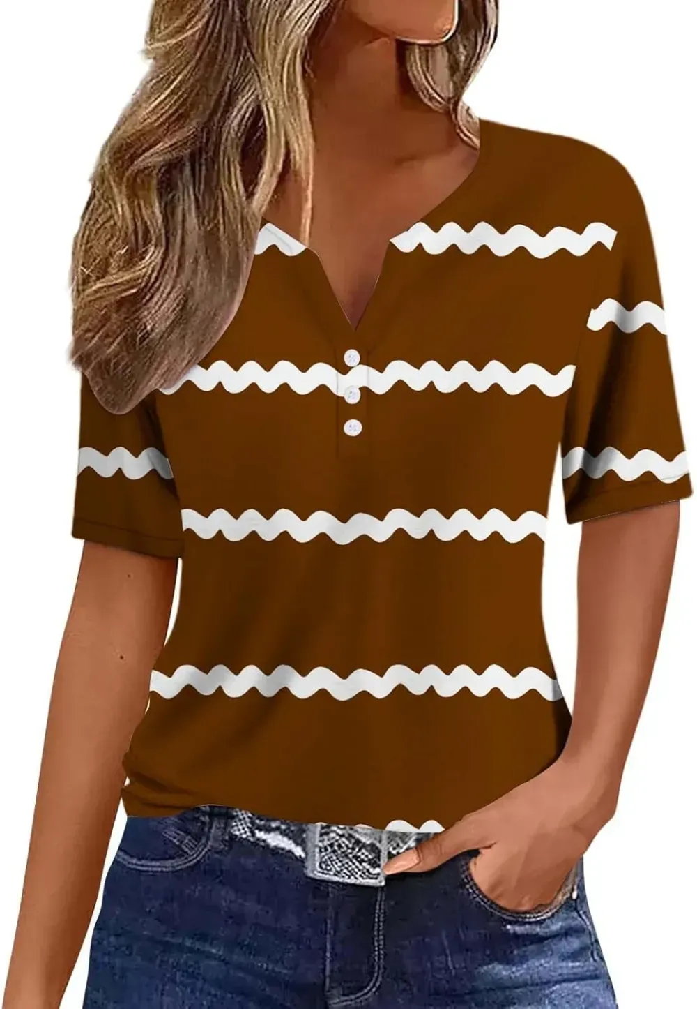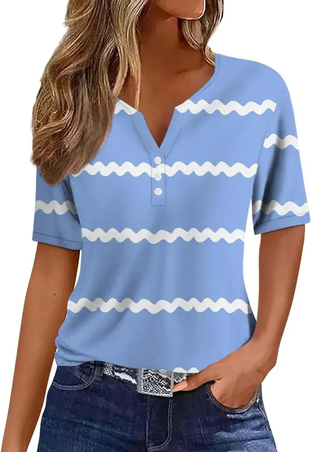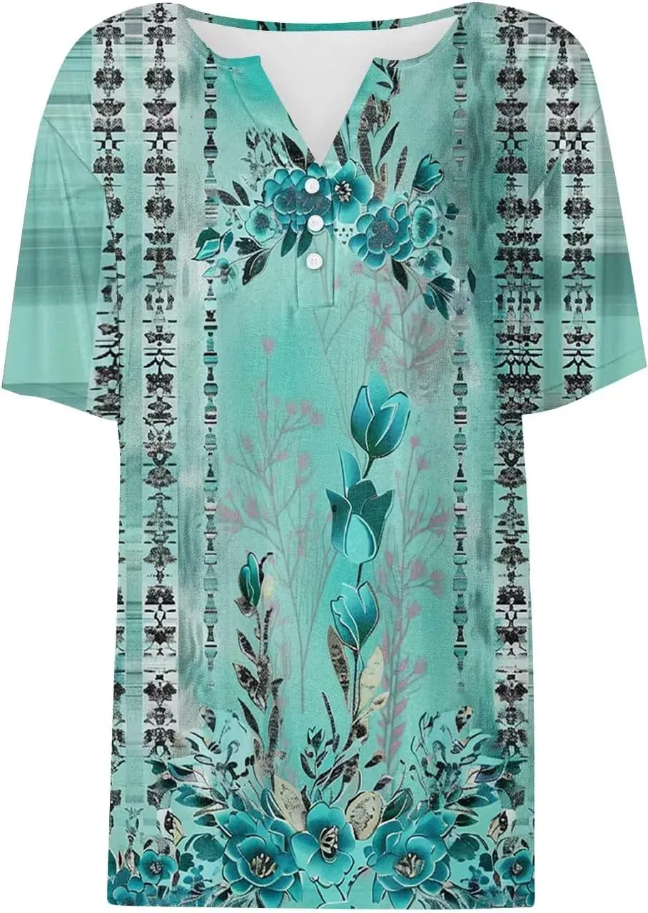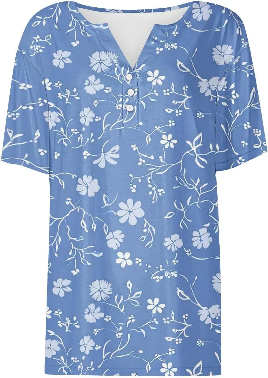 Shirts for Women Casual Printed Summer Tops Short-Sleeved Button V-Neck Tops Blouse Fashion Boho T-Shirts