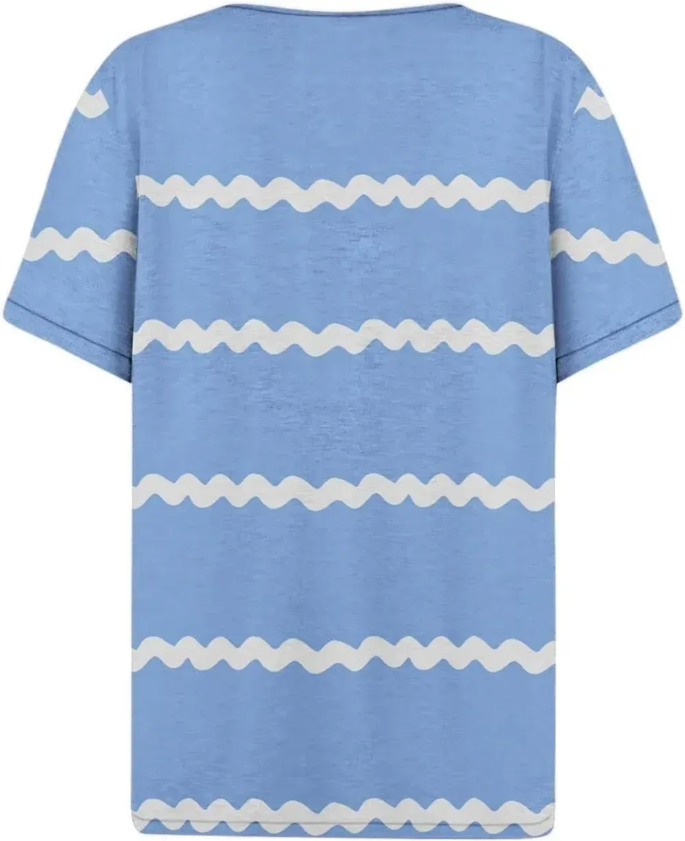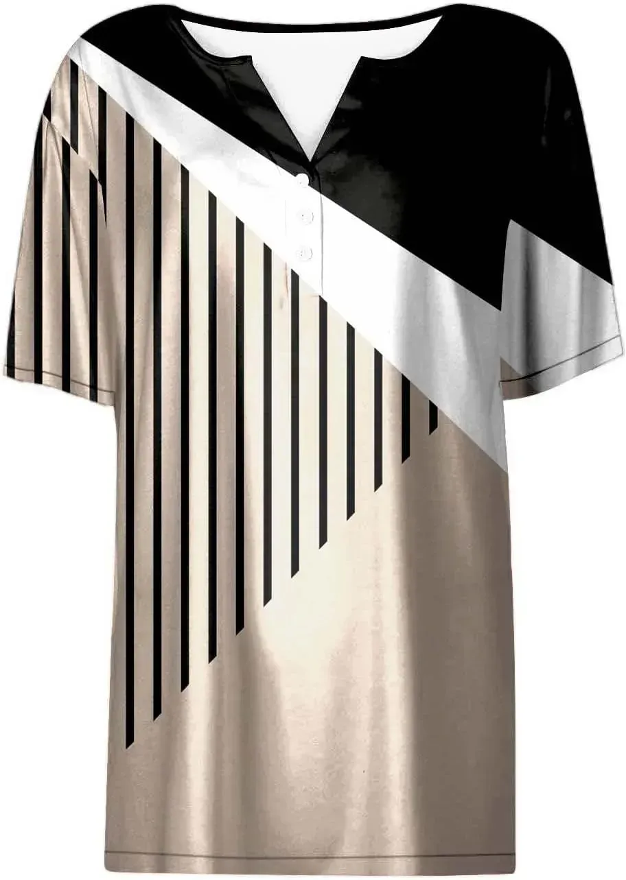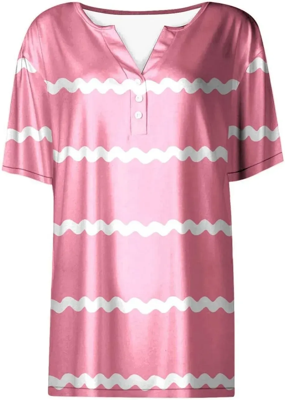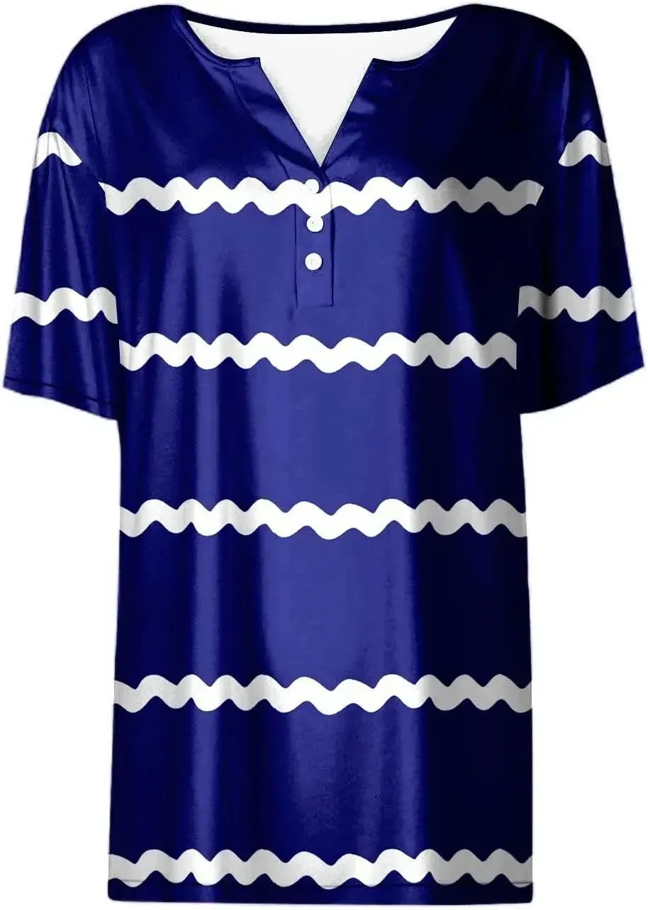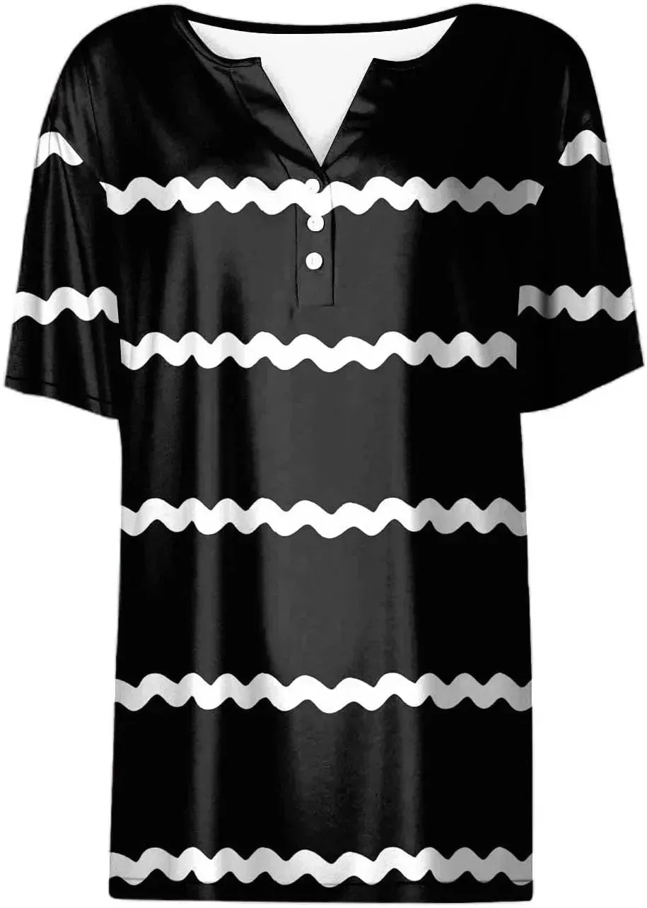 Shirts for Women Casual Printed Summer Tops Short-Sleeved Button V-Neck Tops Blouse Fashion Boho T-Shirts