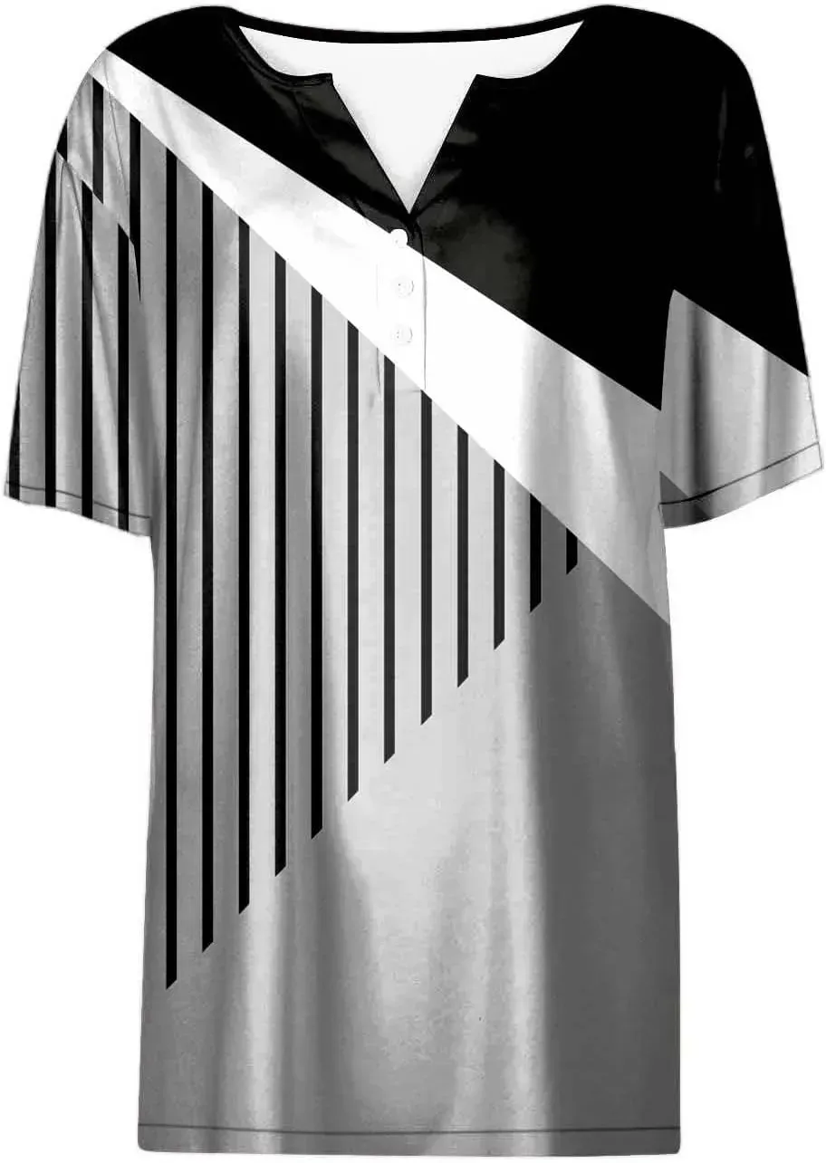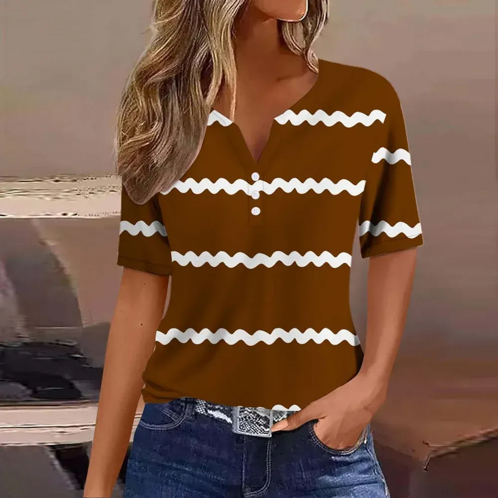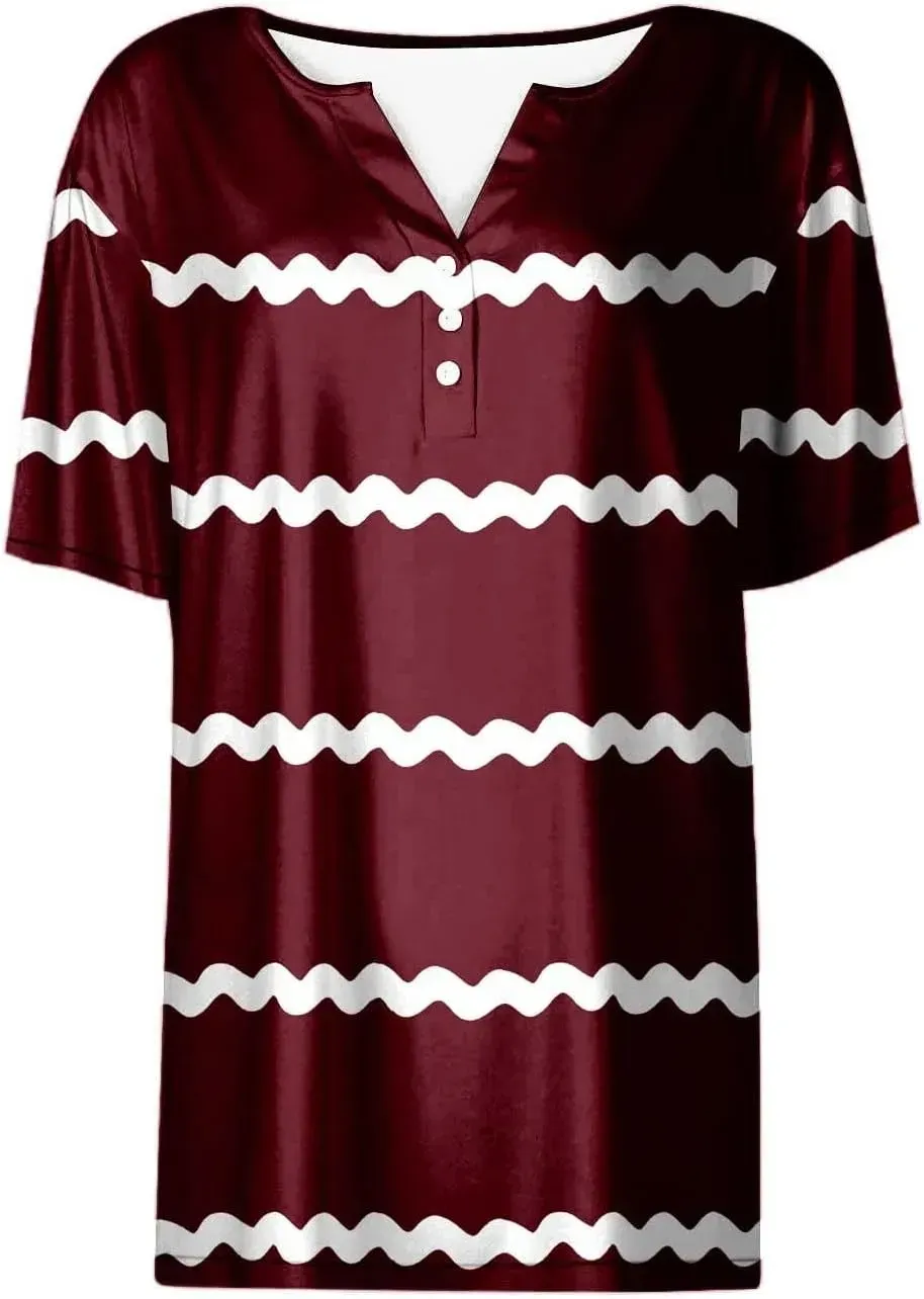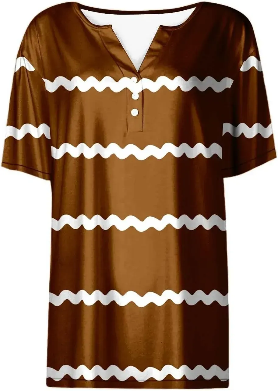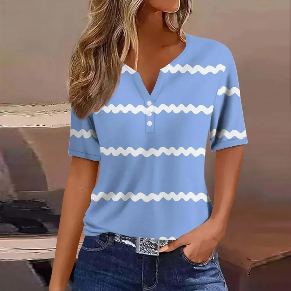 Shirts for Women Casual Printed Summer Tops Short-Sleeved Button V-Neck Tops Blouse Fashion Boho T-Shirts