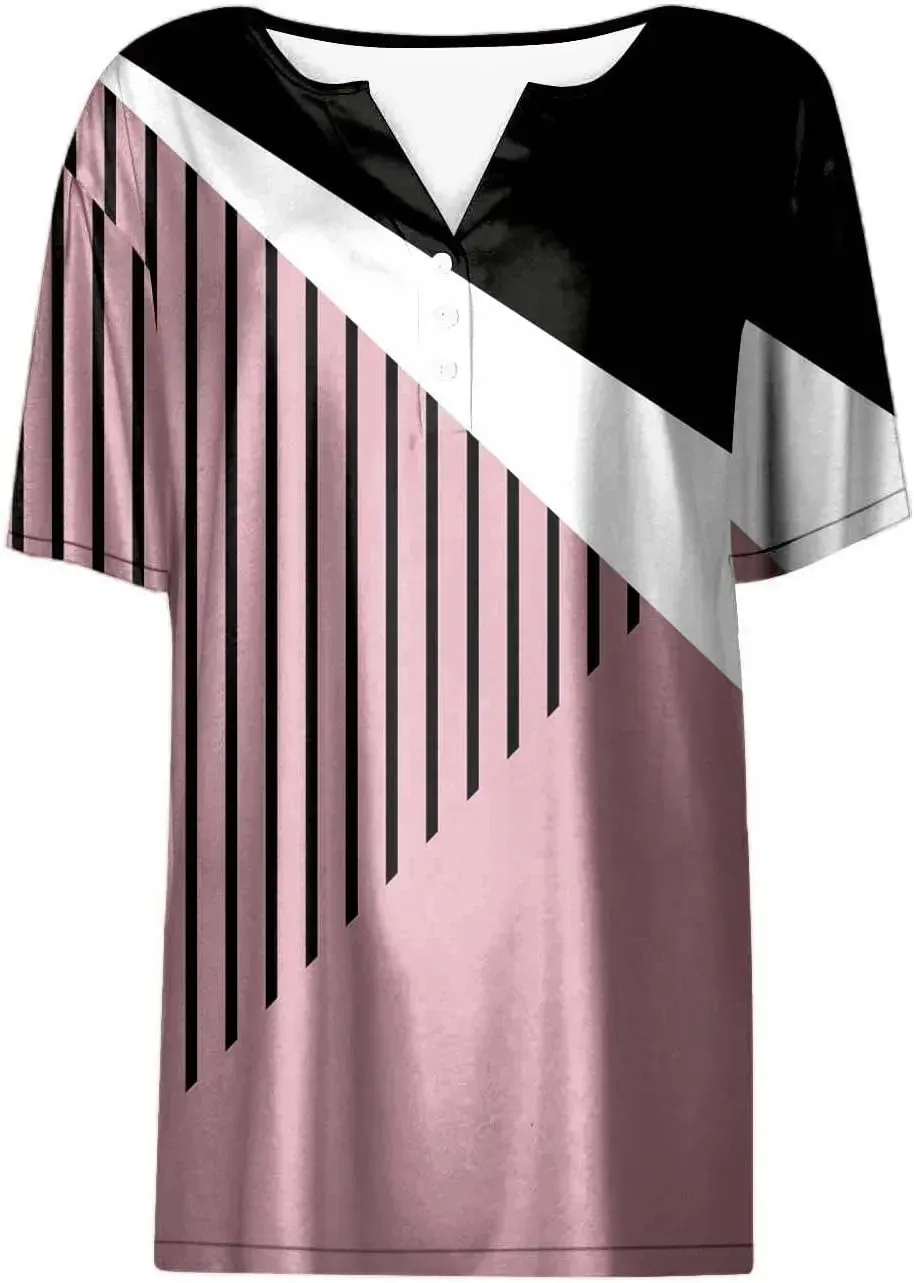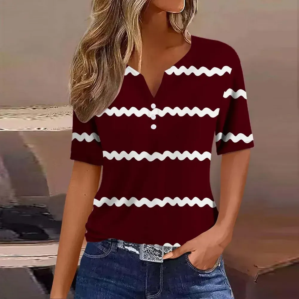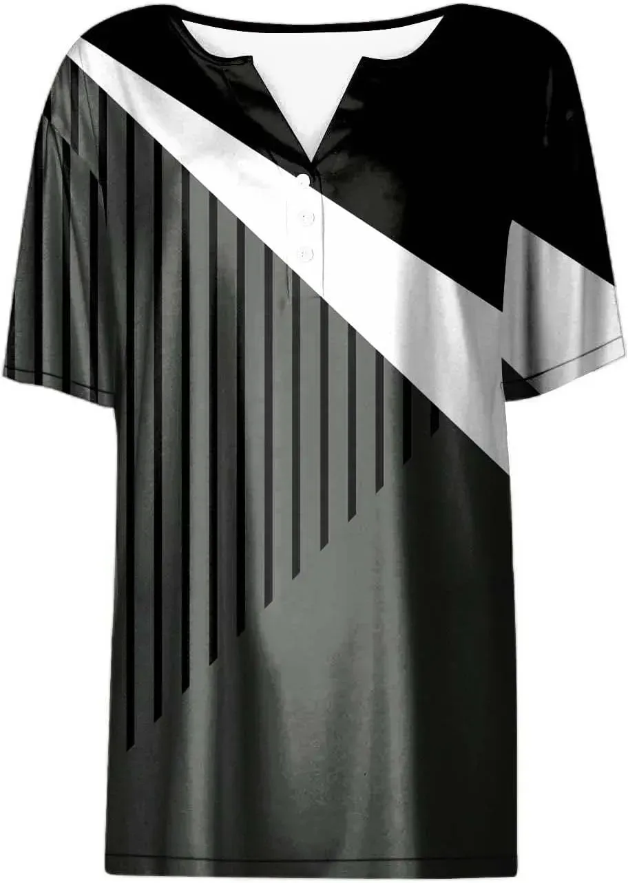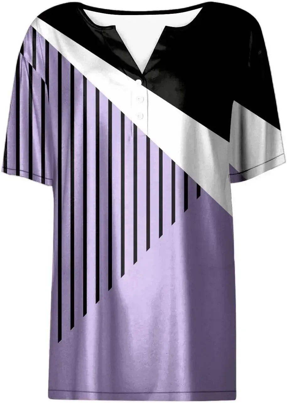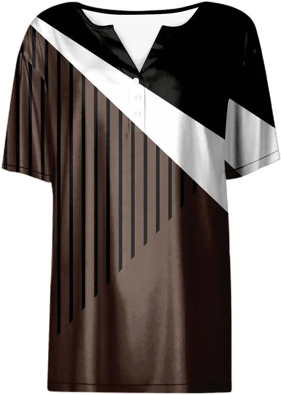 Shirts for Women Casual Printed Summer Tops Short-Sleeved Button V-Neck Tops Blouse Fashion Boho T-Shirts
