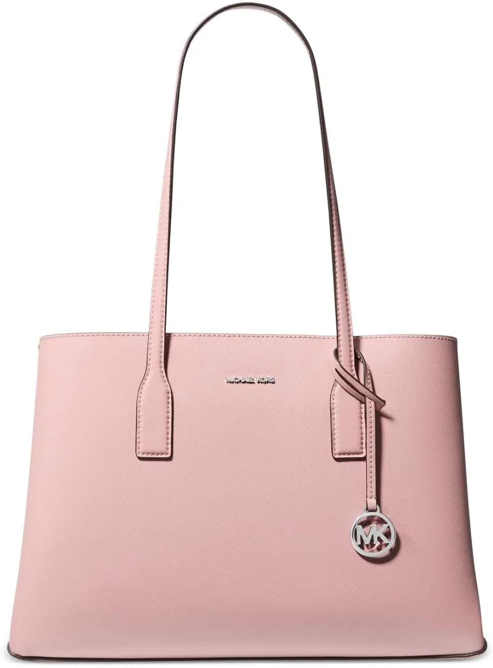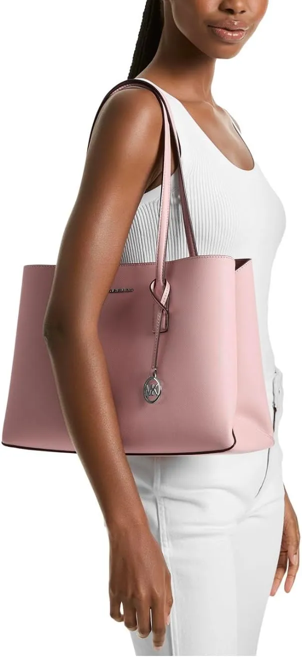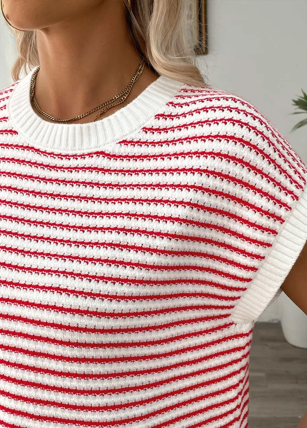 Light Pink Striped Short Sleeve Split Neck Blouse