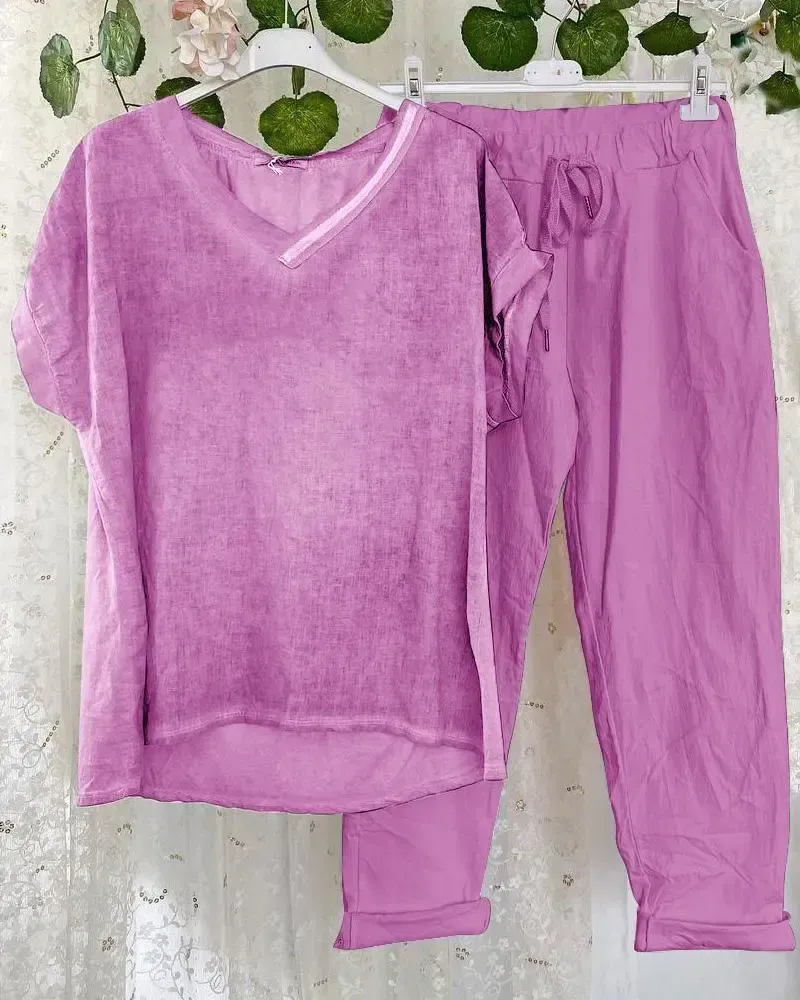 Light Pink Patchwork Short Sleeve V Neck T Shirt