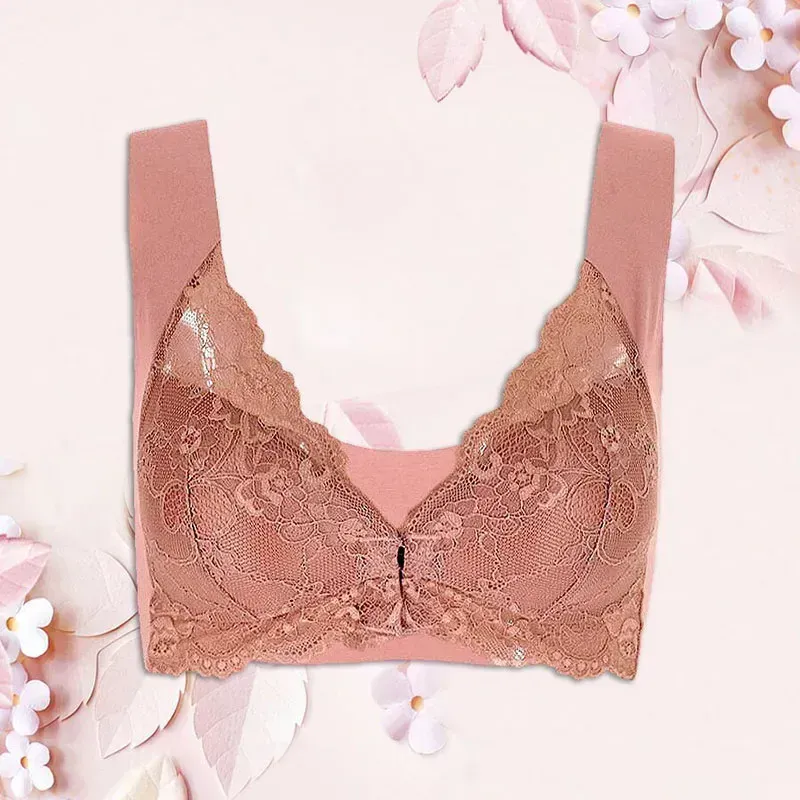 Light Pink Lace Long Sleeve Asymmetrical Neck Blouse